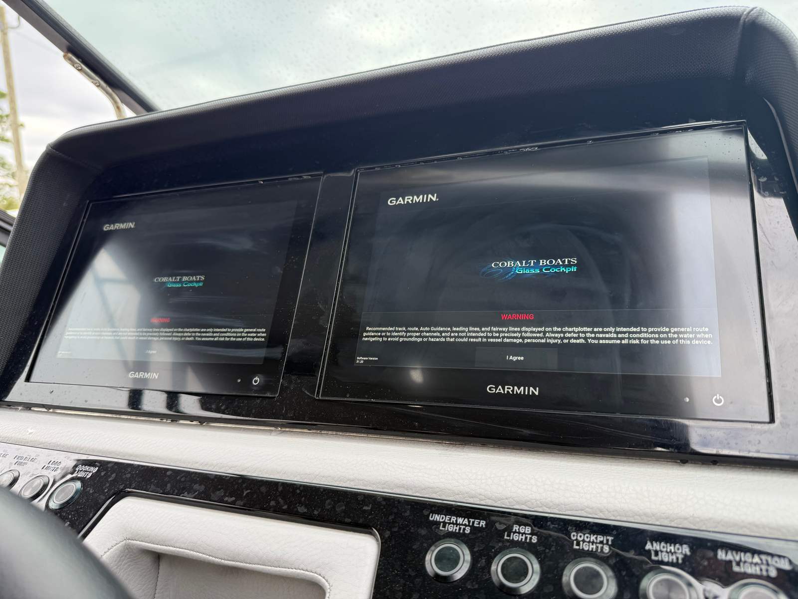 Under the hood, the Cobalt R8 is powered by twin engines, delivering a combined 600 horsepower. This robust setup ensures exhilarating acceleration, smooth cruising, and the power needed for a variety of water sports. Whether you are towing skiers, racing across the lake, or enjoying a leisurely cruise, the R8’s performance capabilities make every outing memorable. The dual-engine configuration also enhances maneuverability and control, providing confidence whether you are docking in tight spaces or navigating open waters.