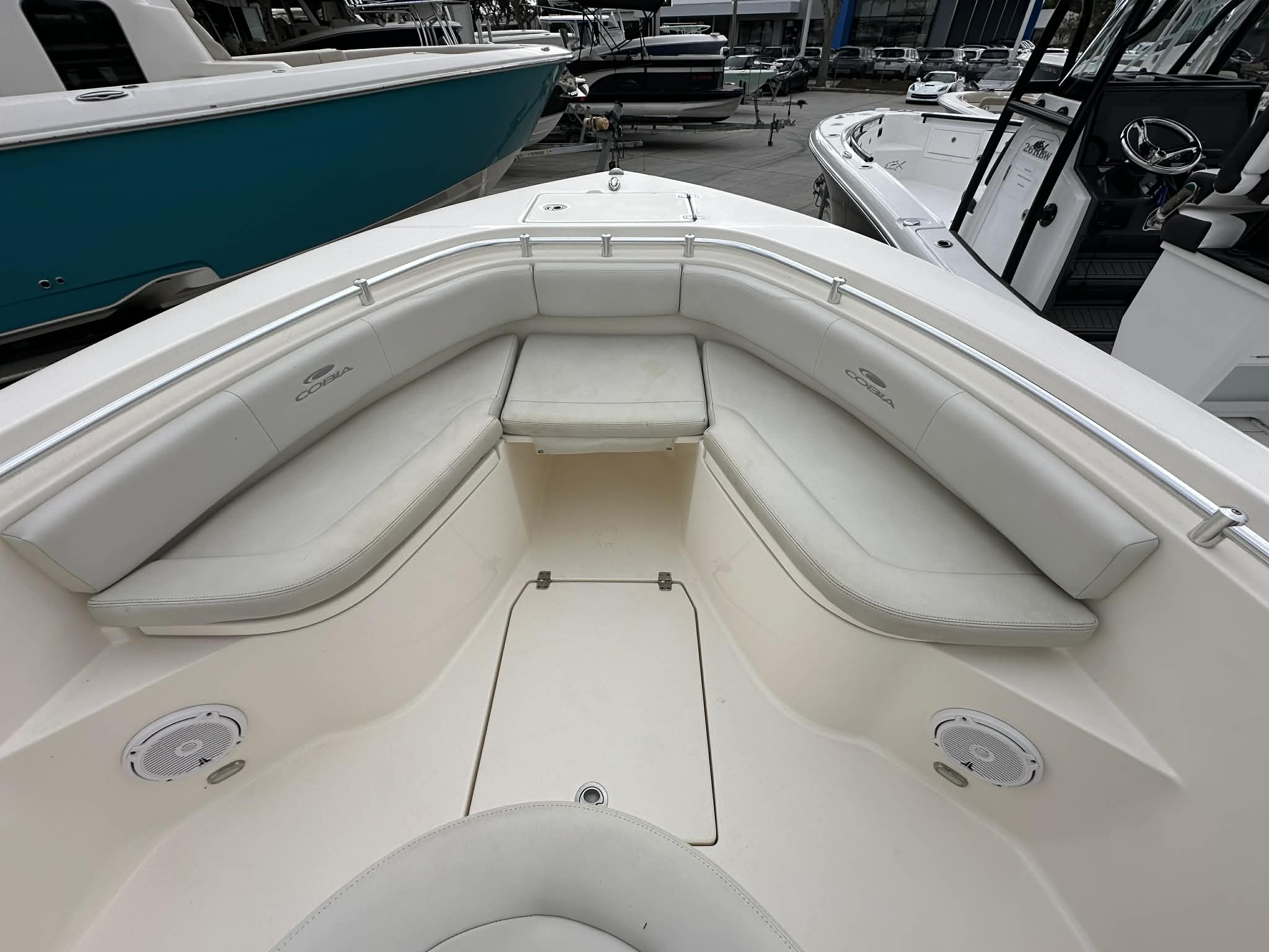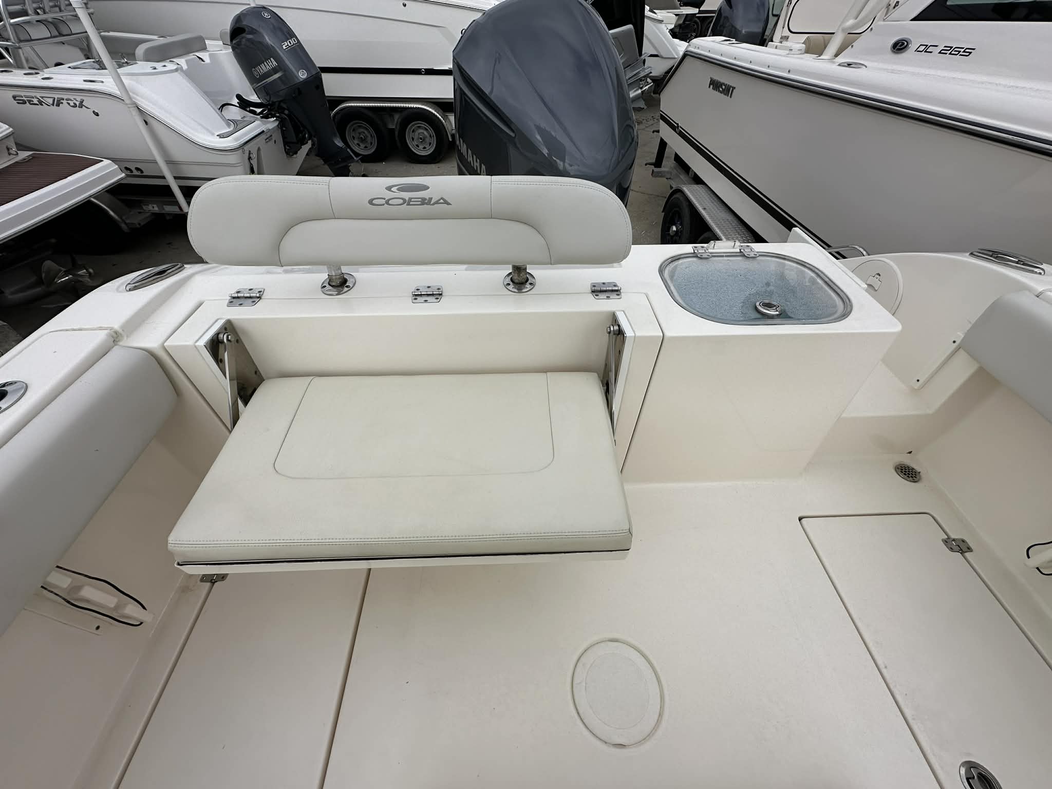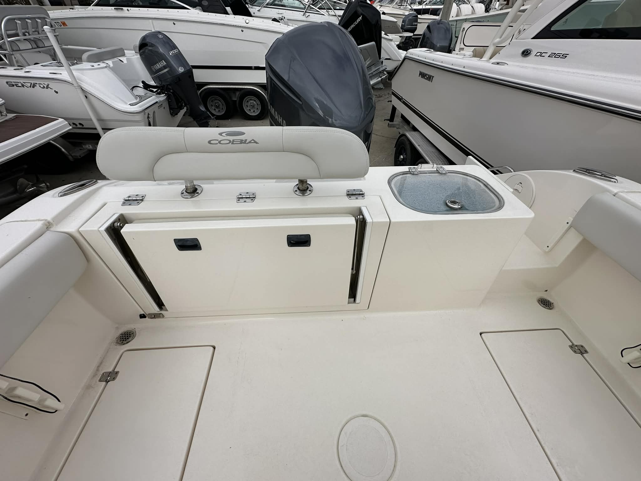Practicality is at the core of the Cobia 237 CC’s appeal. The center console design not only maximizes usable space but also simplifies docking and maneuvering, making it accessible for boaters of all experience levels. Generous storage solutions allow you to stow fishing gear, safety equipment, and personal items securely, keeping the deck tidy and safe.The efficient 250-horsepower engine ensures you can cover more water without frequent fuel stops, making it ideal for day trips or extended outings. Whether you’re exploring hidden coves, heading offshore for a fishing expedition, or enjoying a sunset cruise, this Cobia boat for sale is equipped to handle it all with ease.