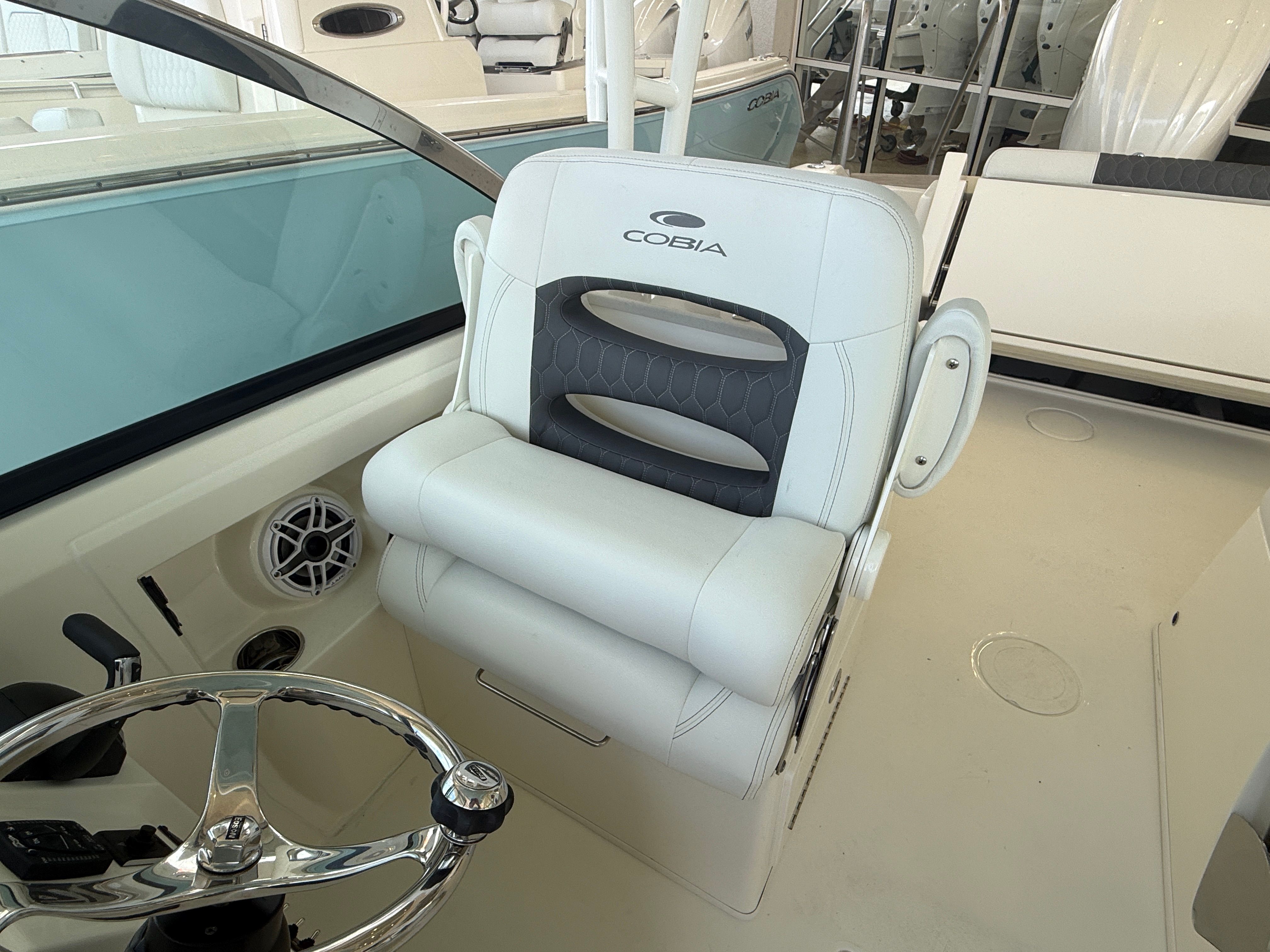 In summary, the 2026 Cobia 240 DC is a standout Dual Console boat for sale that combines cutting-edge performance, luxurious features, and practical design. With its powerful Yamaha F300NSB2 engine, advanced Helm Master controls, upgraded Edson steering wheel, and premium JL Audio stereo system, this boat is built for both excitement and comfort. The Atlantic Blue hull, two-tone Platinum & White cushions, and faux teak decking create a stunning visual impression, while the hardtop and thoughtful storage solutions enhance usability and enjoyment. If you are searching for a Cobia boat for sale that offers the perfect blend of style, performance, and versatility, the 2026 Cobia 240 DC is ready to exceed your expectations. Contact your local dealer today to learn more and start your next adventure on the water.