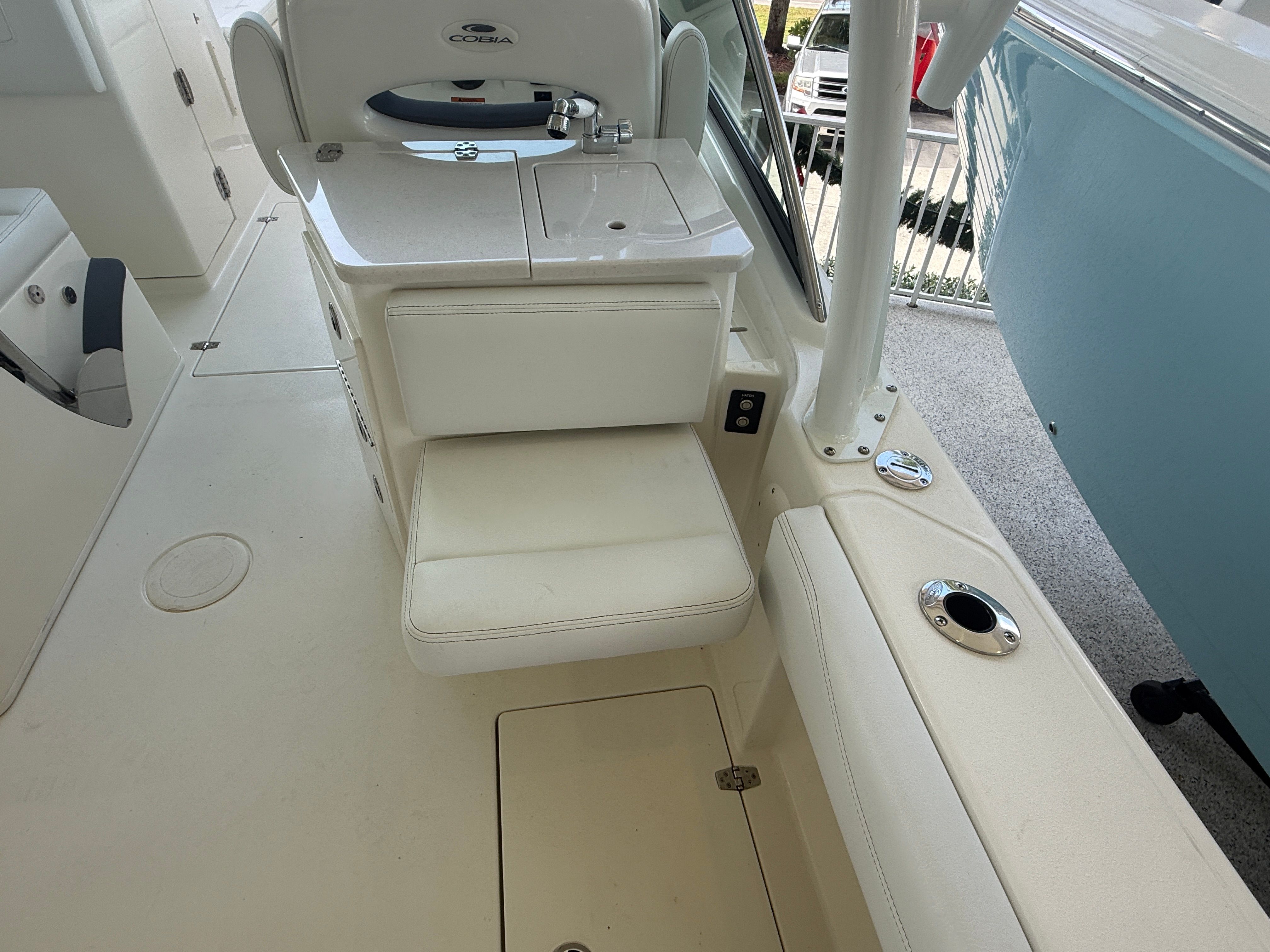 The Cobia 240 DC is designed with practicality in mind, making ownership as enjoyable as it is rewarding. The dual console configuration provides versatile storage options for gear, water toys, and personal items, keeping the deck clutter-free and organized. The hardtop offers protection from sun and rain, extending your boating season and enhancing comfort. The faux teak decking is not only stylish but also easy to clean and maintain, ensuring your boat looks great with minimal effort. The advanced steering and trim tab systems make docking and maneuvering a breeze, even in tight spaces or challenging conditions. Fuel efficiency is optimized through smart design and engine technology, helping you spend more time on the water and less at the pump.