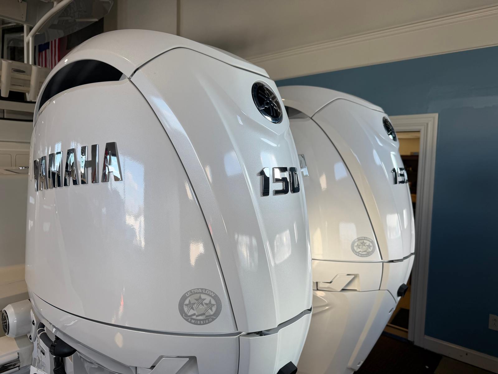 Powering the Cobia 245 CC are twin Yamaha 150XSA2 engines in a striking white finish, delivering a combined 300 horsepower. This robust setup ensures smooth acceleration, impressive top speeds, and reliable performance in a variety of conditions. The advanced Helm Master EX DES twin engine system with ISO charger provides precise control and effortless maneuverability, whether you are cruising open waters or docking in tight spaces. Digital electric steering enhances responsiveness, while the GEM stainless steel steering wheel offers both durability and a premium feel. With this level of power and control, the Cobia 245 CC is engineered for both thrilling rides and confident handling.
