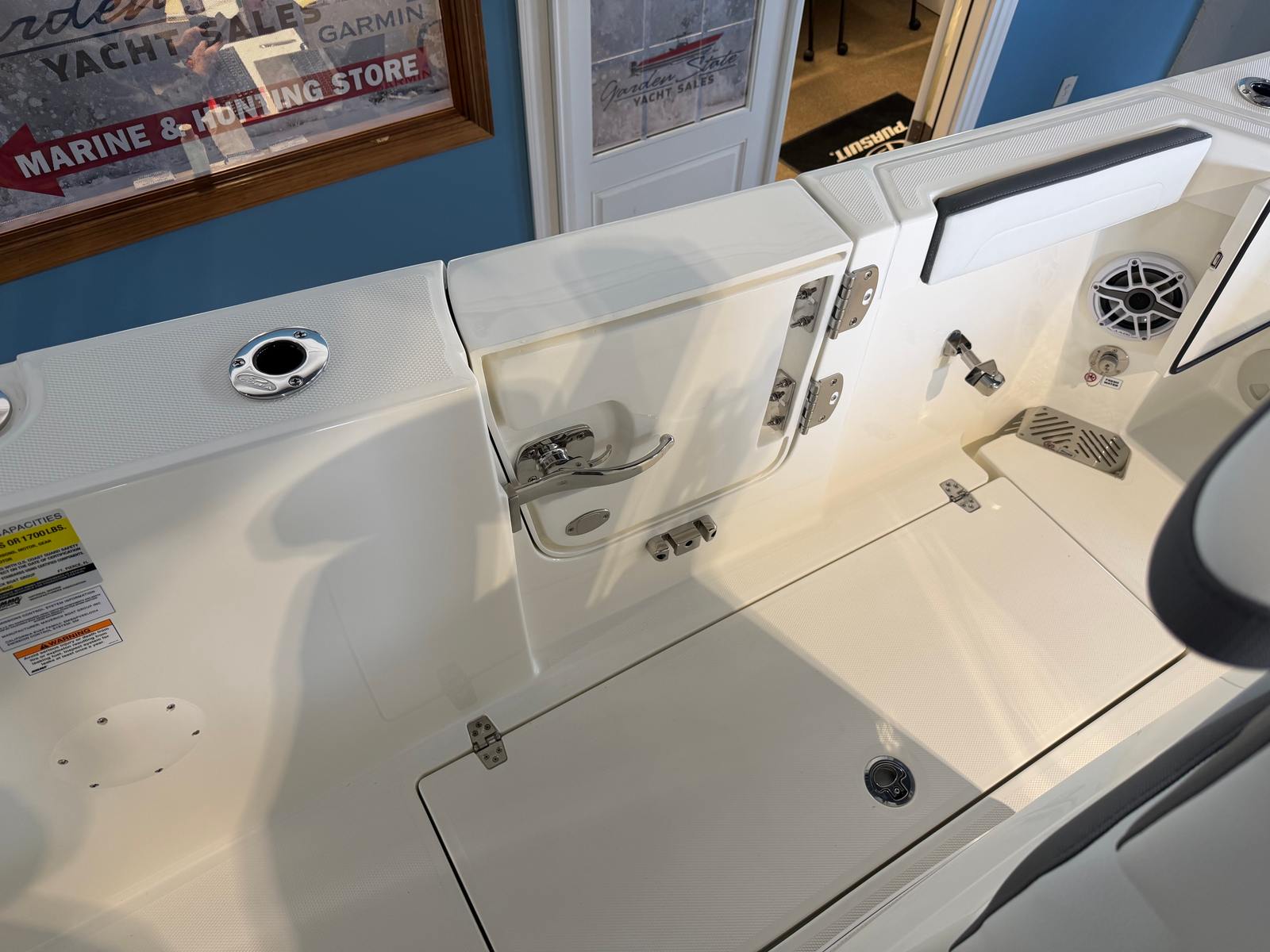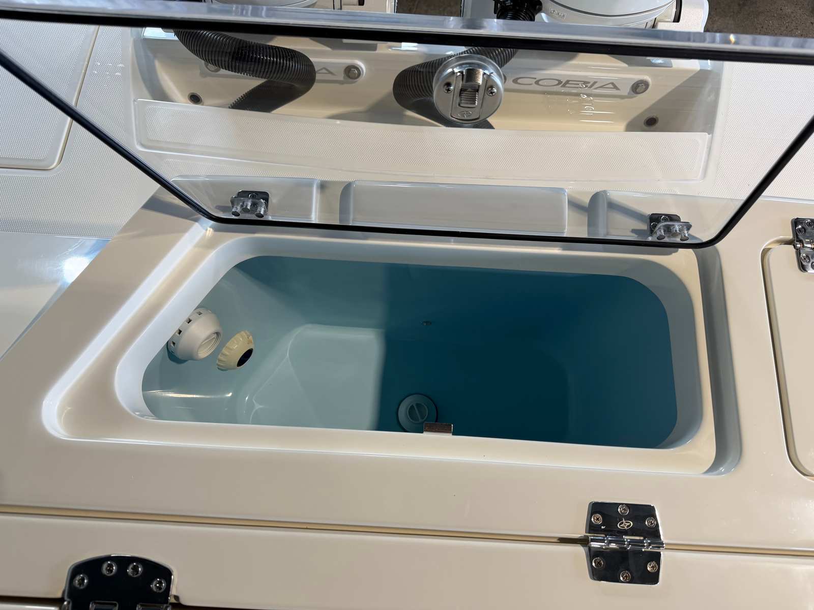 The Cobia 245 CC is as practical as it is enjoyable. Its efficient twin-engine setup offers excellent fuel economy for extended trips, while the intuitive Helm Master system simplifies docking and close-quarters maneuvering. The integrated tackle station at the helm seat keeps your fishing gear organized and within reach, making it easy to switch from cruising to casting in seconds. The Seakeeper Ride trim tabs enhance stability, reducing fatigue and ensuring a comfortable ride for everyone on board. Storage solutions throughout the boat provide ample space for gear, snacks, and personal items, so you can pack everything you need for a day on the water without feeling cramped.