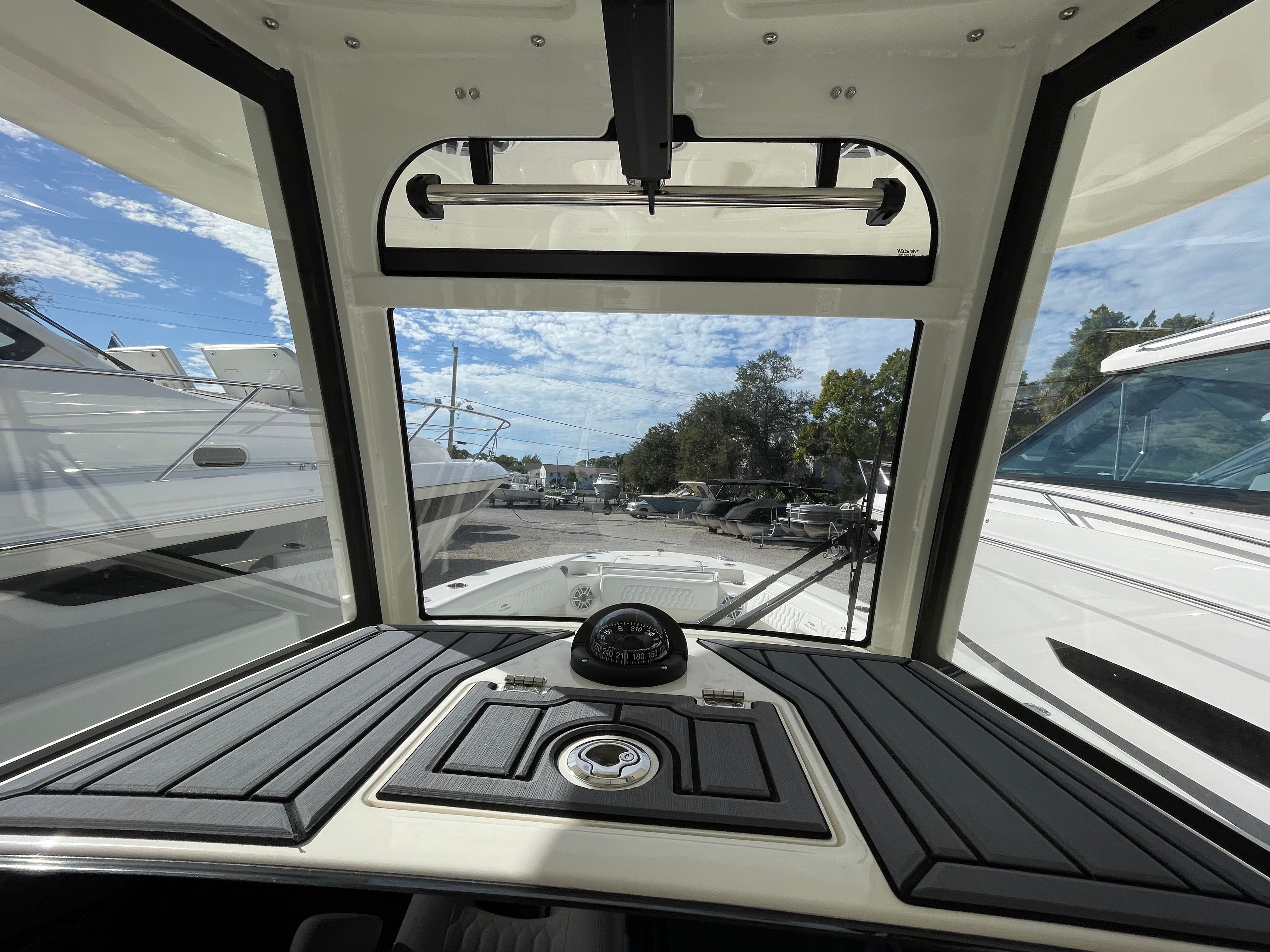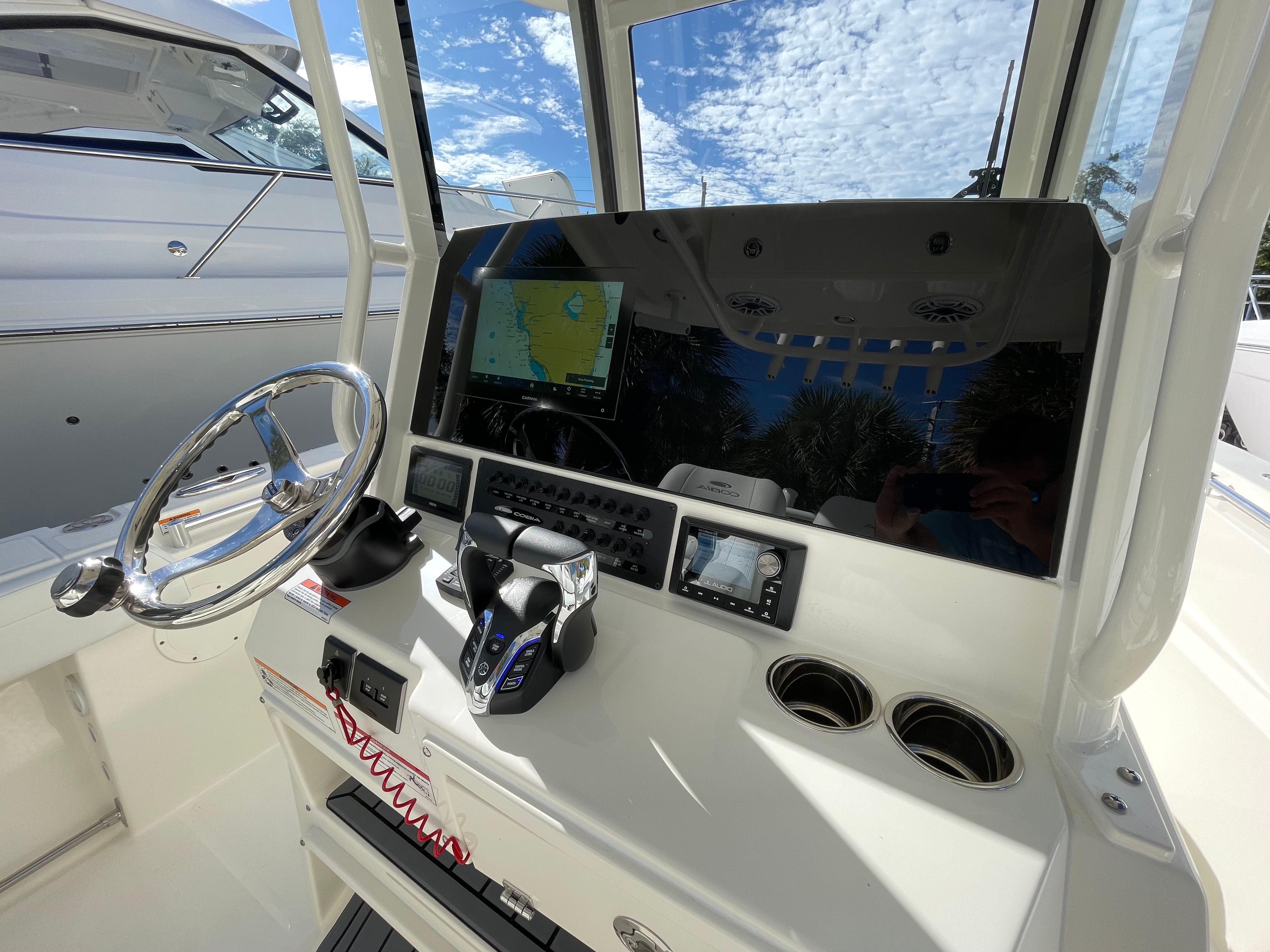 Practicality is woven into every aspect of the Cobia 265 CC’s design. The Center Console layout provides easy access around the entire boat, making docking, anchoring, and moving about effortless. The twin Yamaha engines offer not only impressive power but also reliability and fuel efficiency, allowing you to spend more time on the water and less time at the fuel dock. The Digital Electric Steering system simplifies handling, reducing fatigue during long days on the water. Storage solutions are thoughtfully integrated throughout the boat, ensuring your gear, tackle, and personal items are always organized and within reach. The durable faux teak decking is easy to maintain, so you can focus on enjoying your time on board rather than worrying about upkeep.
