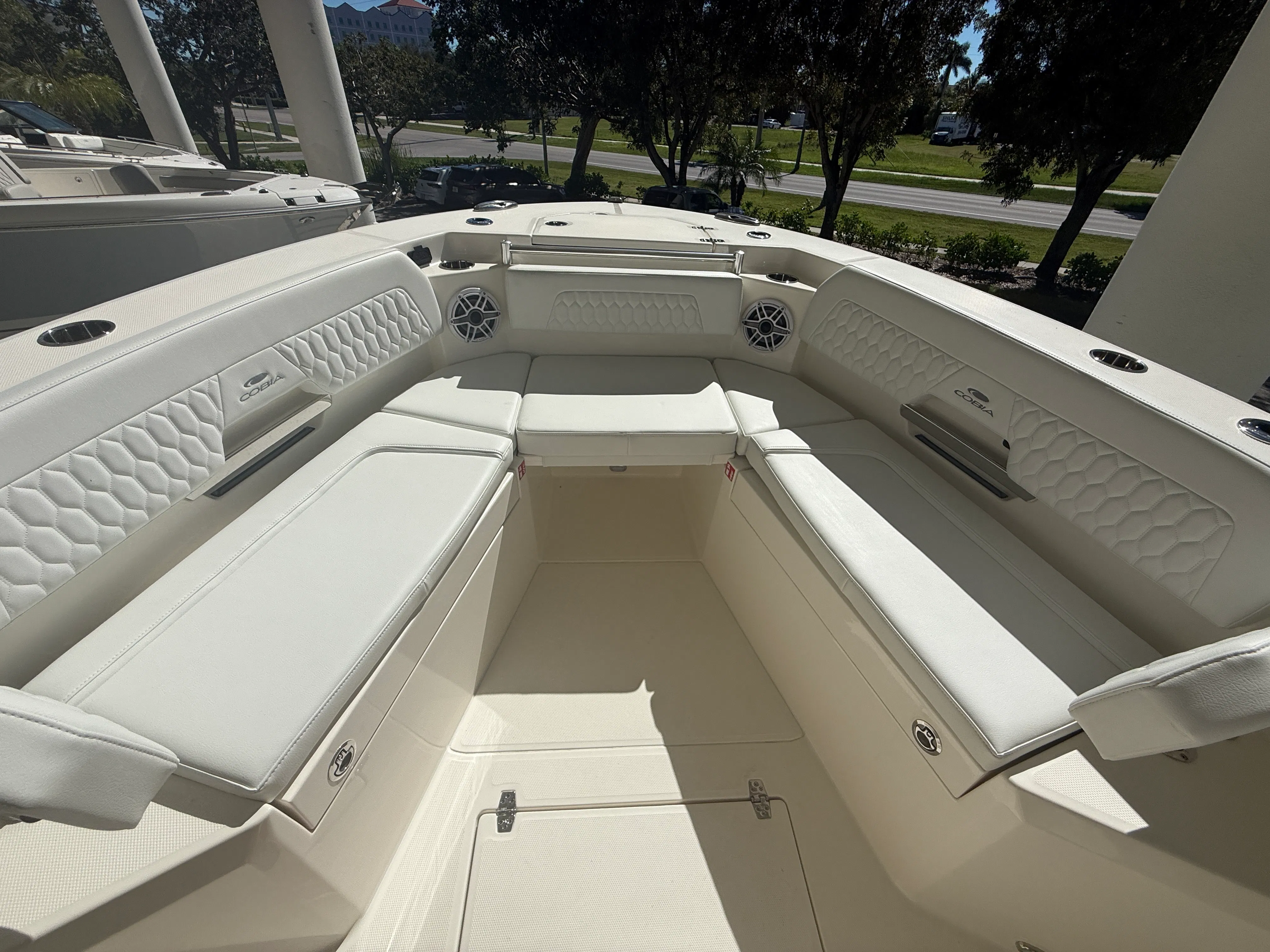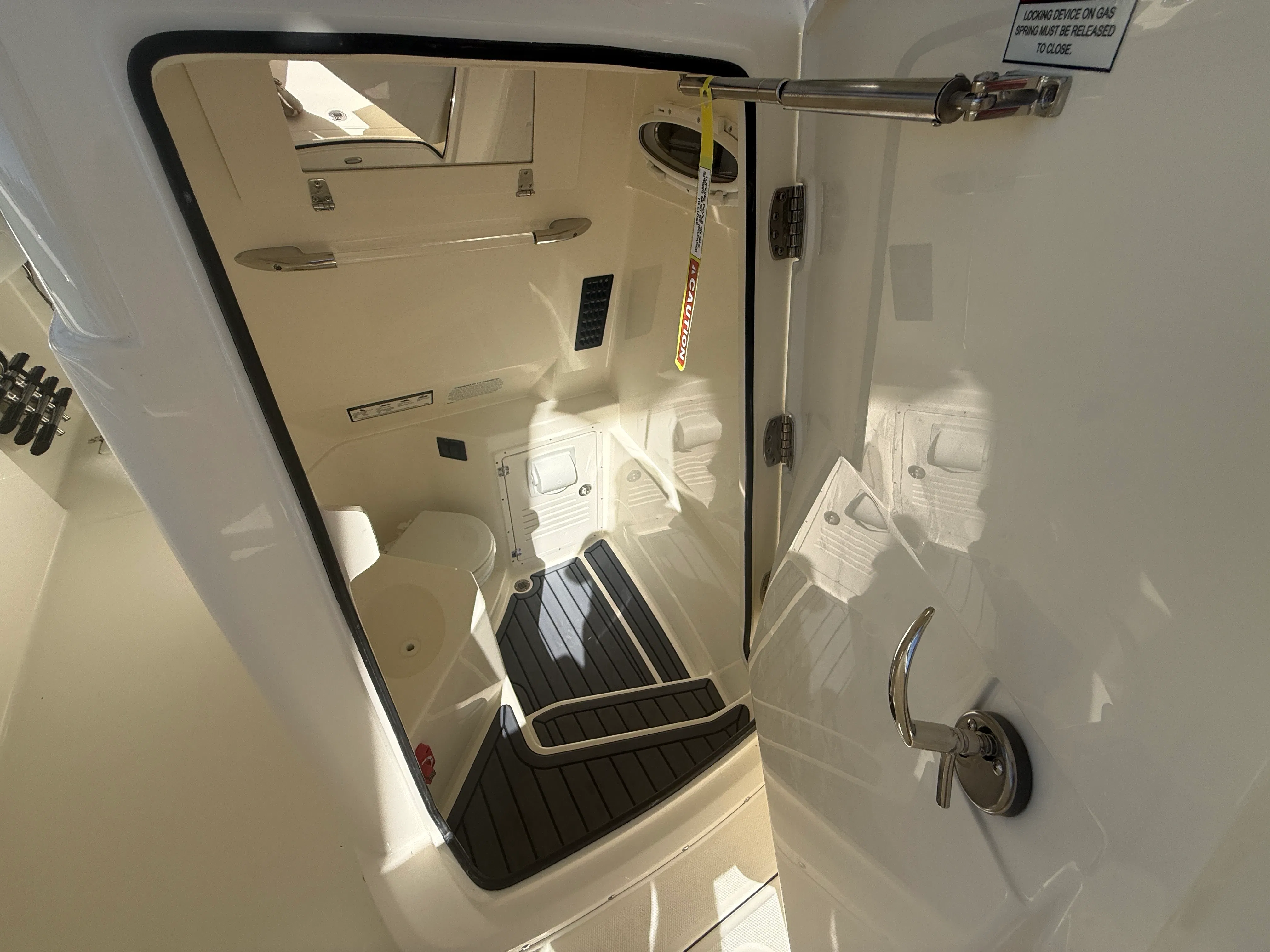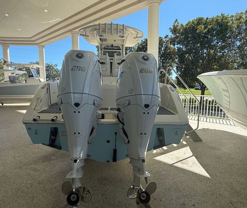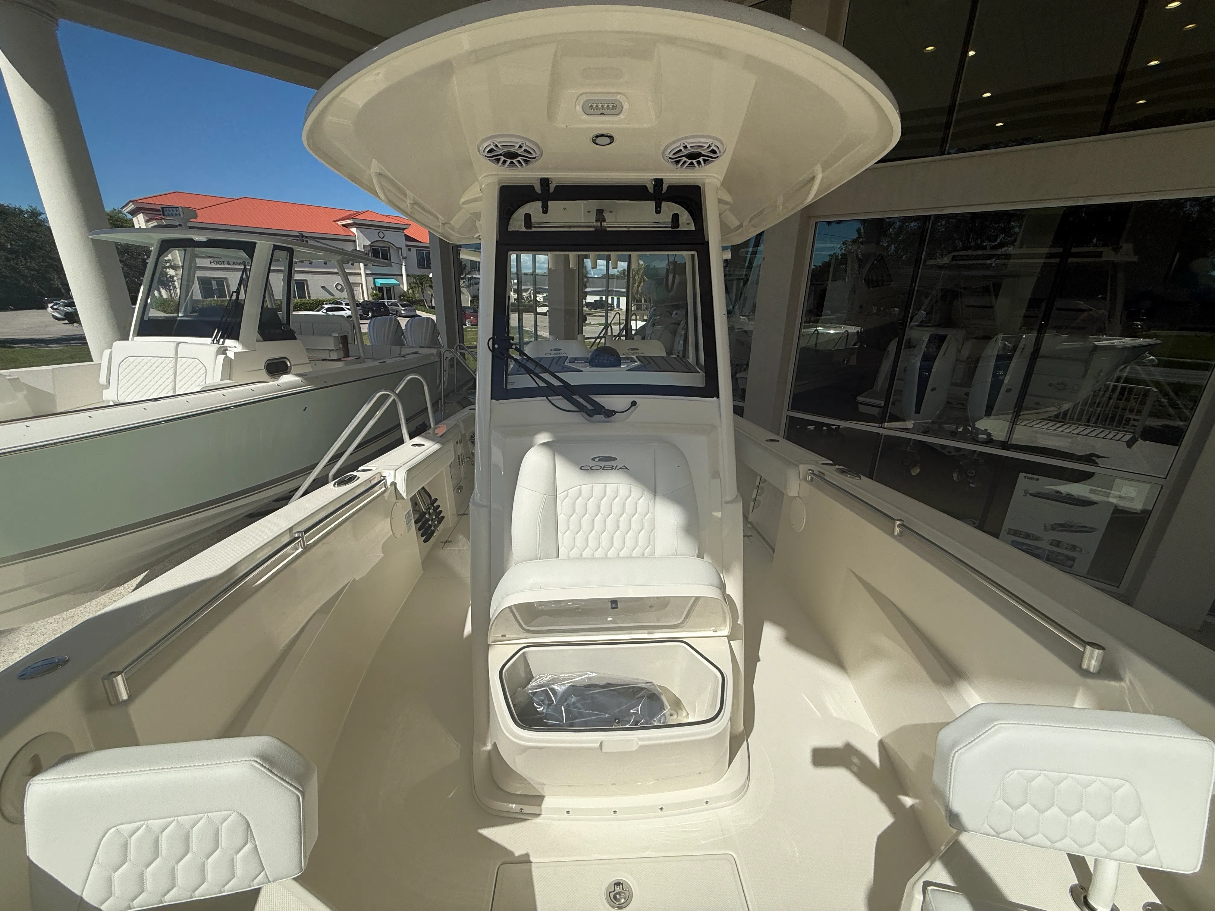 Powering the Cobia 265 CC are twin Yamaha F200XSA engines, delivering a combined 400 horsepower for an exhilarating ride. These engines are renowned for their reliability, efficiency, and smooth operation, ensuring you have the muscle needed to tackle offshore waters or cruise comfortably along the coast. The inclusion of Helm Master EX DES Twin Engine with ISO Charger elevates your boating experience, providing advanced control and seamless maneuverability. Digital Electric Steering offers precise handling, making docking and navigating tight spaces effortless. Whether you’re chasing the horizon or enjoying a leisurely cruise, the Cobia 265 CC’s performance capabilities are sure to impress.