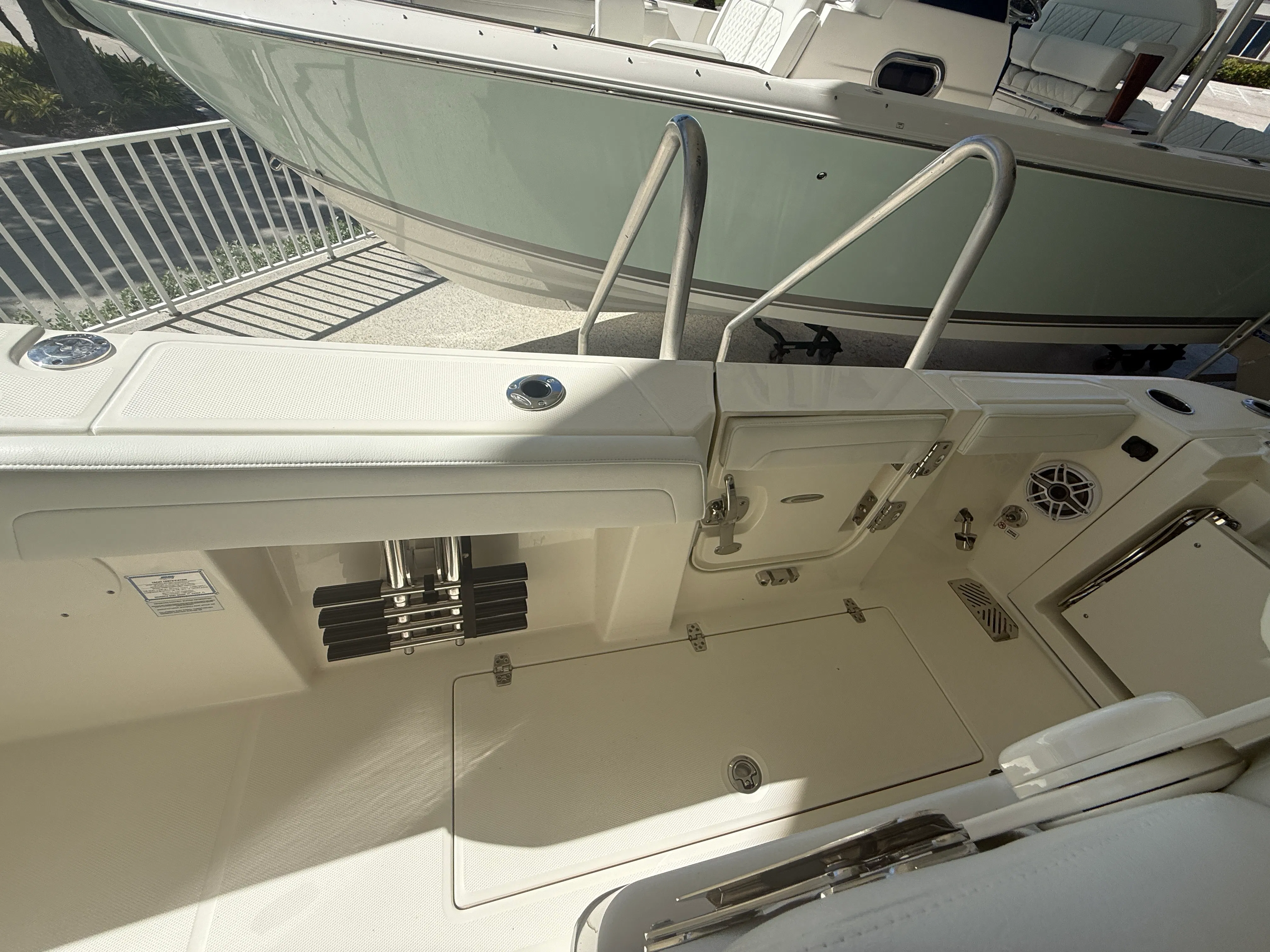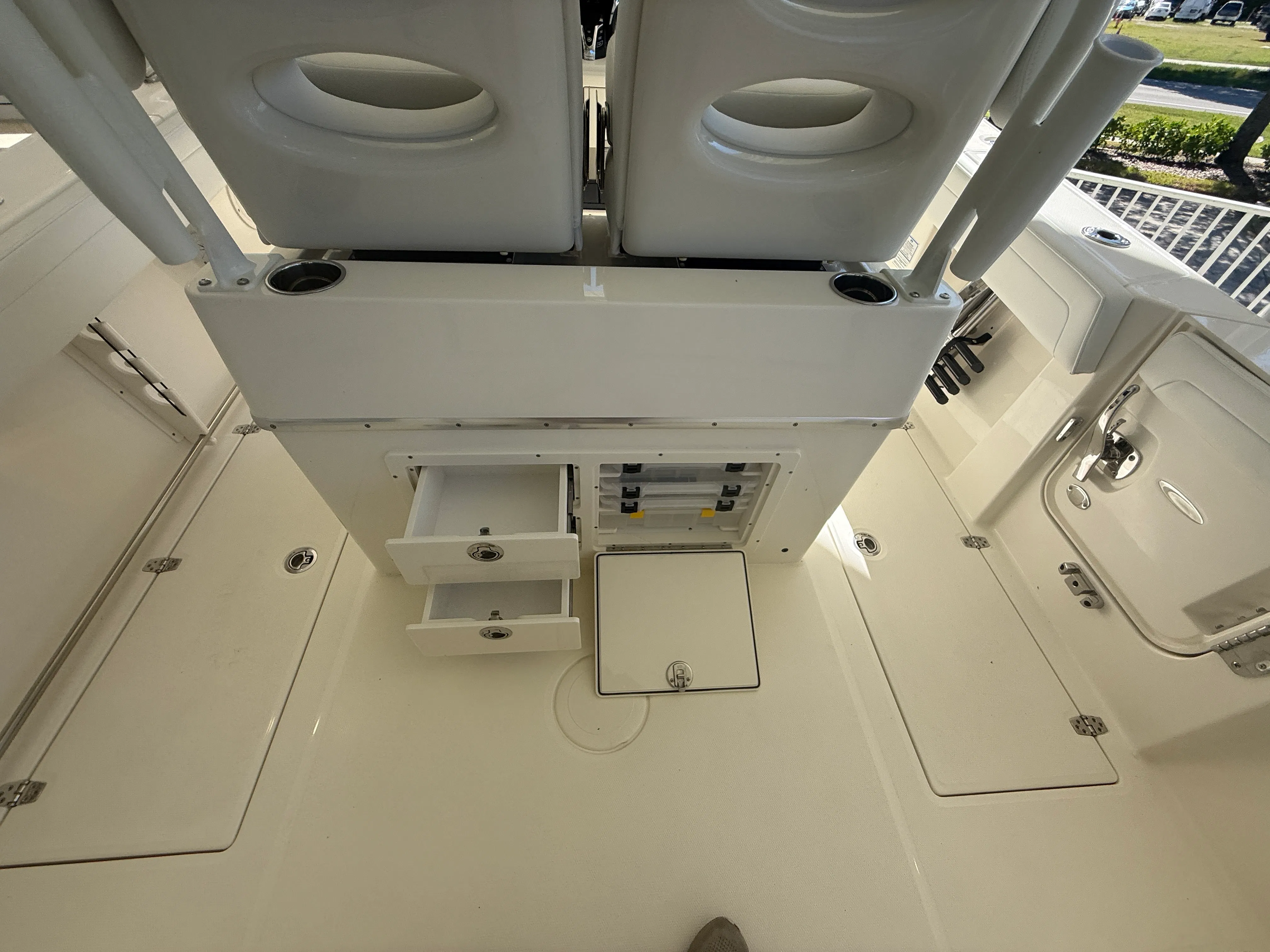 Owning the Cobia 265 CC Center Console means unlocking a world of fun and excitement. The spacious layout is perfect for entertaining friends and family, with plenty of room to relax, sunbathe, or enjoy a picnic on the water. The advanced helm seating and tackle station make it easy to transition from cruising to fishing, catering to both leisure seekers and serious anglers. The plush bow cushions invite you to stretch out and soak up the sun, while the ergonomic design ensures everyone stays comfortable throughout the day. With its powerful twin engines and cutting-edge steering system, you’ll experience effortless control and confidence, whether you’re exploring new waters or returning to your favorite spot.
