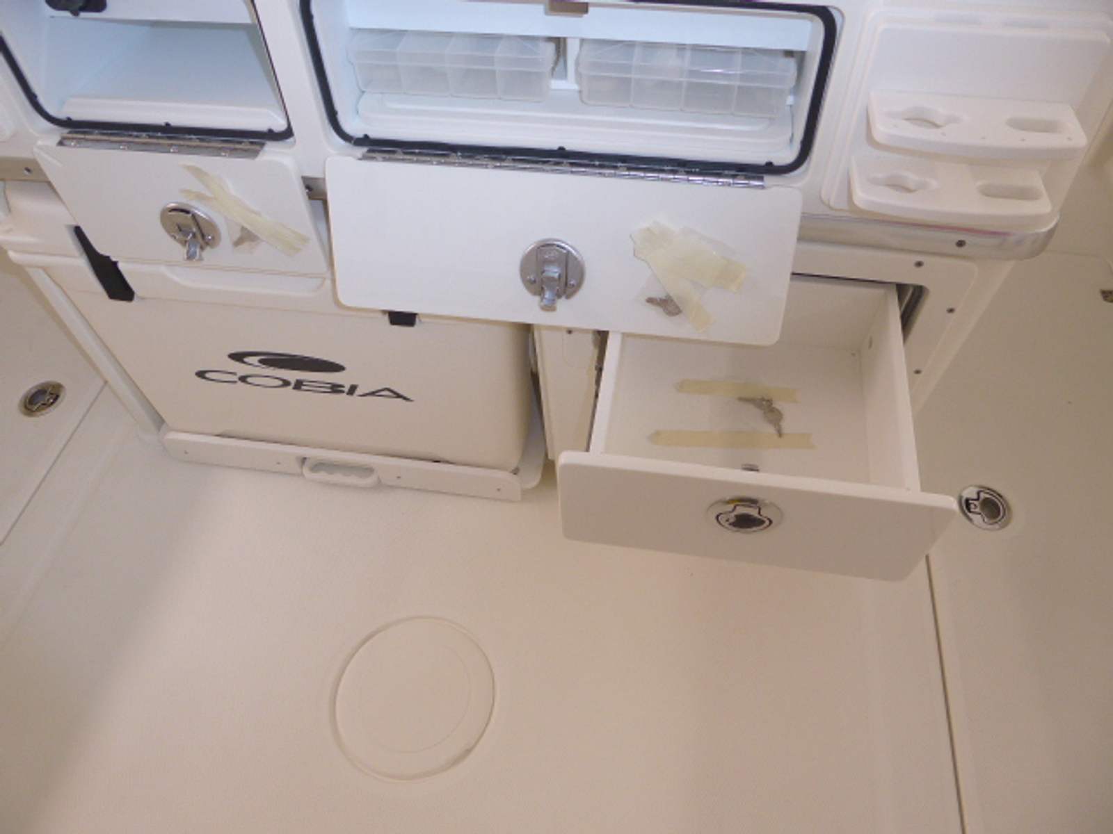 The Cobia 265 CC is designed with practicality in mind, making ownership a breeze. The digital electric steering and Helm Master system simplify docking and close-quarters maneuvering, reducing stress and increasing confidence for boaters of all experience levels. The tackle center and cooler provide organized storage for gear and refreshments, keeping the deck clutter-free and maximizing usable space.The hardtop with integrated frame and glass windshield offers superior protection and visibility, while the faux teak decking is easy to clean and maintain. The electric head with macerator ensures that you’re prepared for longer journeys, and the bow sun shade adds versatility for both relaxation and entertaining. With its thoughtful design and advanced features, the Cobia 265 CC is as practical as it is enjoyable.