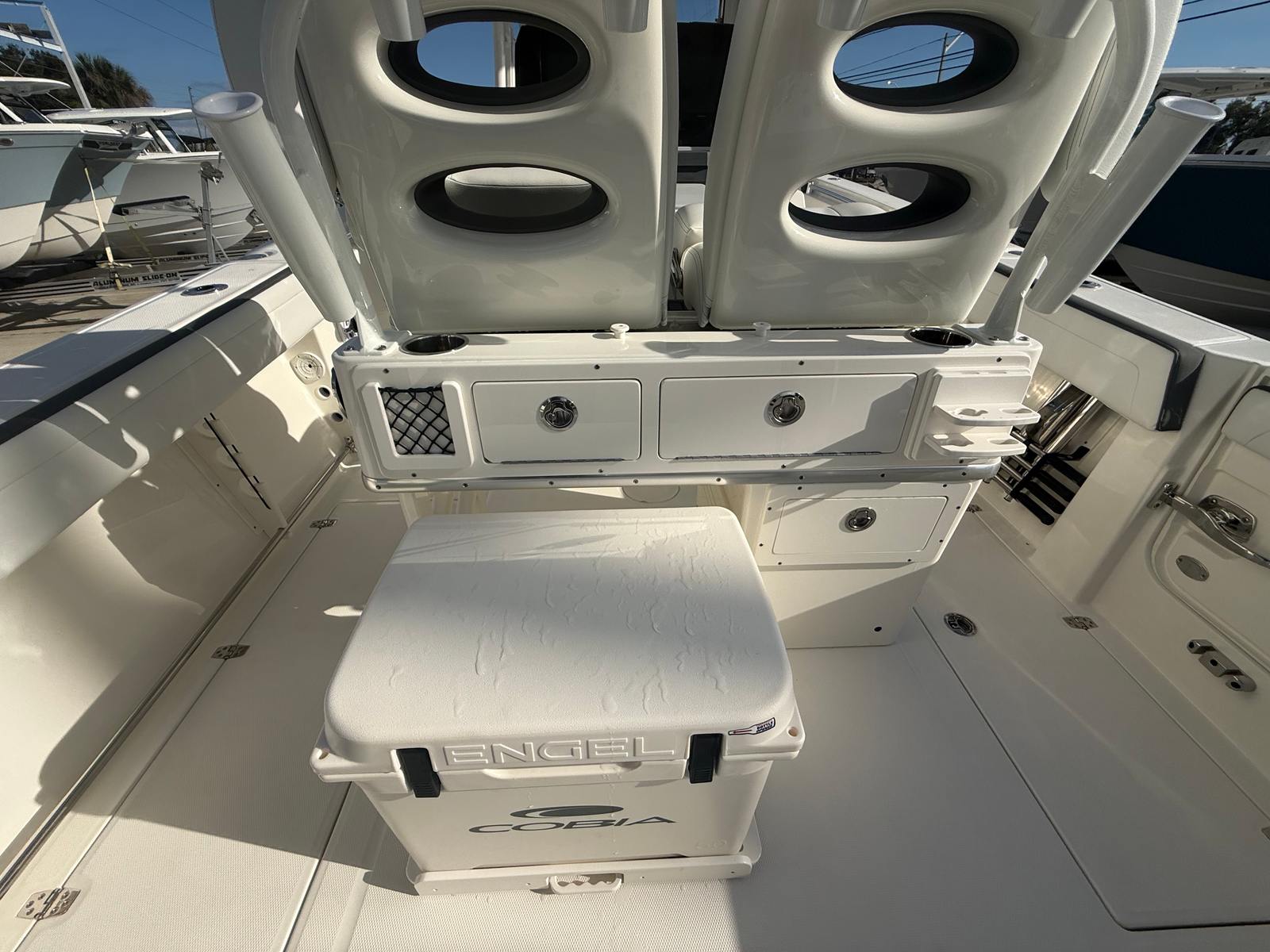 The Cobia 265 Open is designed with practicality in mind, making ownership a breeze. The generous storage options, including the tackle center and cooler, keep your gear organized and your refreshments cold. The fish box pump-outs with macerators make cleaning up after a successful day of fishing quick and easy. The hardtop provides shade and protection, while the integrated frame and glass windshield enhance safety and visibility.Docking is straightforward thanks to the boat’s responsive handling and advanced steering system. The faux teak decking is not only stylish but also easy to clean and maintain, ensuring your boat looks great season after season. The durable white powder coating and stainless steel components resist corrosion, reducing maintenance and extending the life of your investment.