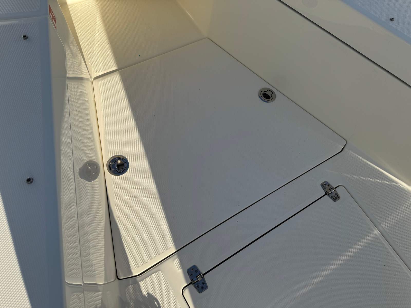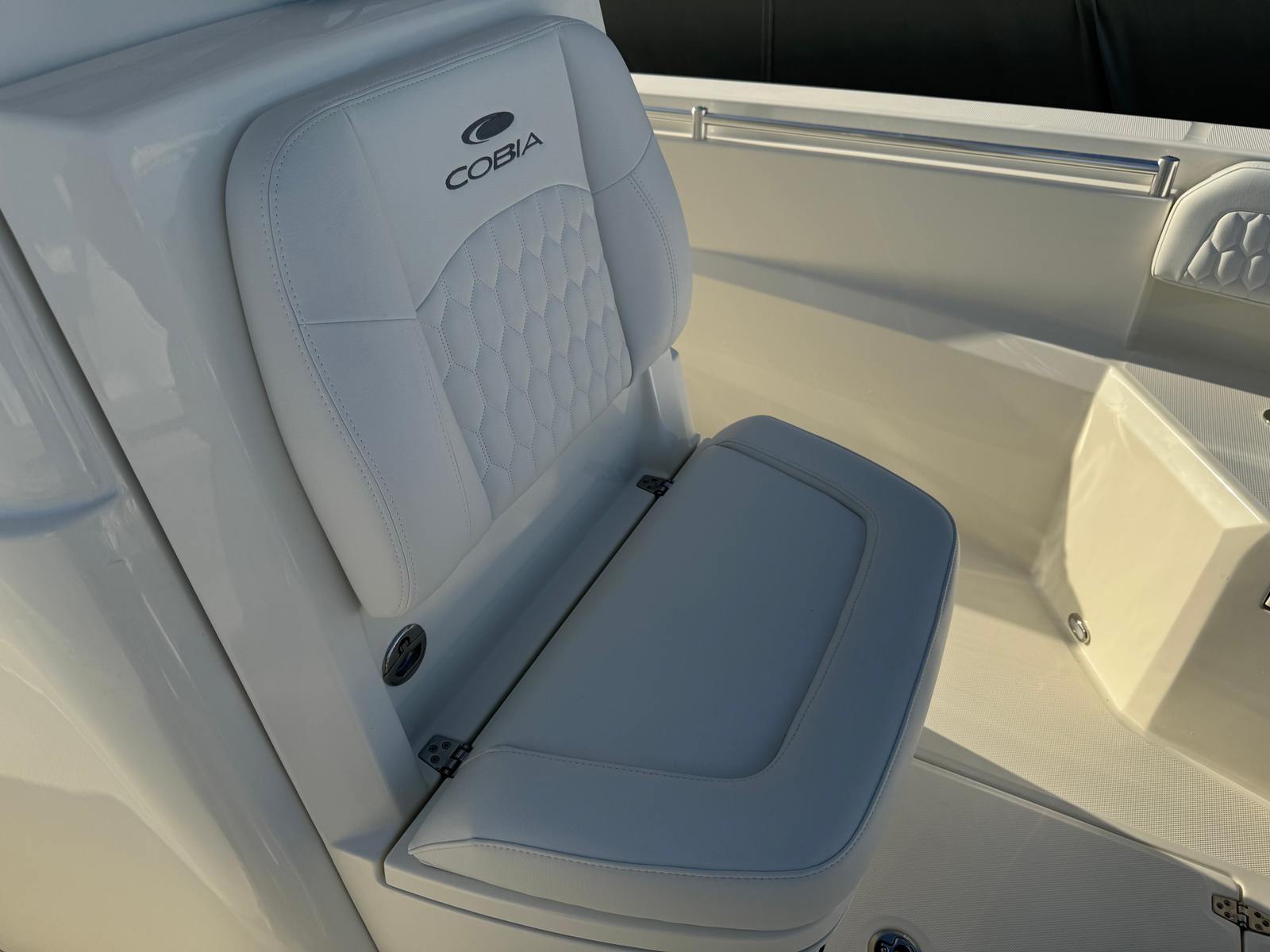 The 2026 Cobia 285 CC is loaded with features that enhance both functionality and comfort. The Seakeeper Ride system, complete with trim tabs and ride indicators, delivers a smooth, stable experience even in choppy conditions, allowing you to focus on fun rather than the elements. The Bayside Blue two-tone hull is both stylish and durable, while the white cushion package and bow cushion package provide plush seating throughout the boat. The standard helm seat with a tackle station is perfect for anglers who want quick access to gear, and the ISO charger ensures your electronics stay powered up for a full day on the water. Every detail, from the upgraded steering wheel to the thoughtful seating arrangements, is designed to maximize your enjoyment and convenience.