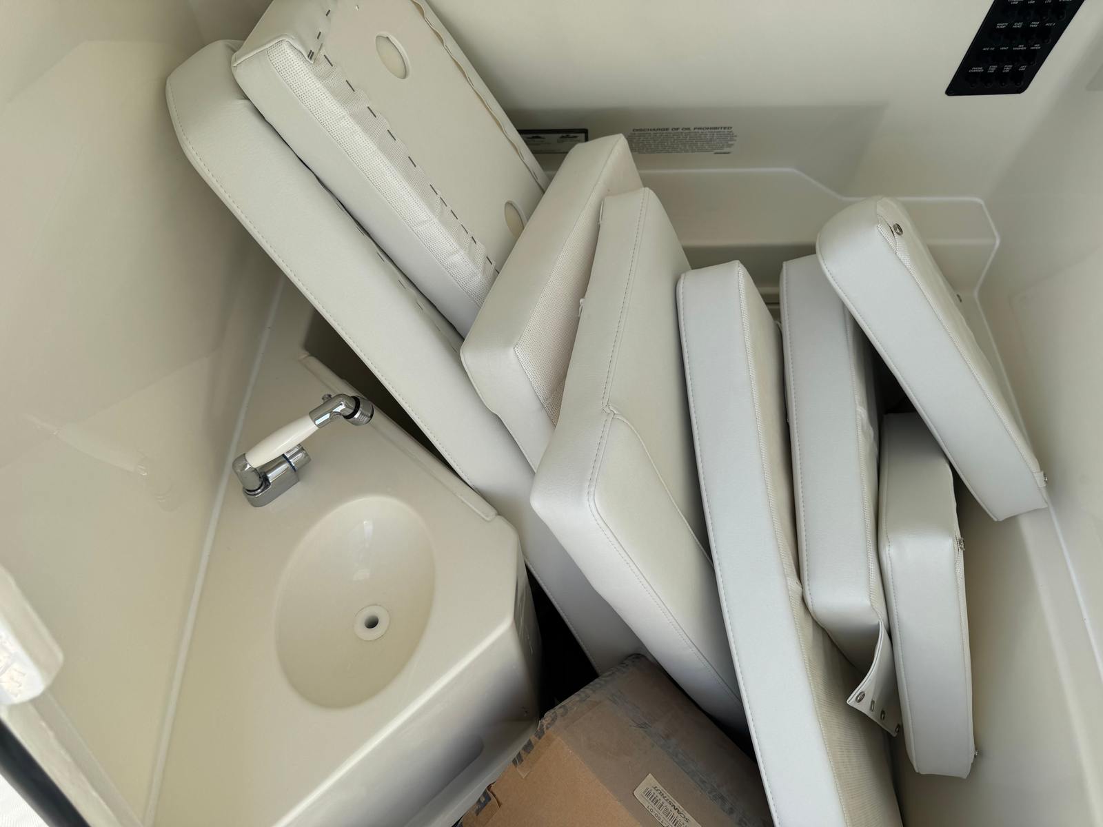 Practicality is at the heart of the Cobia 285 CC’s design. The intuitive helm layout, complete with digital electric steering and joystick controls, makes docking and maneuvering a breeze, even for less experienced captains. The tackle station and organized storage compartments keep your gear secure and accessible, while the ISO charger ensures your devices remain charged throughout your adventures. The boat’s length provides stability and ample deck space, making it easy to move around whether you’re casting lines or enjoying a picnic on the water. The Seakeeper Ride system further enhances safety and comfort, reducing fatigue and allowing you to spend more time enjoying your favorite activities.
