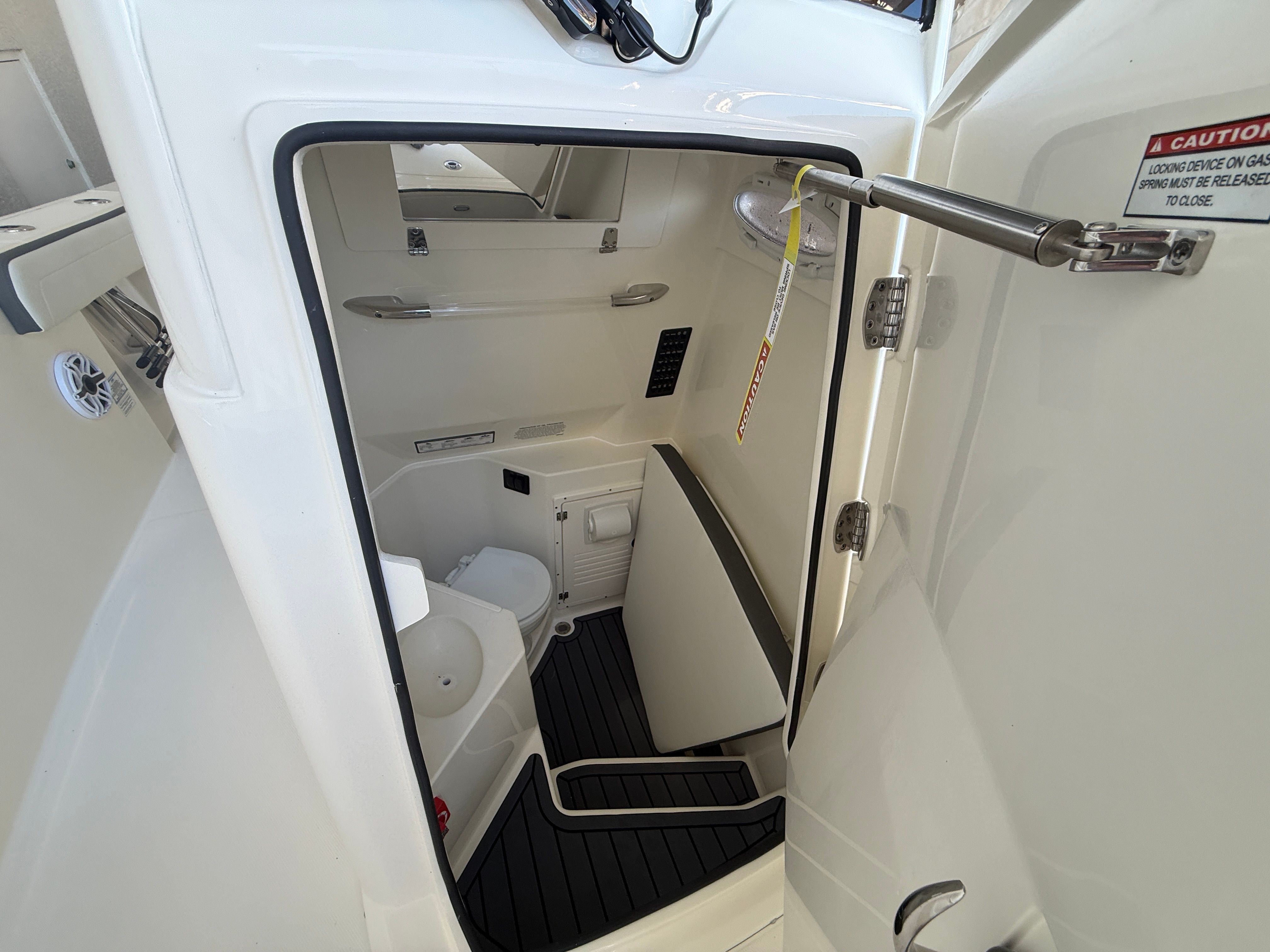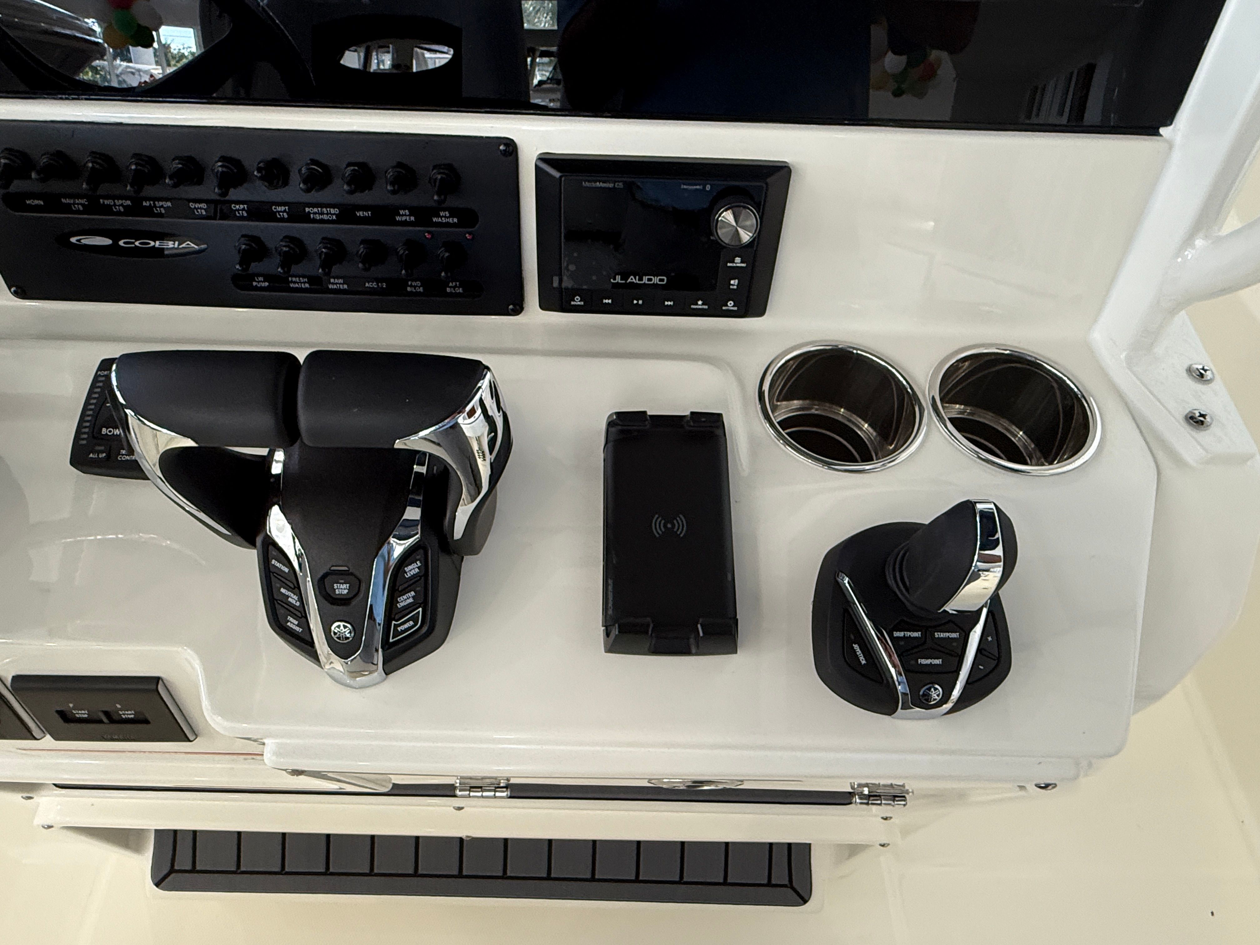 At the heart of the Cobia 285 CC are twin Yamaha F350XSA2 engines, finished in a stunning white that complements the boat’s contemporary aesthetic. Together, these engines deliver a formidable 700 horsepower, providing exhilarating acceleration, impressive top speeds, and reliable performance in a variety of conditions. The inclusion of Digital Electric Steering and the advanced Helm Master EX DES Twin Engine system with autopilot and joystick control ensures precise handling and effortless maneuverability. Whether you are navigating tight marinas or cruising open waters, the Cobia 285 CC offers a smooth, responsive ride that inspires confidence at every turn.