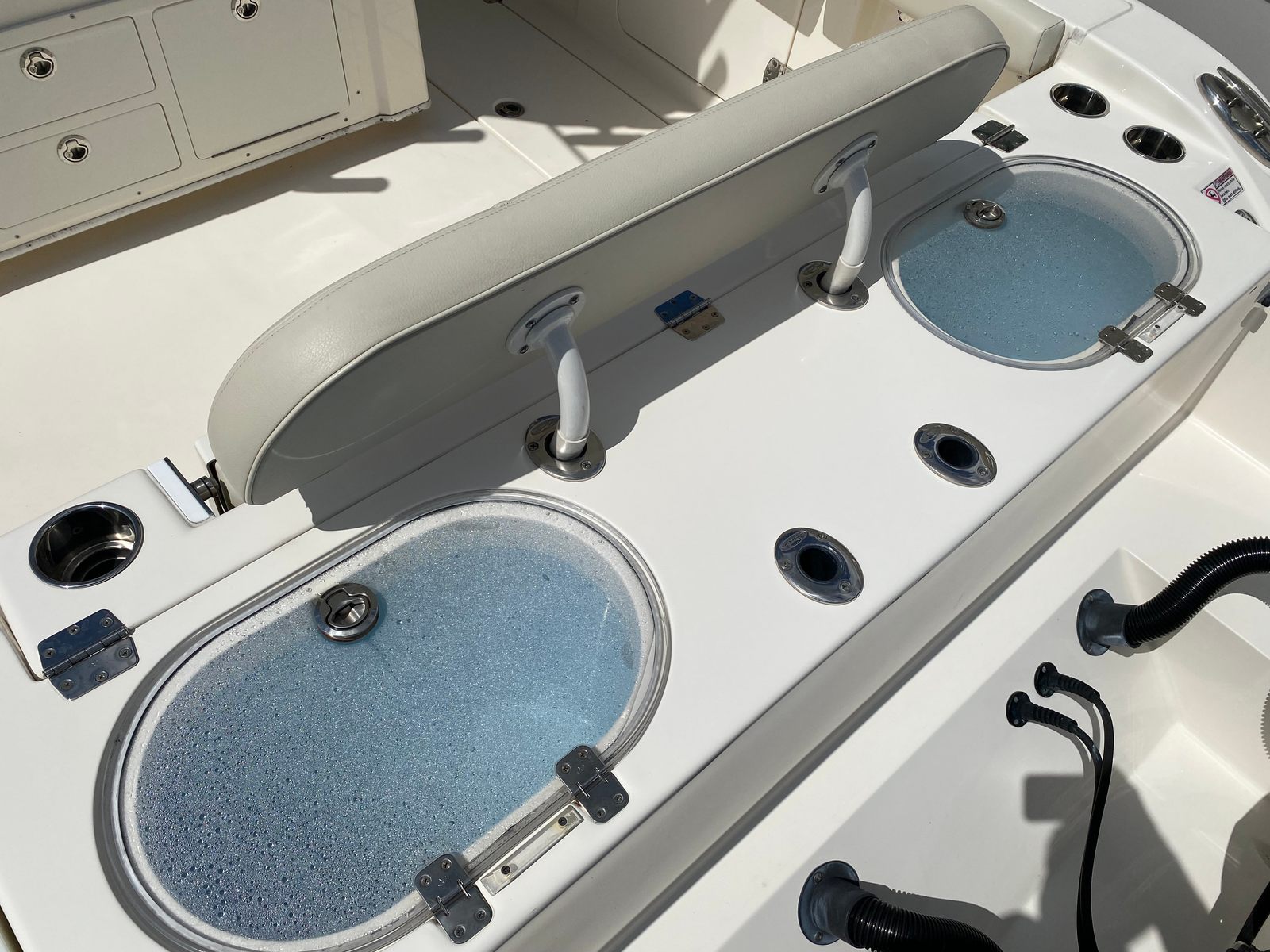 This Cobia boat for sale is as practical as it is exciting. The Center Console configuration allows for ample storage space for fishing gear, water toys, and personal belongings, keeping the deck clutter-free and organized. The boat’s design makes docking and maneuvering straightforward, even for those new to boating. The efficient twin-engine setup not only delivers impressive power but also offers the peace of mind that comes with redundancy and reliability. With only 150 engine hours, this used Cobia 301 CC is ready to provide years of dependable service. Whether you are planning a quick afternoon escape or a full day on the water, this boat’s thoughtful features make every trip easy and enjoyable.