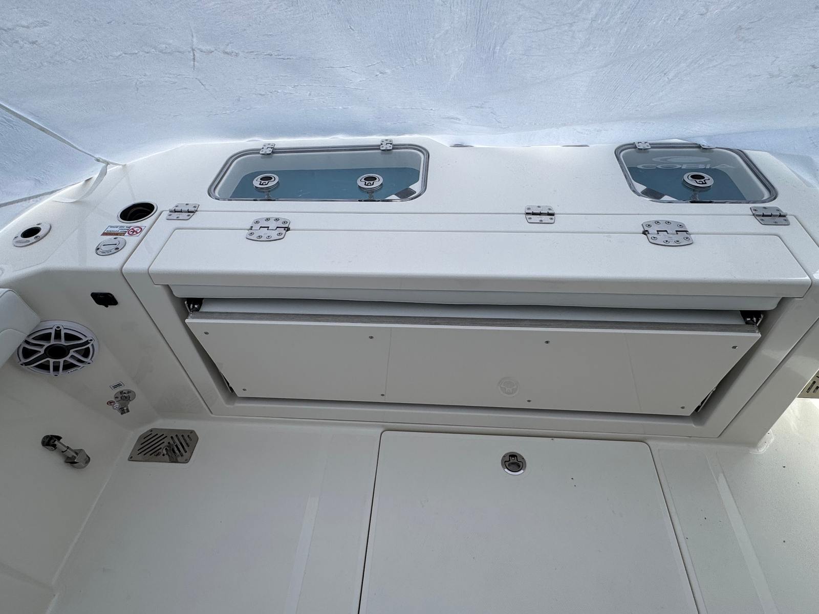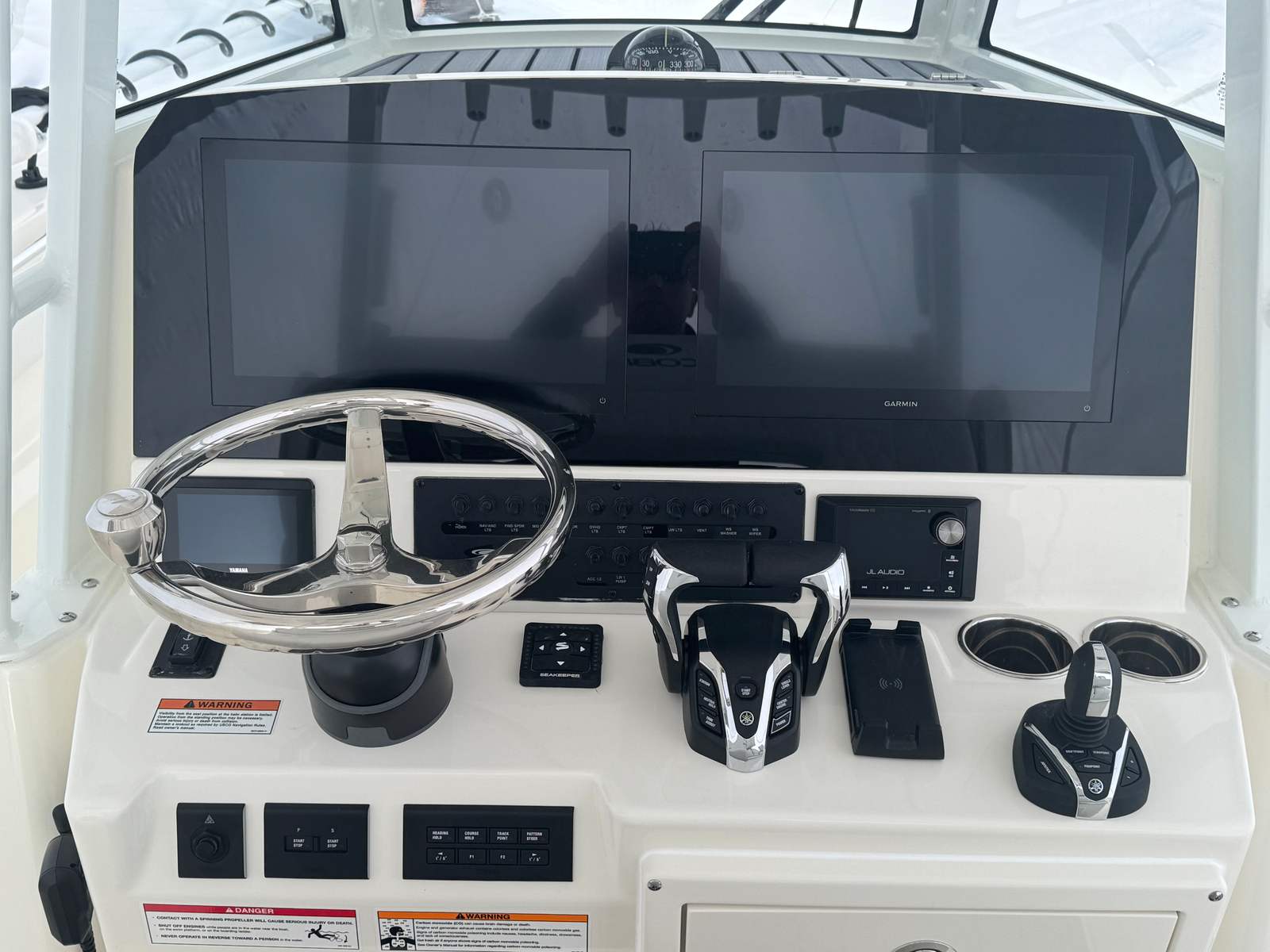 The Cobia 305 CC is as practical as it is stylish. Its center console design allows for easy movement around the deck, making it ideal for fishing, water sports, or simply relaxing in the sun. The advanced Garmin electronics and trolling motor provide precise control and navigation, while the Seakeeper Ride trim tabs ensure a smooth, stable ride in a variety of conditions.Docking and maneuvering are simplified thanks to the intuitive Helm Master controls, and the durable rub rails offer peace of mind when coming alongside docks or other vessels. The boat’s layout is optimized for both storage and accessibility, allowing you to keep gear organized and within reach. Whether you are planning a quick day trip or an extended adventure, the Cobia 305 CC is equipped to handle it all with ease.