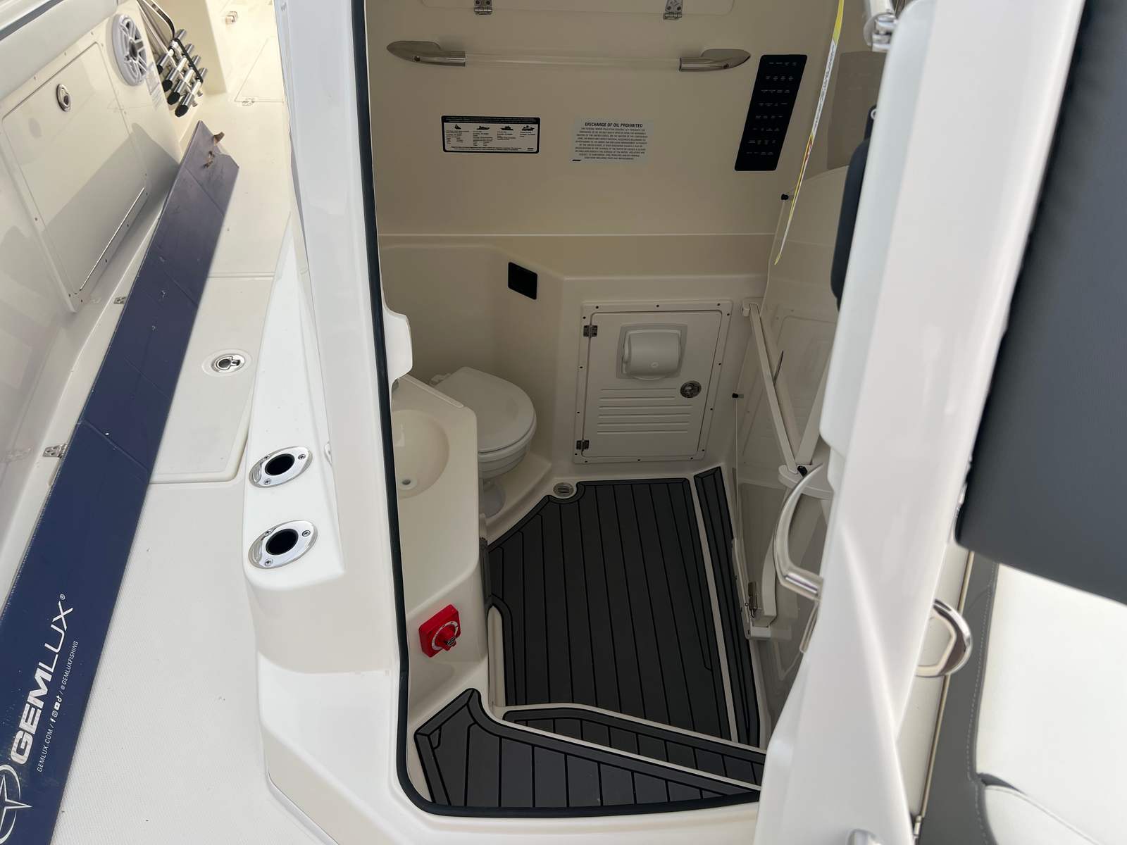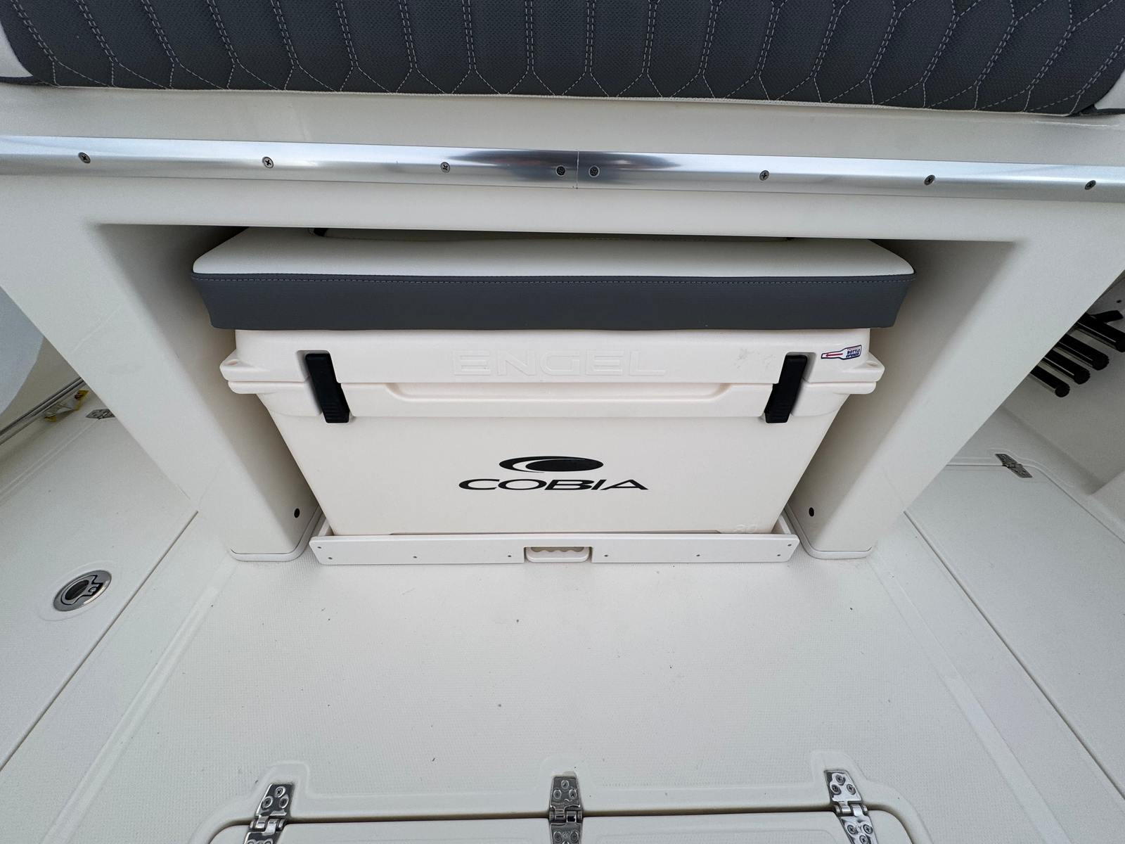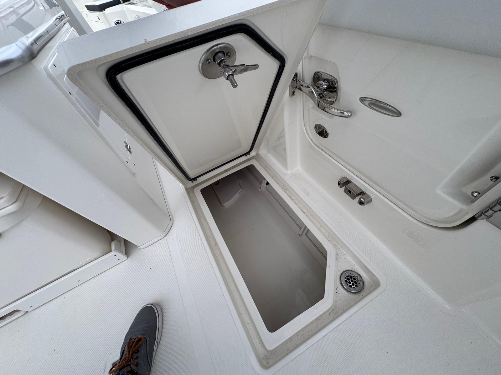 The Cobia 305 CC is designed with practicality in mind, making ownership both enjoyable and convenient. The intuitive Helm Master engine controls and digital electric steering simplify docking and tight maneuvers, reducing stress and increasing safety. The faux teak decking is not only visually appealing but also easy to clean and maintain, so you can spend more time enjoying your boat and less time on upkeep.With ample storage throughout the boat, you can easily stow gear, fishing equipment, and personal items, keeping the deck clutter-free and organized. The efficient Yamaha engines are engineered for reliability and fuel efficiency, allowing you to maximize your time on the water without frequent refueling stops.
