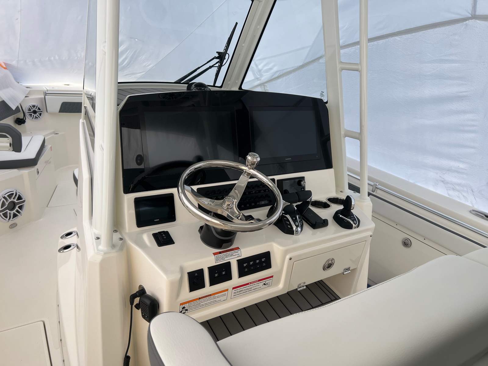 Owning the Cobia 305 CC means embracing a lifestyle of fun, adventure, and relaxation. The spacious layout and thoughtful design make it easy to entertain guests, enjoy family outings, or simply unwind on the water. The plush seating and ergonomic helm ensure comfort for both captain and passengers, while the advanced audio system sets the perfect mood for any occasion.The combination of power and stability means you can confidently explore new waters, participate in water sports, or head offshore for a day of fishing. The integrated hardtop and sun shade provide shelter from the sun, ensuring that everyone stays cool and comfortable, no matter how long you are out on the water.