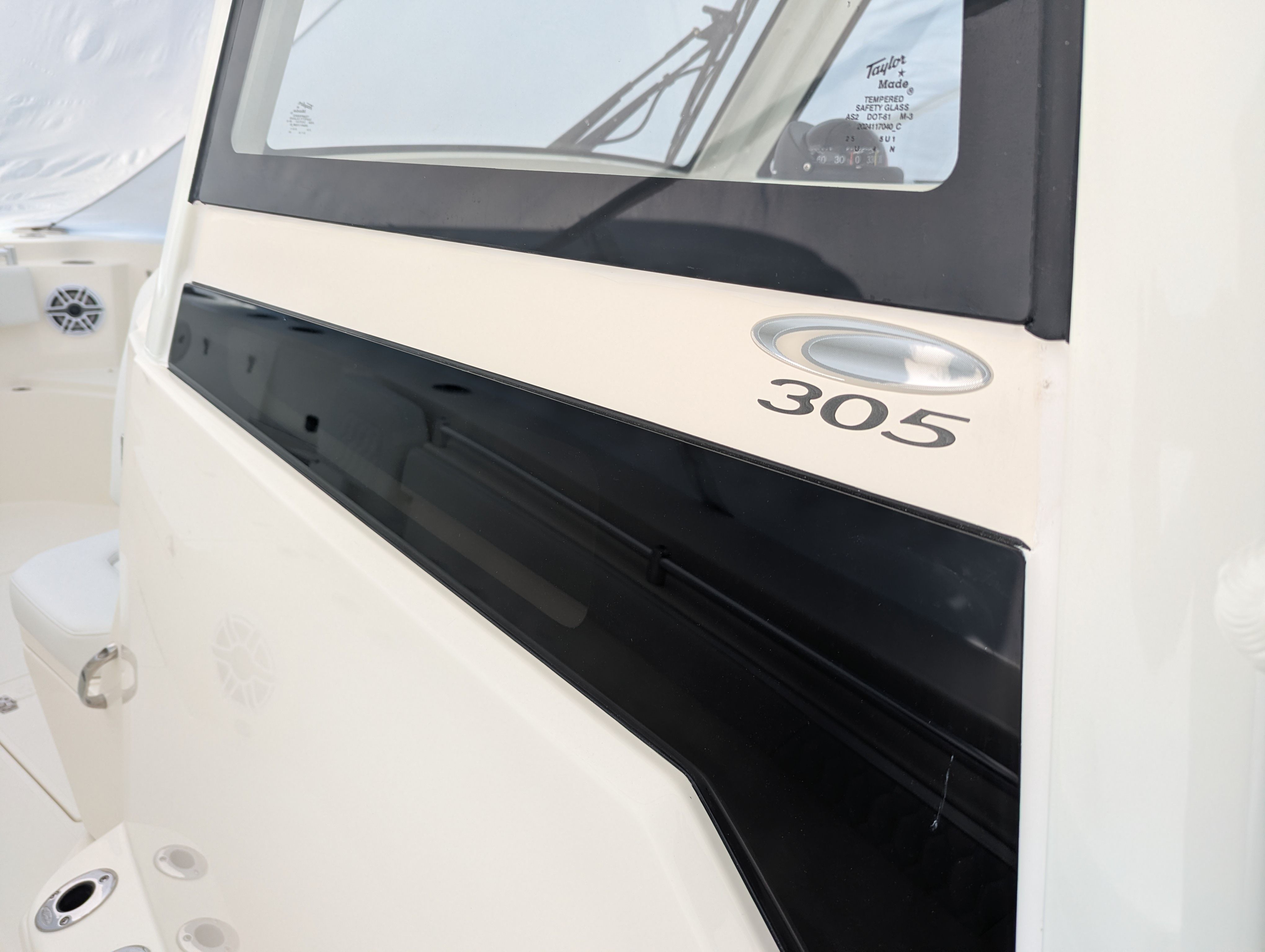 The Cobia 305 CC is loaded with premium features that set it apart in the world of center console boats. The pure white hull exudes modern elegance, while the white cushion package and bow cushion package offer plush seating and relaxation zones for you and your guests. The faux teak decking kit in grey and black not only adds a touch of luxury but also provides a durable, non-slip surface for safety and style.A hardtop with an integrated frame and glass windshield offers superior protection from the elements, ensuring comfort in all weather conditions. The white powder coating on the frame adds durability and a clean, contemporary look. For those who appreciate high-quality sound, the JL Audio stereo system with amplifier, two subwoofers, and six white speakers delivers an immersive audio experience, perfect for setting the mood during your outings.