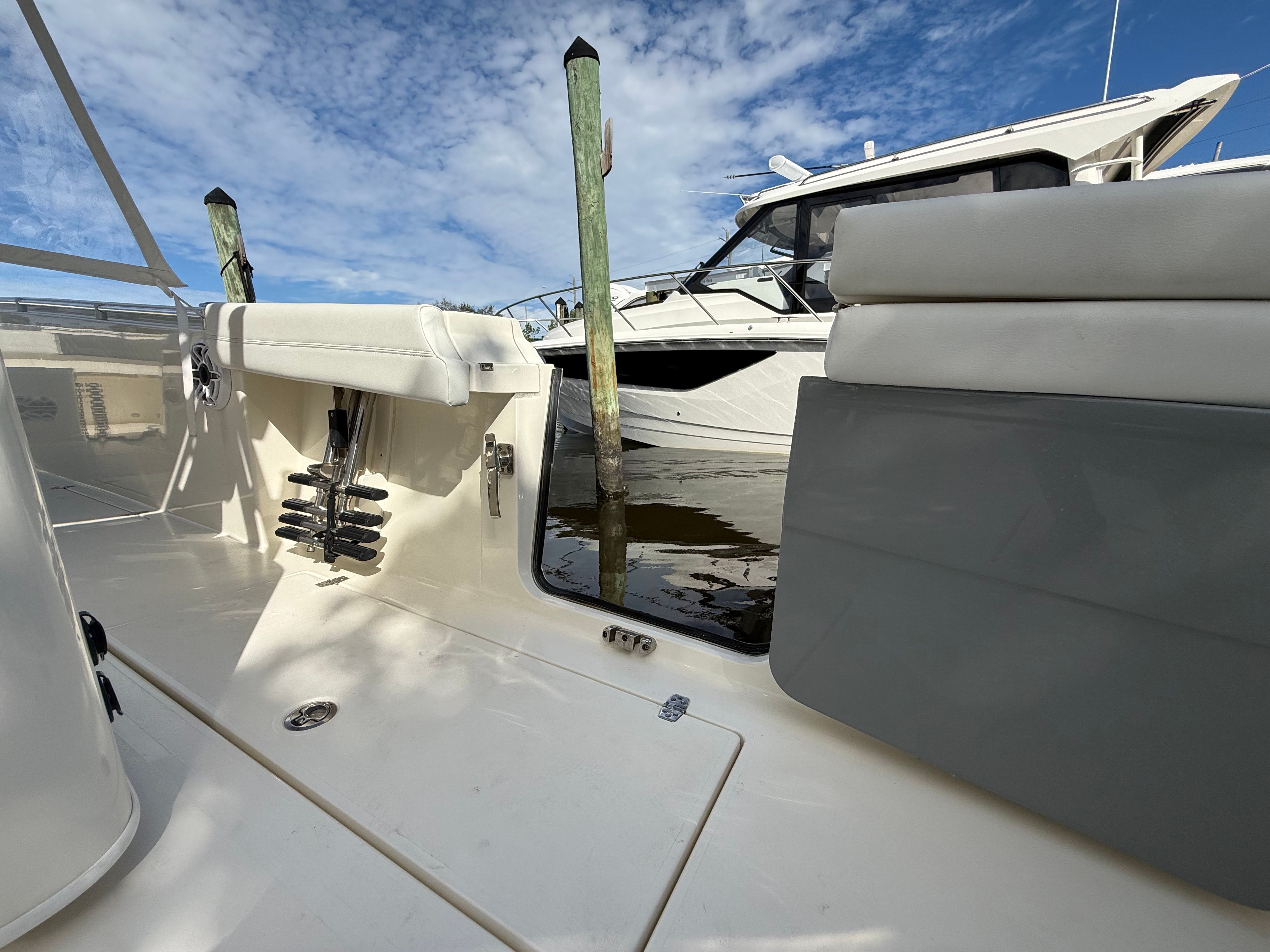 The Cobia 350 CC is packed with features that cater to both serious anglers and those seeking leisurely days on the water. Its expansive Center Console layout offers ample space for movement, making it easy to navigate the deck whether you are casting lines or entertaining guests. The ergonomic helm station is designed for maximum visibility and control, allowing you to operate the boat with confidence and ease. The thoughtful arrangement of seating and storage ensures that everyone on board has a comfortable place to relax, while gear and equipment are kept organized and accessible.This Cobia boat for sale is engineered with high-quality materials and attention to detail, ensuring durability and longevity. The spacious deck provides plenty of room for fishing, sunbathing, or socializing, while the Center Console design offers protection from the elements and convenient access to all areas of the boat. Every aspect of the Cobia 350 CC is crafted to enhance your experience on the water, from the intuitive controls to the stylish finishes.