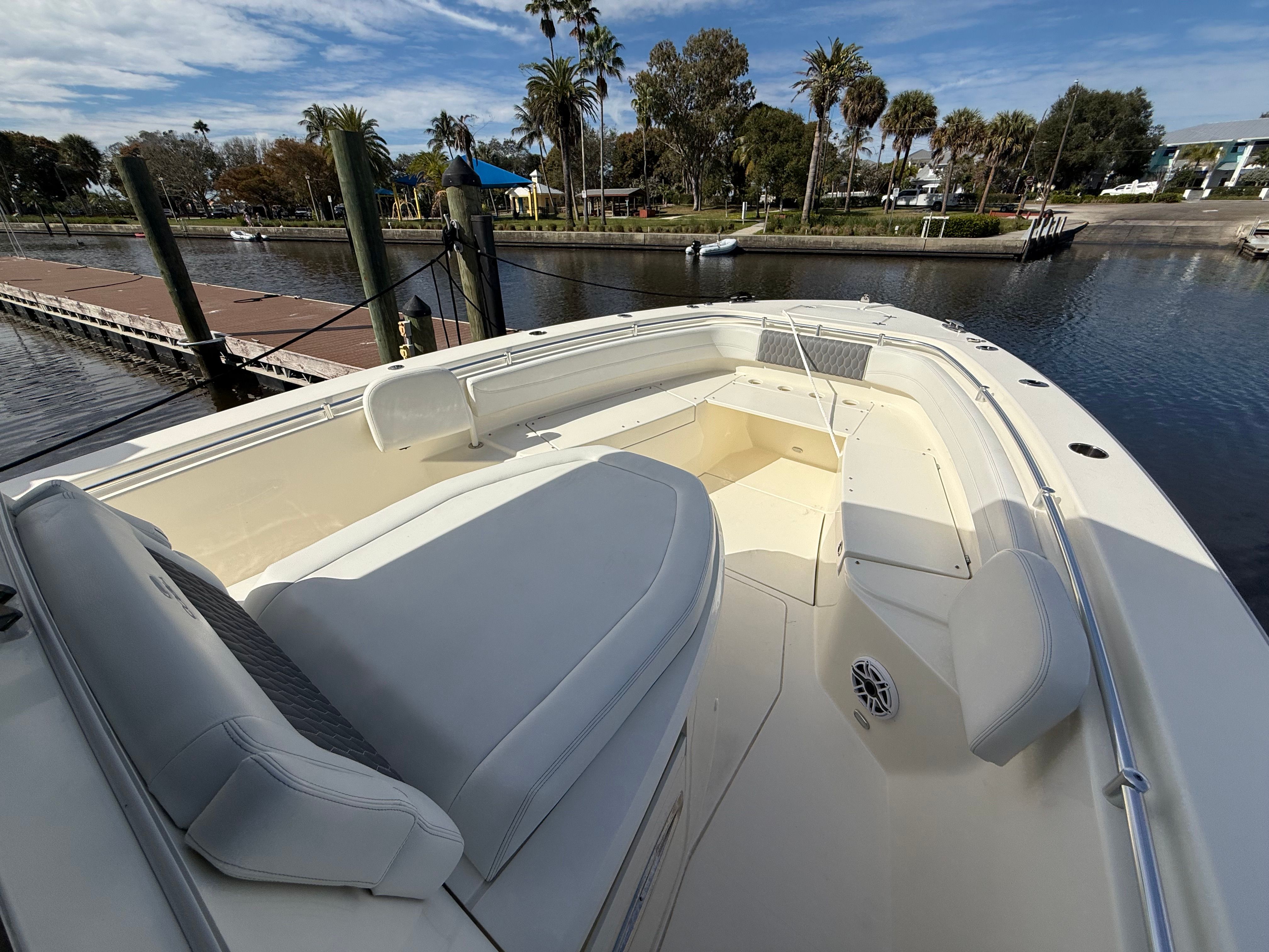 Owning a Cobia 350 CC Center Console boat opens up a world of possibilities for fun and relaxation. The generous length and open layout make it ideal for hosting family gatherings, parties, or casual outings with friends. The powerful engines ensure that you can explore new destinations, participate in water sports, or simply enjoy a leisurely cruise with ease. The Center Console design maximizes deck space, allowing for seamless movement and interaction among guests. Whether you are fishing, swimming, or soaking up the sun, the Cobia 350 CC provides the perfect platform for making lasting memories on the water.Comfort is a top priority on the Cobia 350 CC, with well-designed seating areas that invite you to unwind and enjoy the scenery. The boat’s stability and smooth ride contribute to a relaxing atmosphere, even during longer journeys. With ample storage throughout the vessel, you can bring along all the gear, snacks, and supplies you need for a full day of adventure without feeling cramped or cluttered.
