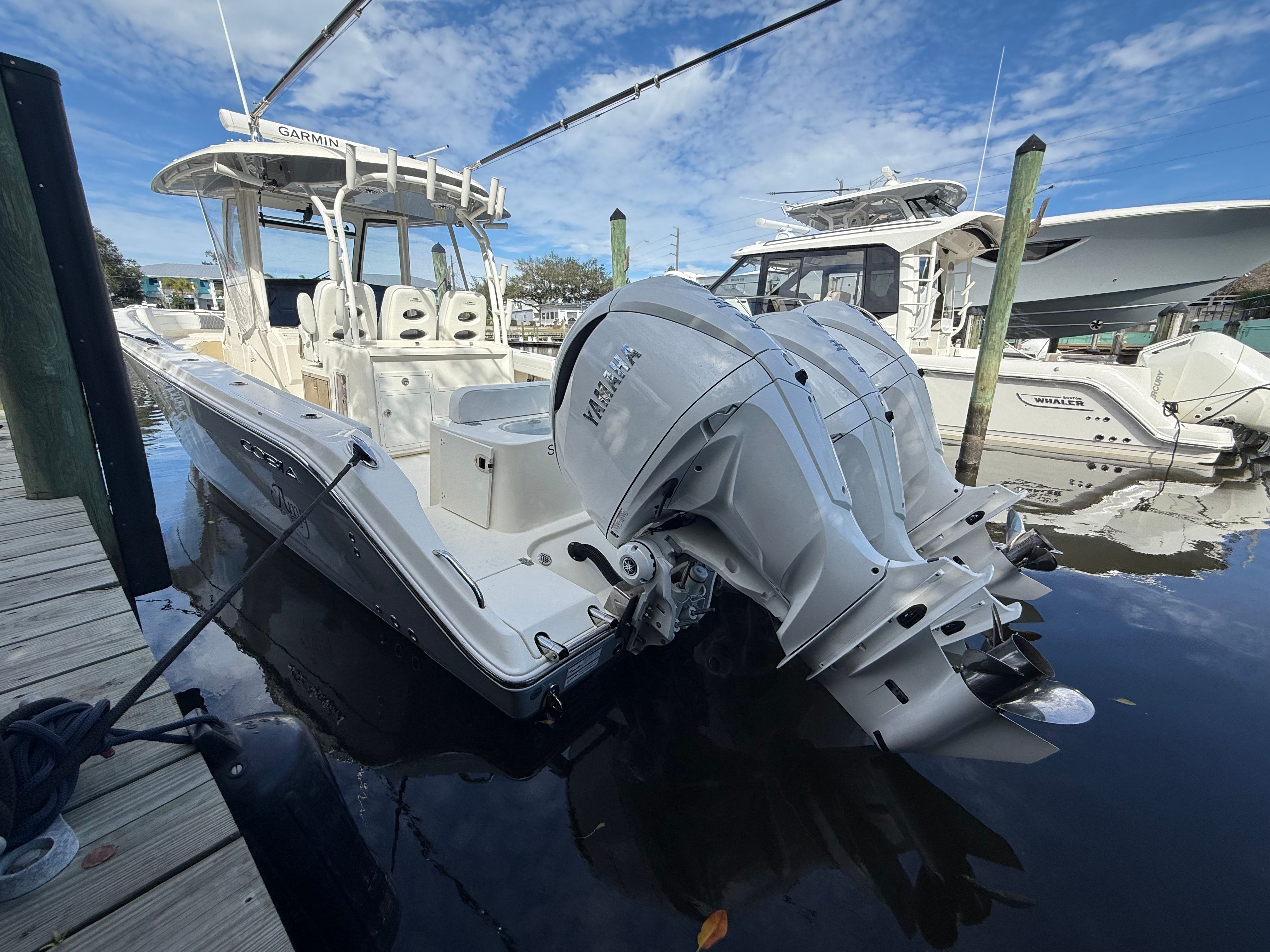 The Cobia 350 CC is as practical as it is enjoyable. Its thoughtful design includes features that make ownership and operation straightforward and stress-free. The Center Console layout not only enhances visibility and maneuverability but also simplifies docking and anchoring, making it easier to handle in various situations. The efficient triple-engine configuration provides both power and fuel efficiency, allowing you to cover more water without frequent stops for refueling.Storage solutions are integrated throughout the boat, ensuring that everything from fishing tackle to water toys has its place. The durable construction and quality materials mean that maintenance is minimal, so you can spend more time enjoying your boat and less time worrying about upkeep. Whether you are trailering the boat to new locations or keeping it at your favorite marina, the Cobia 350 CC is designed for convenience and ease of use.