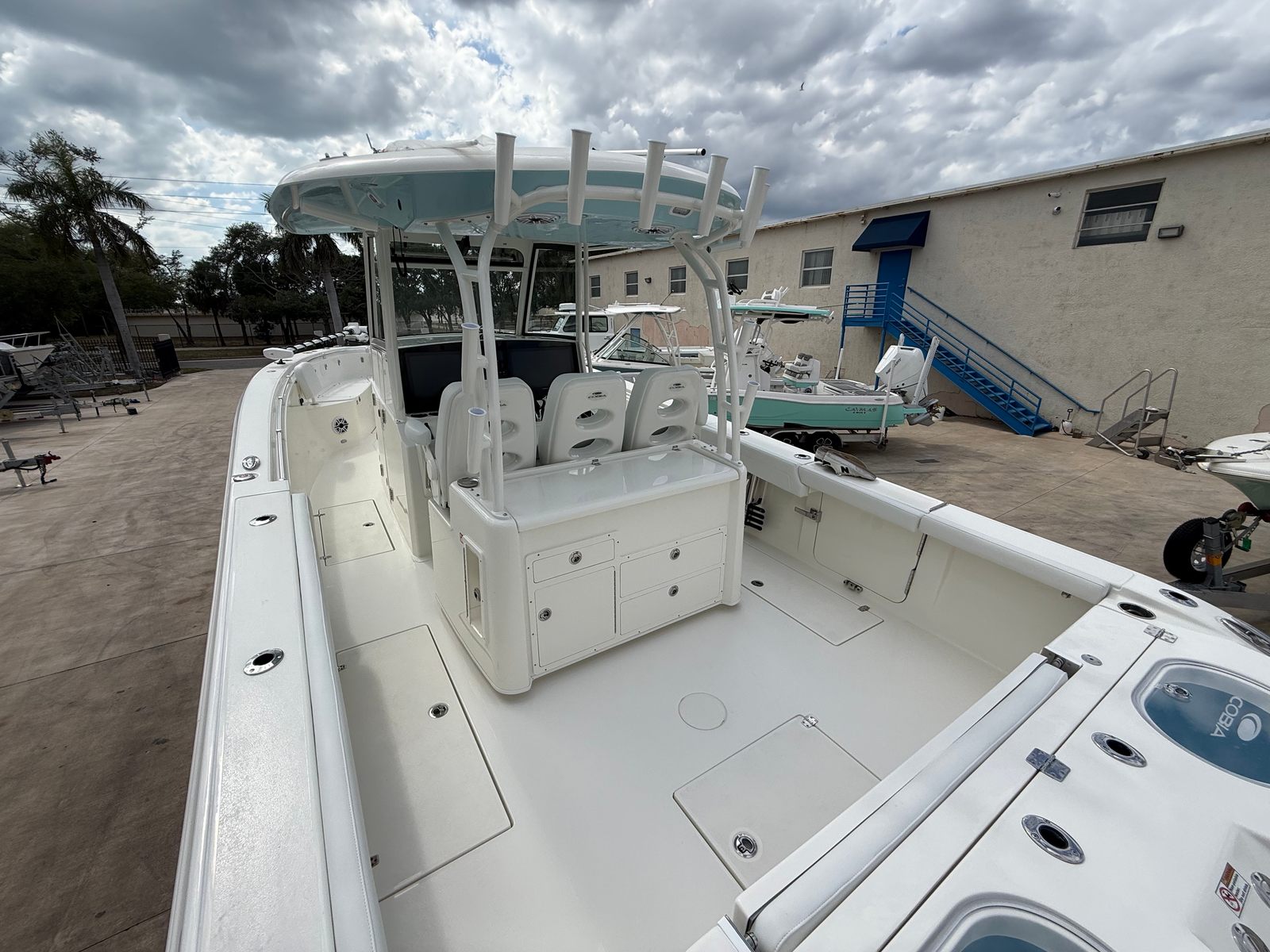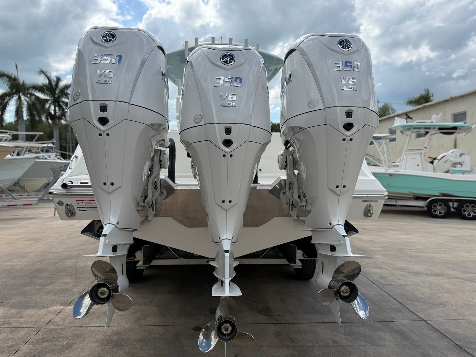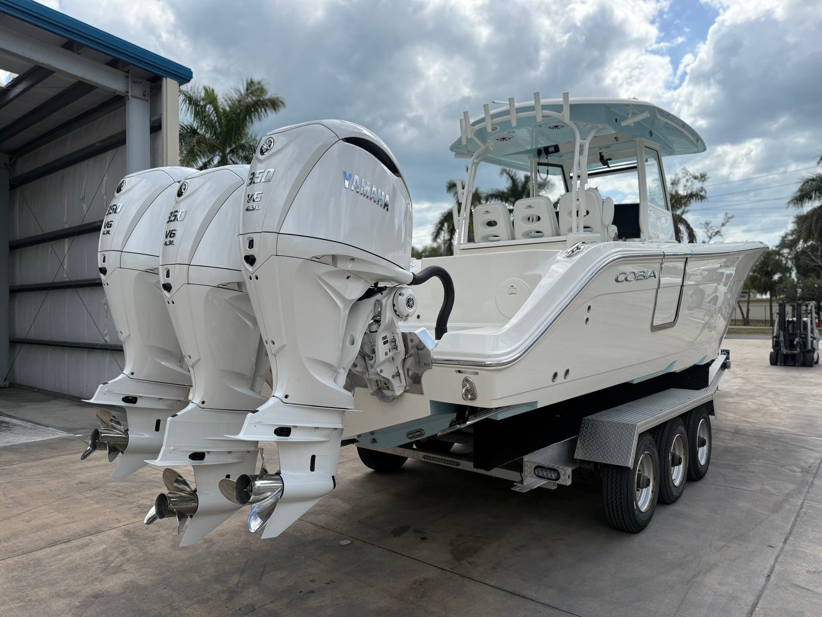 The 2026 Cobia 350 CC is a center console boat for sale that combines power, innovation, and luxury in one exceptional package. With triple engines delivering 1,050 horsepower, advanced features like Helm Master EX with Digital Electric Steering, joystick control, auto pilot, GEM stainless steel trim tabs, and a premium JL Audio sound system, this Cobia boat for sale is designed to elevate your boating experience to new heights. The stylish faux teak decking, hardtop with integrated frame and glass windshield, and thoughtful amenities like the fresh water flush for the electric head ensure that every detail is crafted for your enjoyment and convenience.If you are searching for a new center console boat that offers unmatched performance, comfort, and versatility, the Cobia 350 CC is the ultimate choice. Experience the thrill and luxury of this remarkable vessel—contact your dealer today for more information and to schedule a viewing. Your next adventure awaits with the Cobia 350 CC.