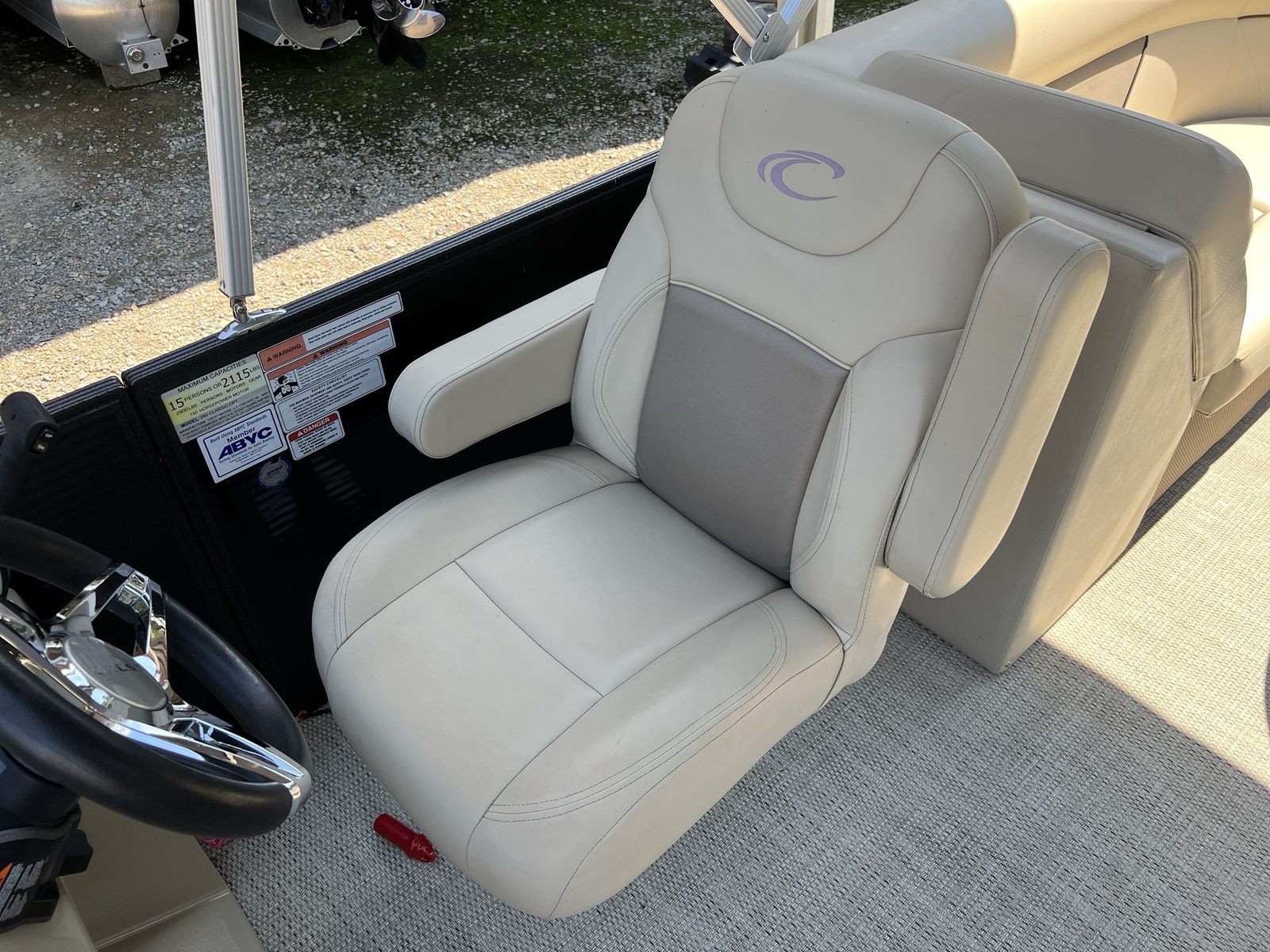 The Crest Classic 240 LX is packed with features designed to enhance your time on the water. Its spacious deck layout offers plenty of seating for family and friends, while the high-quality construction ensures durability and longevity. The pontoon’s design emphasizes comfort, with plush seating and ample legroom throughout. The 24-foot length allows for a generous amount of space, making it easy to move around and enjoy every moment on board.As a used pontoon boat for sale, this Crest model has been crafted to deliver a premium boating experience. The sturdy pontoons provide stability and a smooth ride, even in choppier conditions. The helm is thoughtfully arranged for easy navigation and control, while the open deck plan encourages socializing and relaxation. With its sleek lines and modern aesthetic, the Classic 240 LX is sure to turn heads wherever you go.