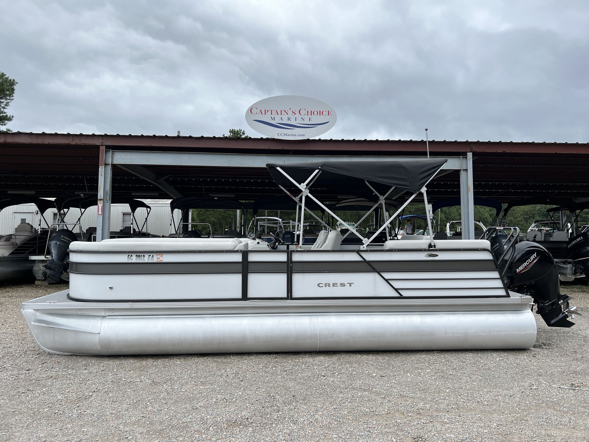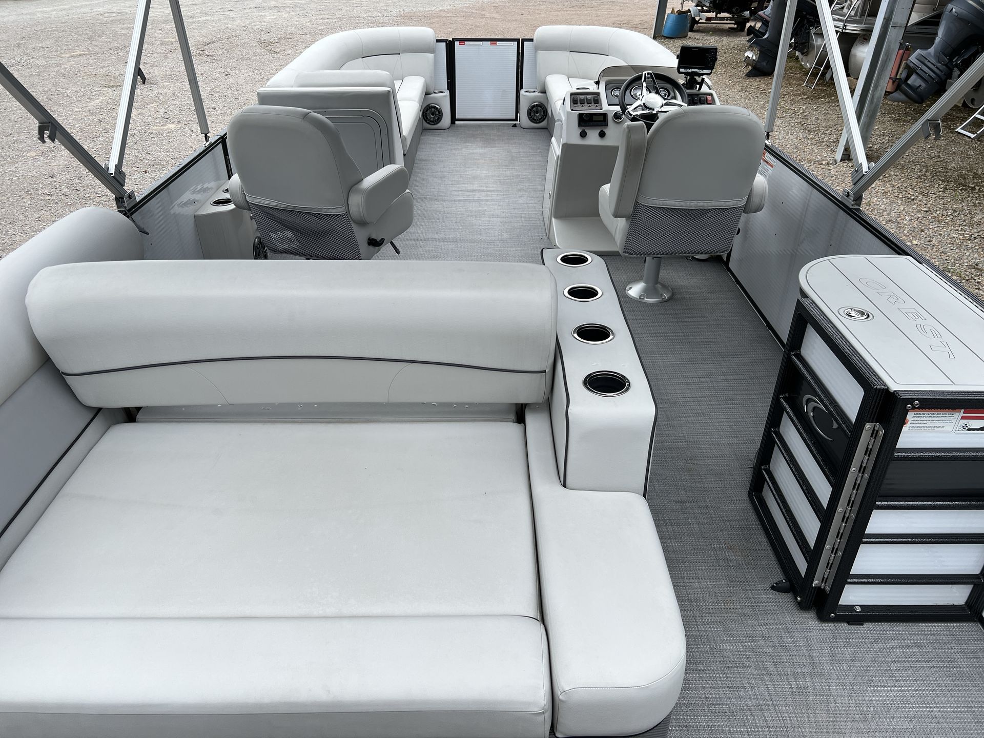 The 2022 Crest Classic 240 LX is a 24-foot pontoon that stands out for its impressive design and spacious layout. As a used pontoon boat, it offers the reliability and quality that Crest is known for, while providing excellent value for buyers seeking a premium boating experience. With its sleek lines and modern aesthetic, this Crest boat for sale is sure to turn heads at any marina or lake.