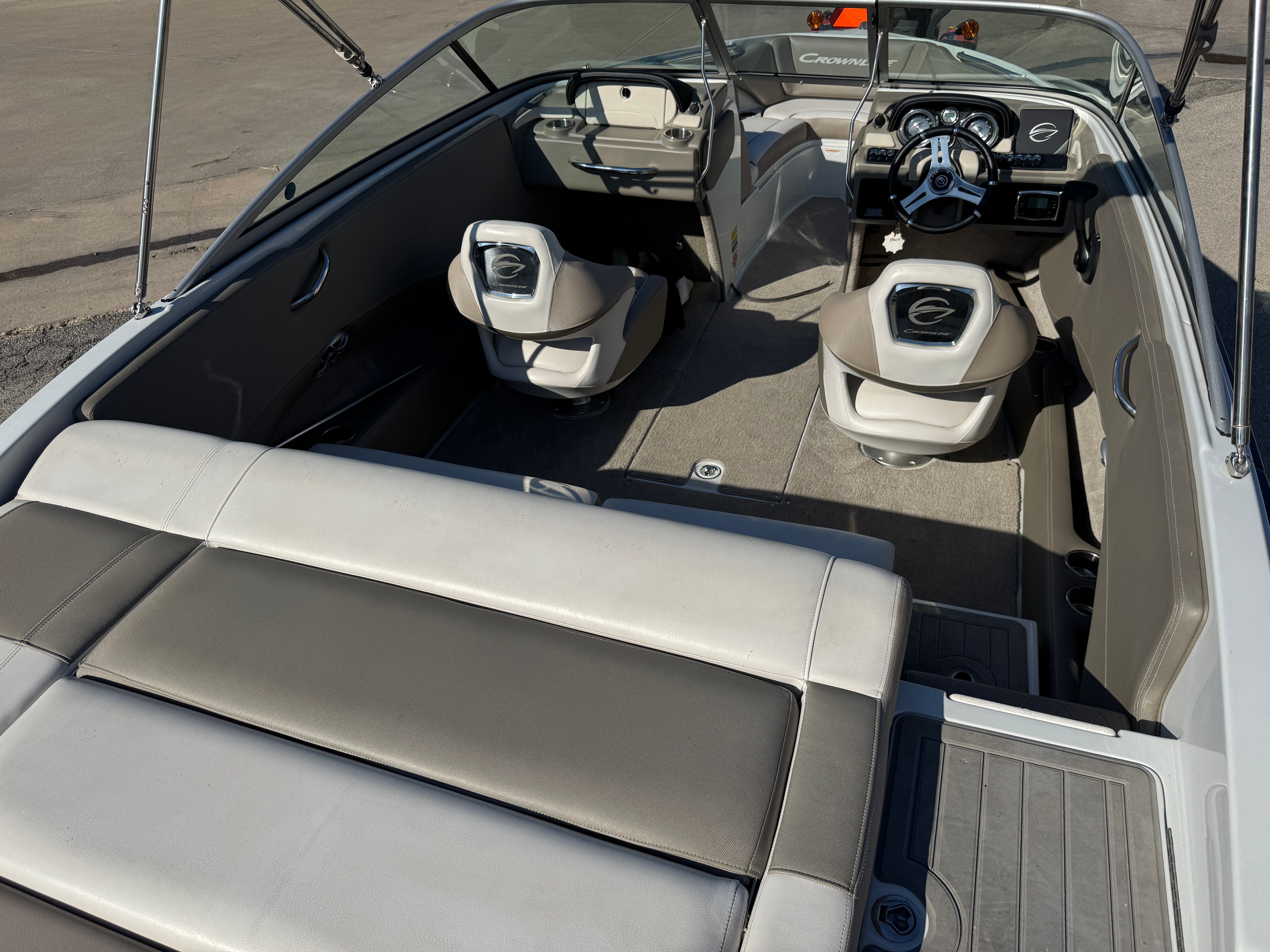 At the heart of this Crownline boat for sale is a powerful single engine delivering an impressive 250 horsepower. With only 50 engine hours, this used bowrider is ready to provide many more seasons of reliable performance. The robust engine ensures quick acceleration, smooth cruising, and the ability to tow water toys or skiers with ease. Whether you are gliding across calm waters or powering through choppy waves, the Crownline 215 SS offers a responsive and exhilarating ride. The efficient powertrain also contributes to better fuel economy, allowing you to spend more time enjoying the water and less time refueling.