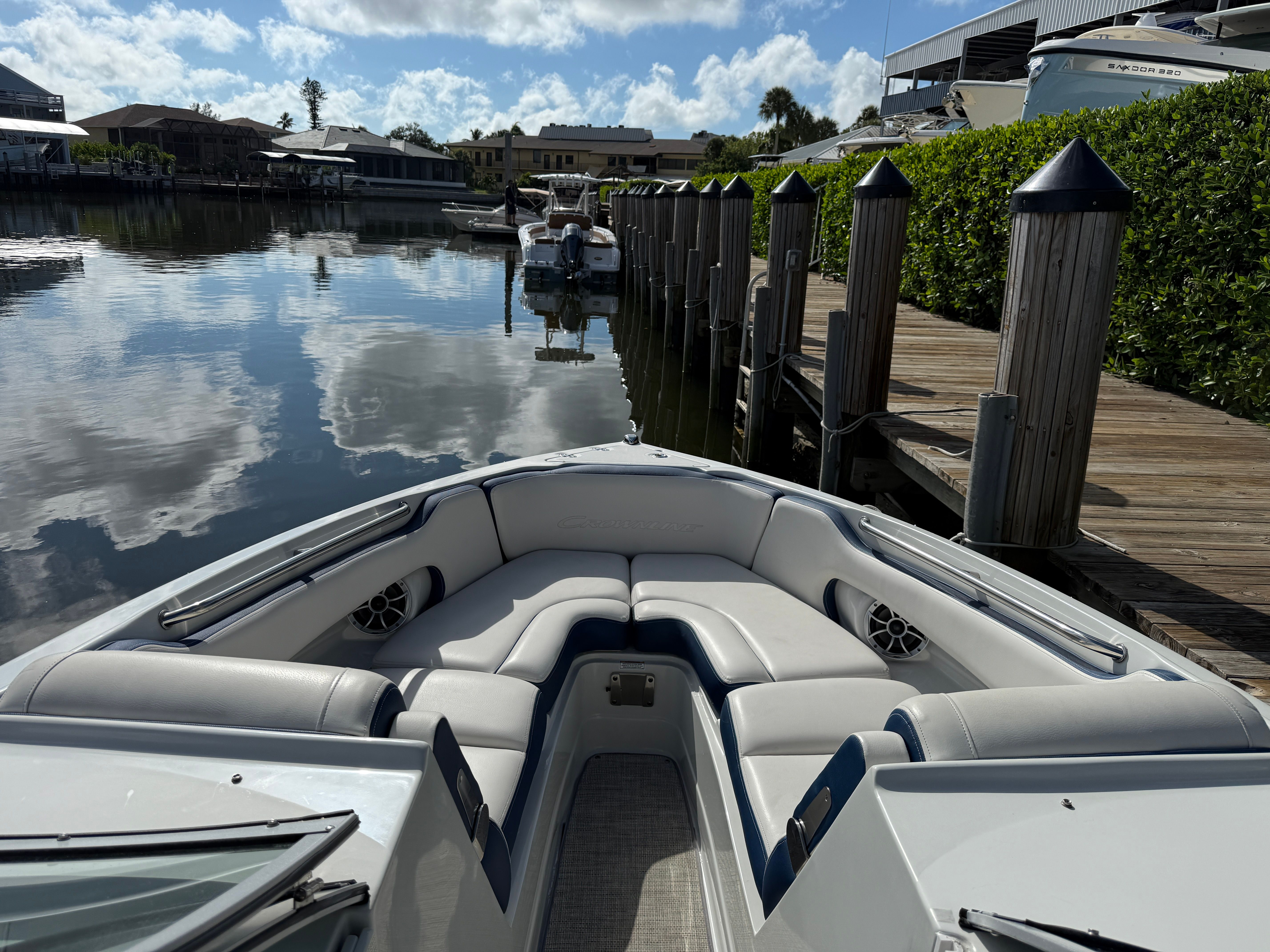 Overview: The 2023 Crownline 260 XSS Bowrider is a striking 26-foot vessel designed for those who appreciate both luxury and functionality. With its sleek lines and modern profile, this boat turns heads at the marina and on the open water. The spacious layout ensures ample room for passengers to relax, socialize, and enjoy every moment on board. As a consigned boat in excellent condition, the 260 XSS offers the advantage of a well-maintained, low-hour engine, making it an attractive choice for buyers looking for reliability and value.