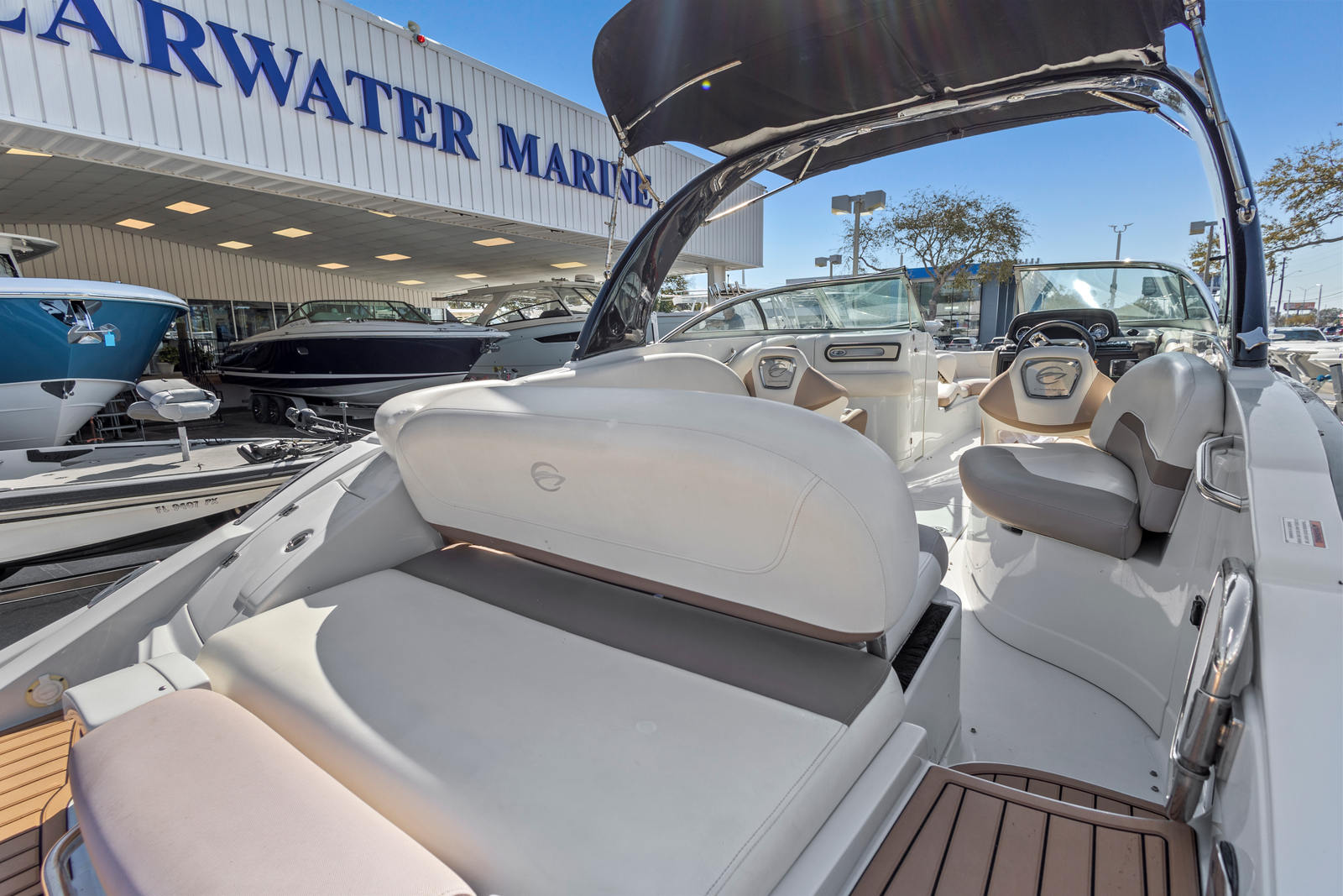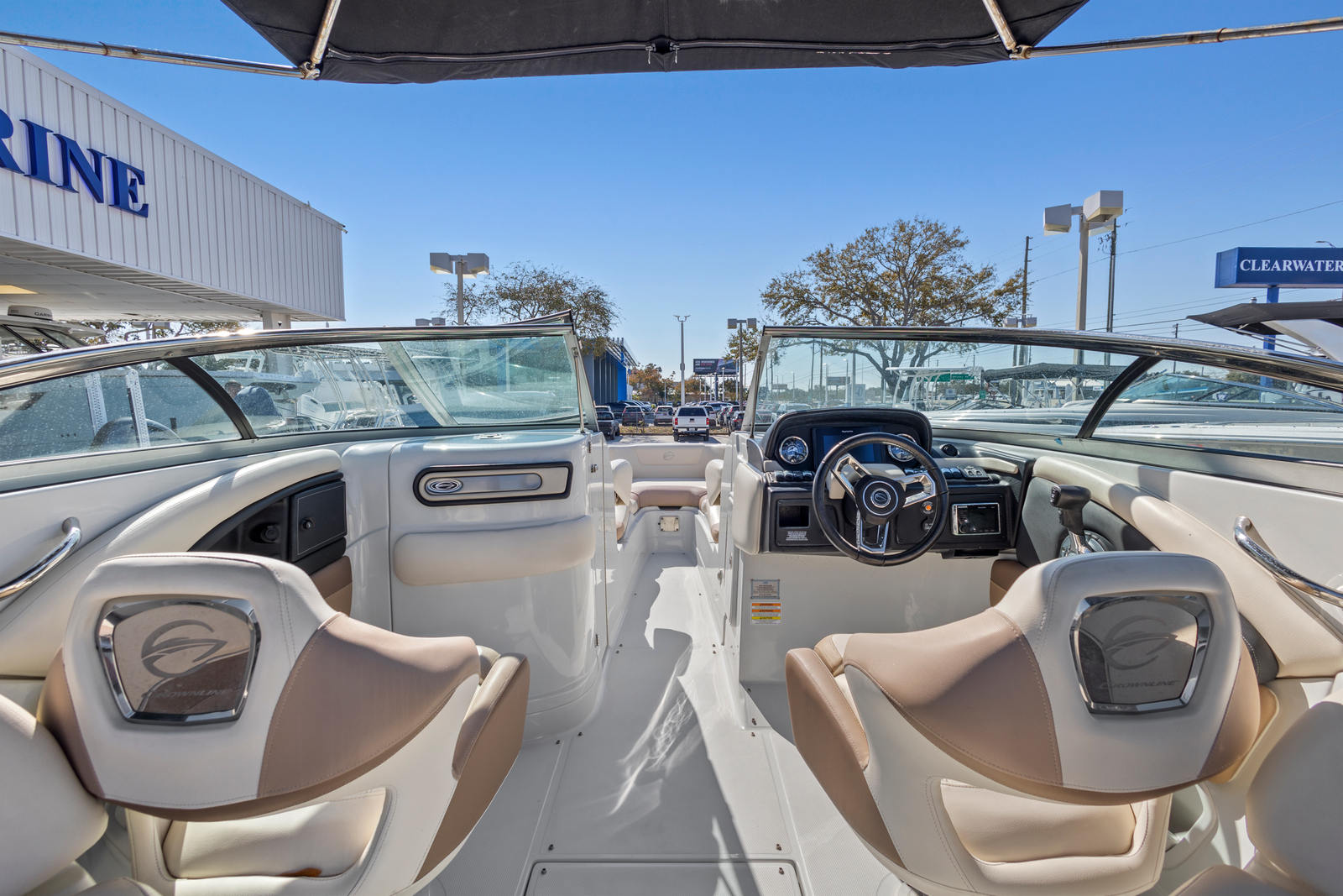 The Crownline 275 SS Bowrider is packed with features that enhance your time on the water. Its spacious bow seating invites guests to relax and soak up the sun, while the open cockpit layout encourages socializing and fun. The ergonomic helm station puts you in command, offering clear sightlines and intuitive controls for stress-free navigation. The boat’s generous length provides plenty of room for lounging, dining, or stretching out after a swim. Storage compartments are thoughtfully integrated throughout, keeping gear organized and out of the way. The single engine setup simplifies maintenance and maximizes fuel efficiency, making this bowrider boat for sale both practical and enjoyable.