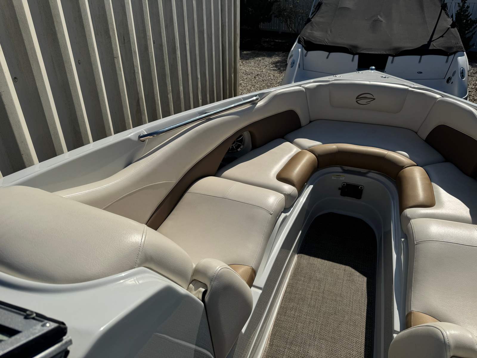 The Crownline 285 SS is thoughtfully designed to maximize comfort, convenience, and enjoyment for everyone on board. Its spacious bowrider layout offers generous seating in both the bow and cockpit areas, allowing guests to relax, socialize, or soak up the sun. The ergonomically designed helm ensures that the captain has easy access to all controls, providing a confident and enjoyable driving experience.This model’s 28.5-foot length translates into ample deck space, making it easy to move around and find your perfect spot to unwind. The high-quality upholstery, stylish accents, and attention to detail throughout the boat create an inviting atmosphere that’s perfect for entertaining. With plenty of storage compartments cleverly integrated into the design, you can keep your gear organized and out of the way, ensuring a clutter-free environment for all your adventures.