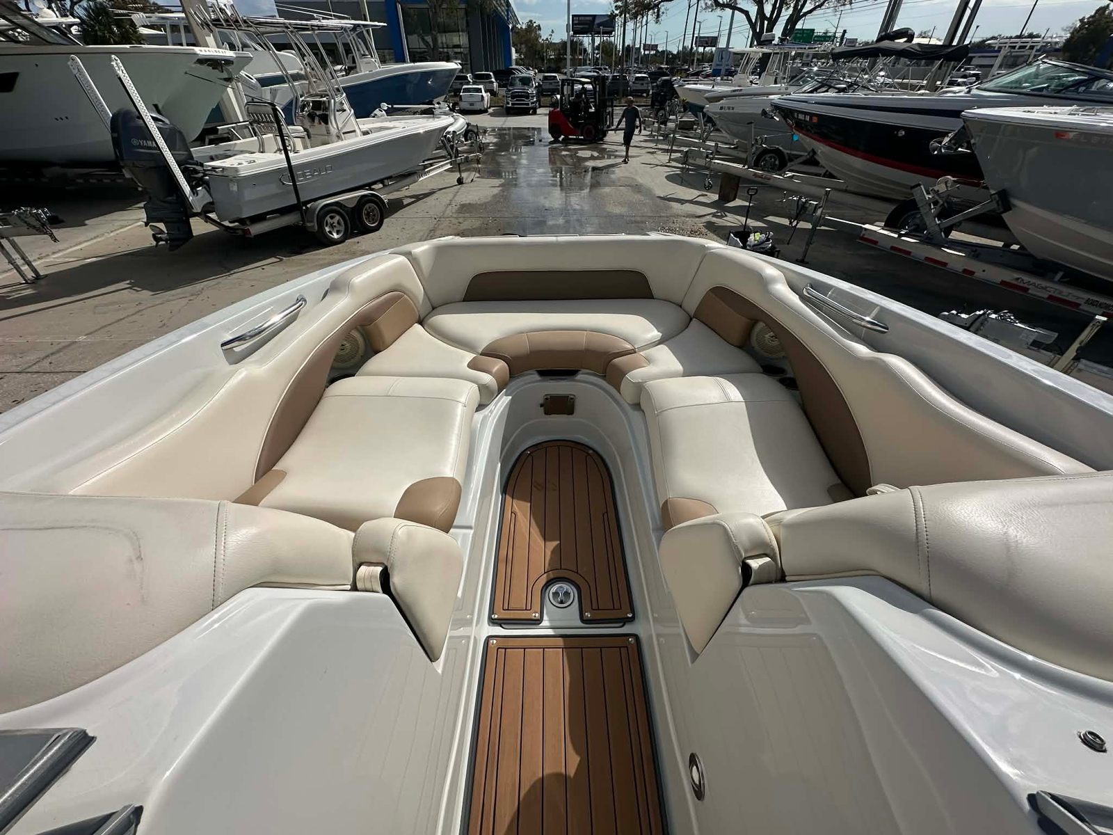 At the heart of the Crownline E6XS is a powerful single engine delivering an impressive 300 horsepower. This robust engine ensures that you have all the power you need for exhilarating rides, quick acceleration, and smooth cruising. Whether you are heading out for a day of water sports or simply enjoying a leisurely cruise, the E6XS offers responsive handling and reliable performance. The 300 horsepower engine is engineered for efficiency, providing an optimal blend of speed and fuel economy, so you can spend more time enjoying the water and less time at the fuel dock.