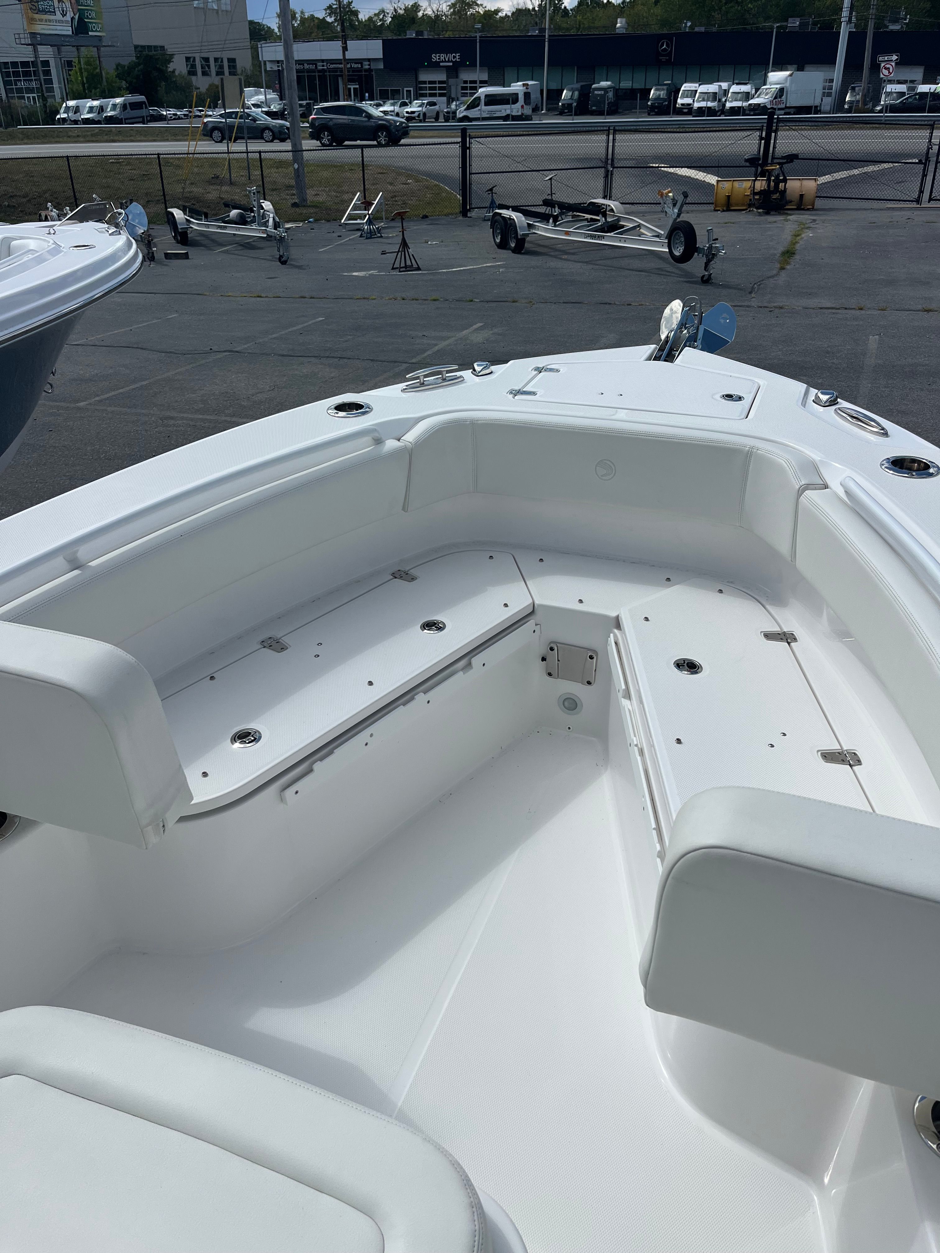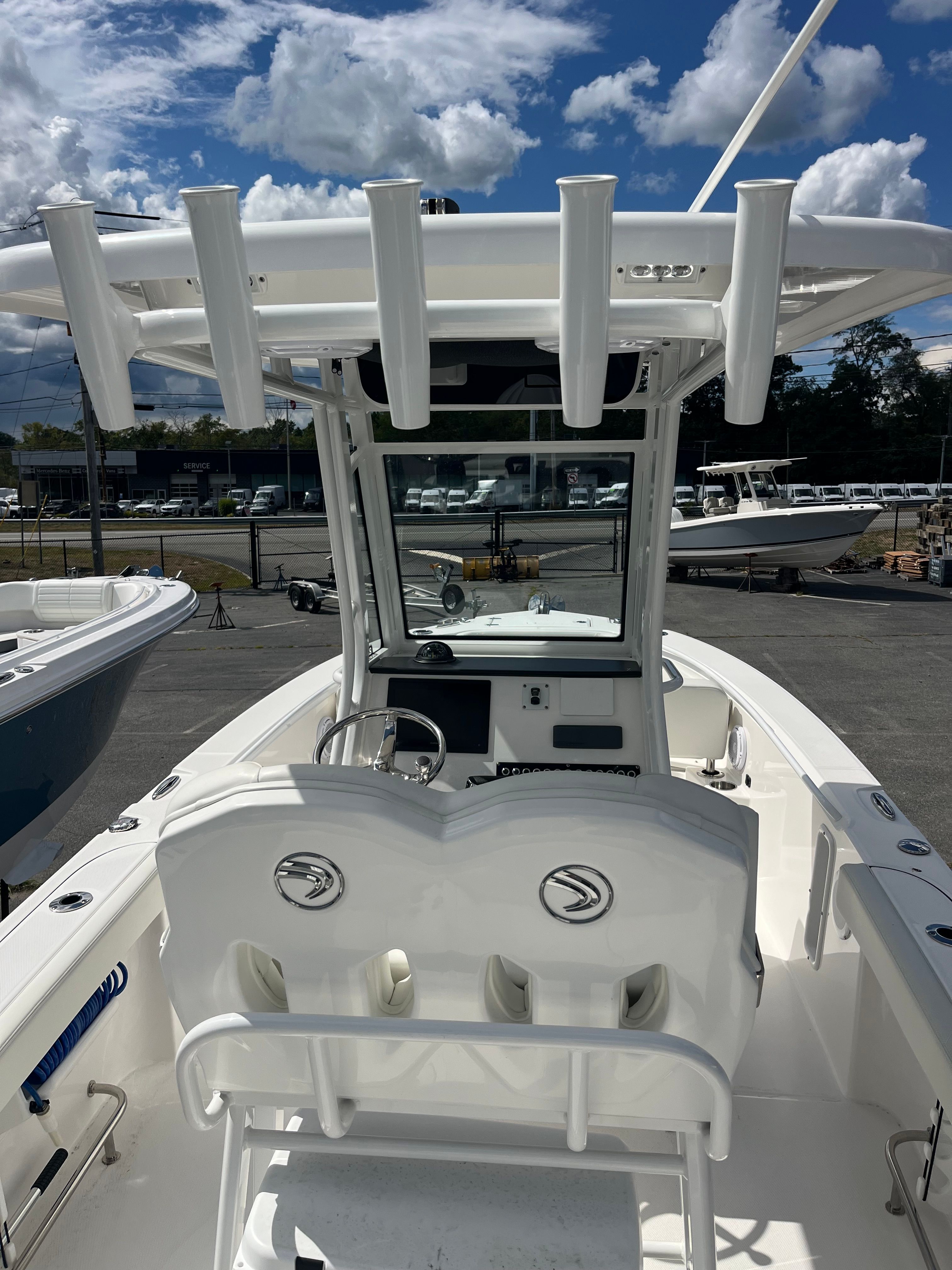 The 2023 Edgewater 230 CC is a used center console boat that measures an impressive 24.5 feet in length, offering ample space for passengers and gear. With its sleek lines and modern design, this boat is as visually striking as it is functional. The Edgewater 230 CC is renowned for its durability and stability, providing a safe and comfortable ride in a variety of water conditions. With only 17 engine hours, this boat is in excellent condition, offering the benefits of a nearly new vessel at a used boat price. Its thoughtful layout and high-quality construction make it a standout option for anyone searching for a center console boat for sale.