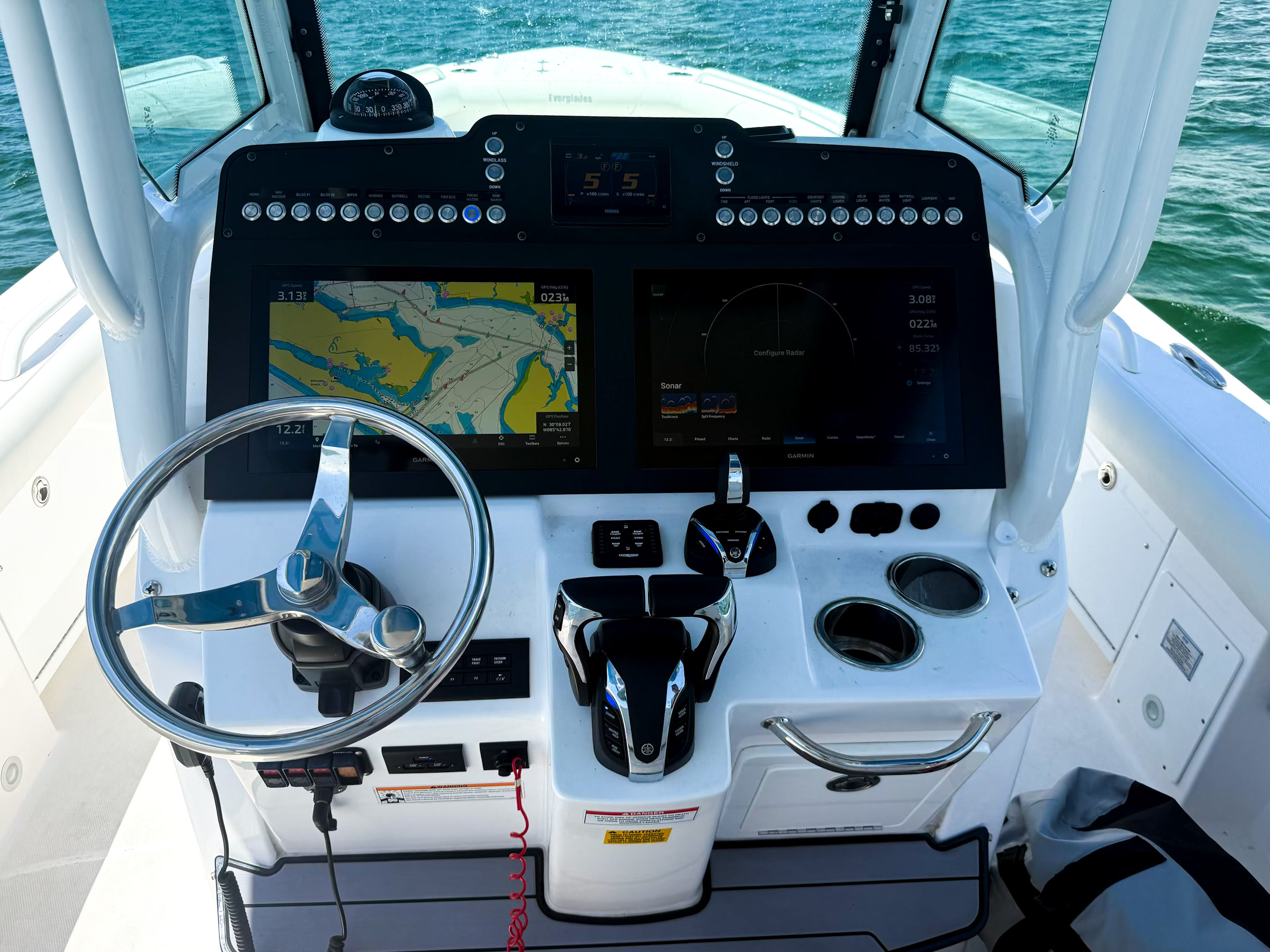 Powering the 2023 Everglades 273 CC are twin engines delivering a combined 600 horsepower. With only 6 hours on the engines, you can expect peak performance and longevity. The dual-engine setup ensures robust acceleration, smooth cruising, and impressive top speeds, making it ideal for offshore runs, quick trips to your favorite fishing spot, or leisurely cruises along the coast. The responsive handling and stability of the Everglades 273 CC make it a joy to captain, even in challenging conditions. Whether you are chasing the next big catch or enjoying a sunset cruise, this Center Console boat for sale delivers a thrilling and confident ride.