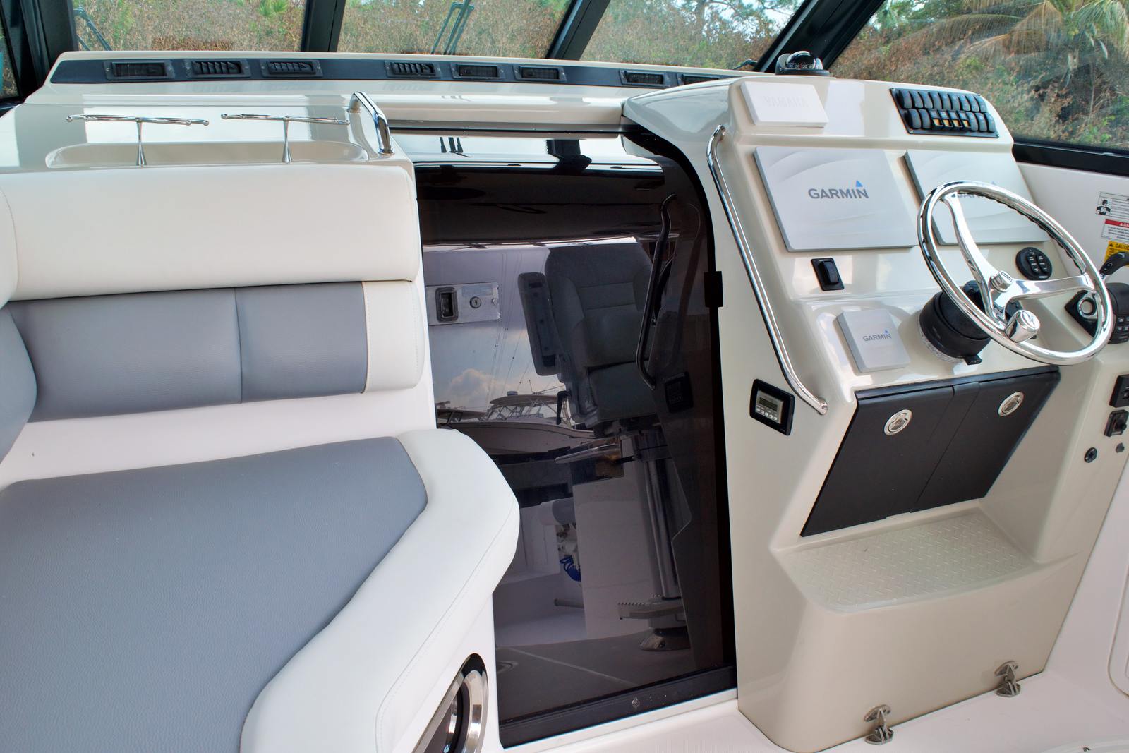 The Everglades 320 EX is loaded with features that enhance both its fishing capabilities and onboard comfort. As an offshore boat for sale, it’s designed to meet the needs of serious anglers while also catering to those who appreciate luxury and convenience. The spacious cockpit provides plenty of room for casting lines and reeling in the catch of the day, while the well-designed helm offers excellent visibility and intuitive controls for stress-free navigation. The 32-foot length ensures generous deck space, making it easy to move around and enjoy all the amenities this Everglades boat for sale has to offer.