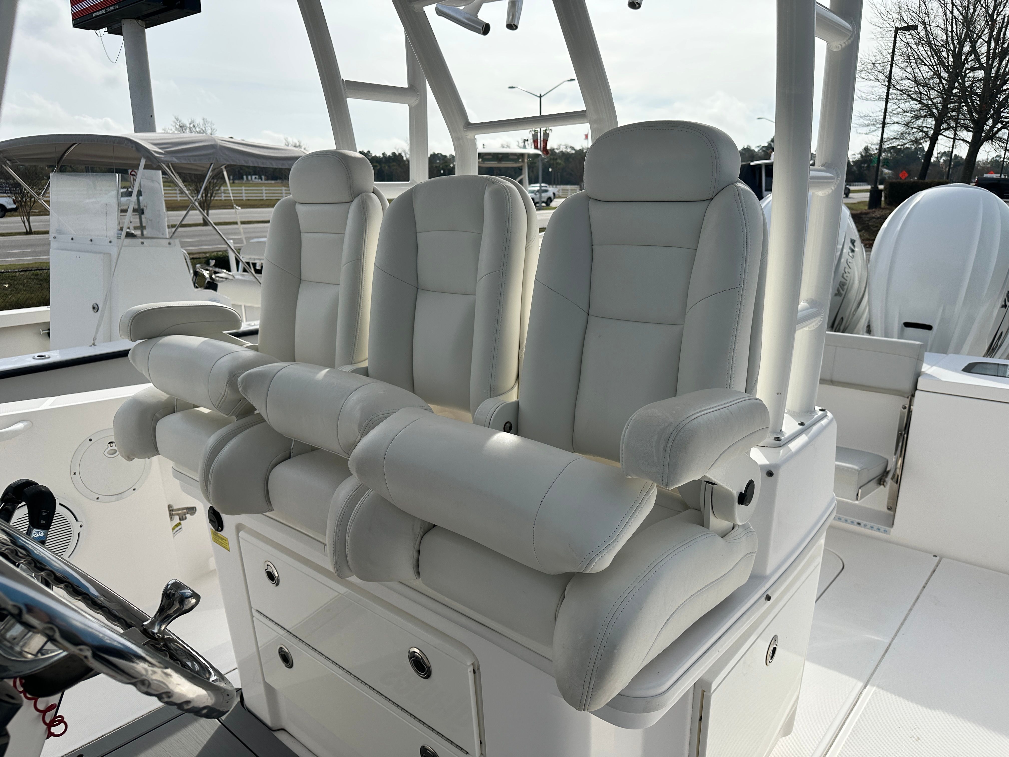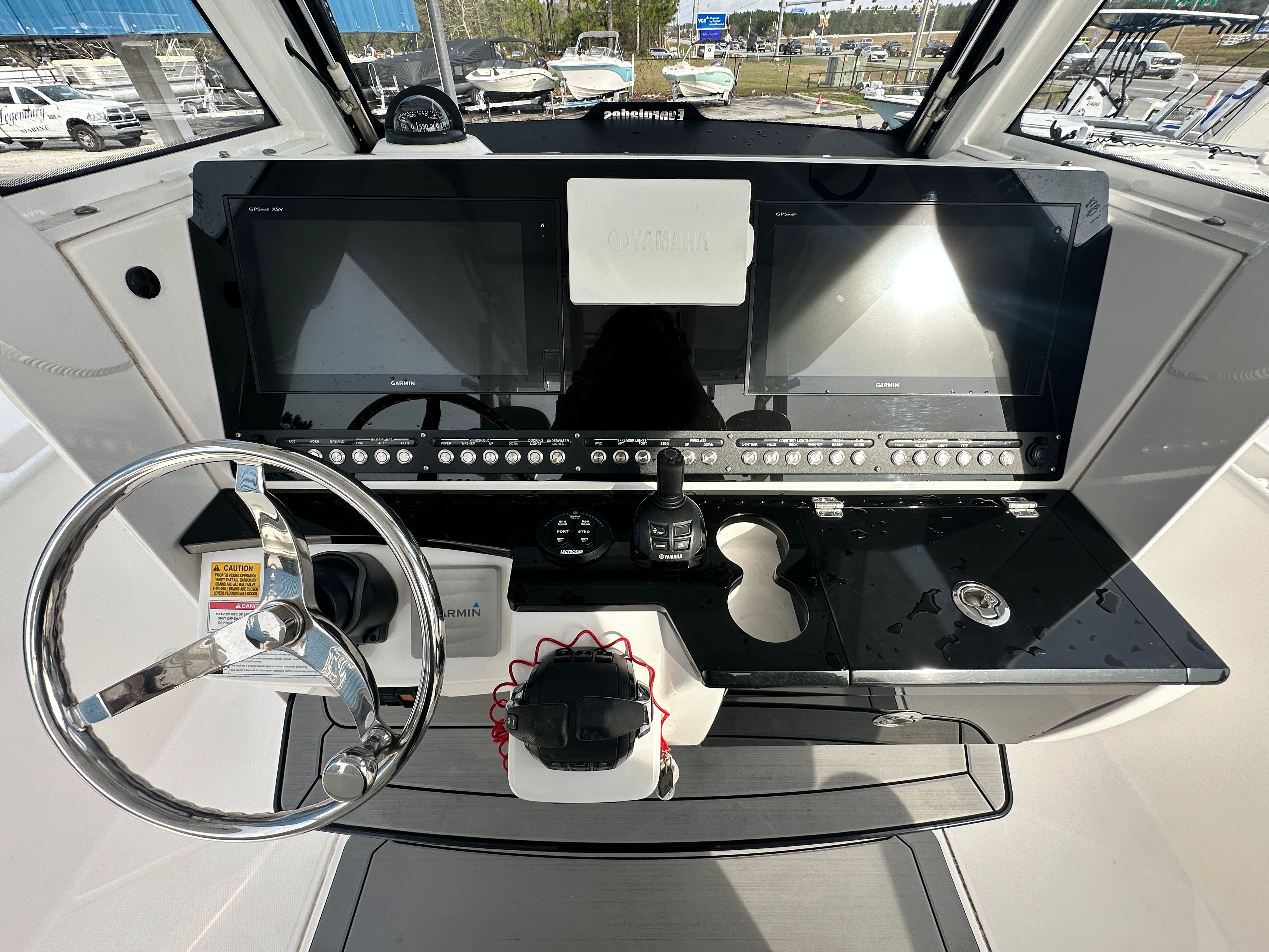When it comes to performance, the Everglades 335 CC truly excels. Powered by a formidable 850 horsepower engine, this Center Console boat is engineered for exhilarating speed and smooth handling. Whether you are cruising along the coastline, heading offshore for a day of fishing, or simply enjoying a leisurely ride, the 335 CC responds with impressive agility and power. The robust engine ensures you have the thrust needed to tackle a variety of conditions, while the advanced hull design provides stability and confidence at any speed. For those who crave excitement and reliability, this Everglades boat for sale delivers a performance that is second to none.