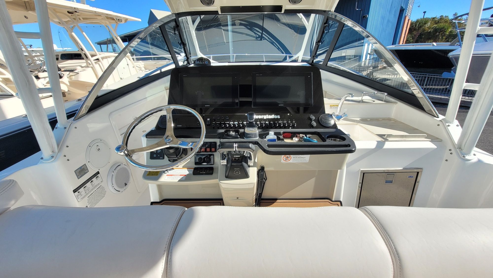 The Everglades 360 LXC is packed with features that enhance both functionality and comfort. Its 36-foot length provides ample space for entertaining, relaxing, and enjoying the water with friends and family. The walkaround design allows for easy movement around the deck, making it ideal for fishing, sunbathing, or simply taking in the views from every angle. The spacious cockpit and well-appointed helm station are designed with the captain in mind, offering intuitive controls and excellent visibility for safe and enjoyable navigation.This model is renowned for its innovative layout, which maximizes both indoor and outdoor living spaces. The cabin offers a retreat from the elements, with comfortable seating and thoughtful storage solutions for all your gear. The deck is designed for versatility, whether you are casting lines, hosting a sunset dinner, or lounging in the sun. Every detail of the Everglades 360 LXC is crafted to enhance your time on the water, making it a standout choice among walkaround boats for sale.