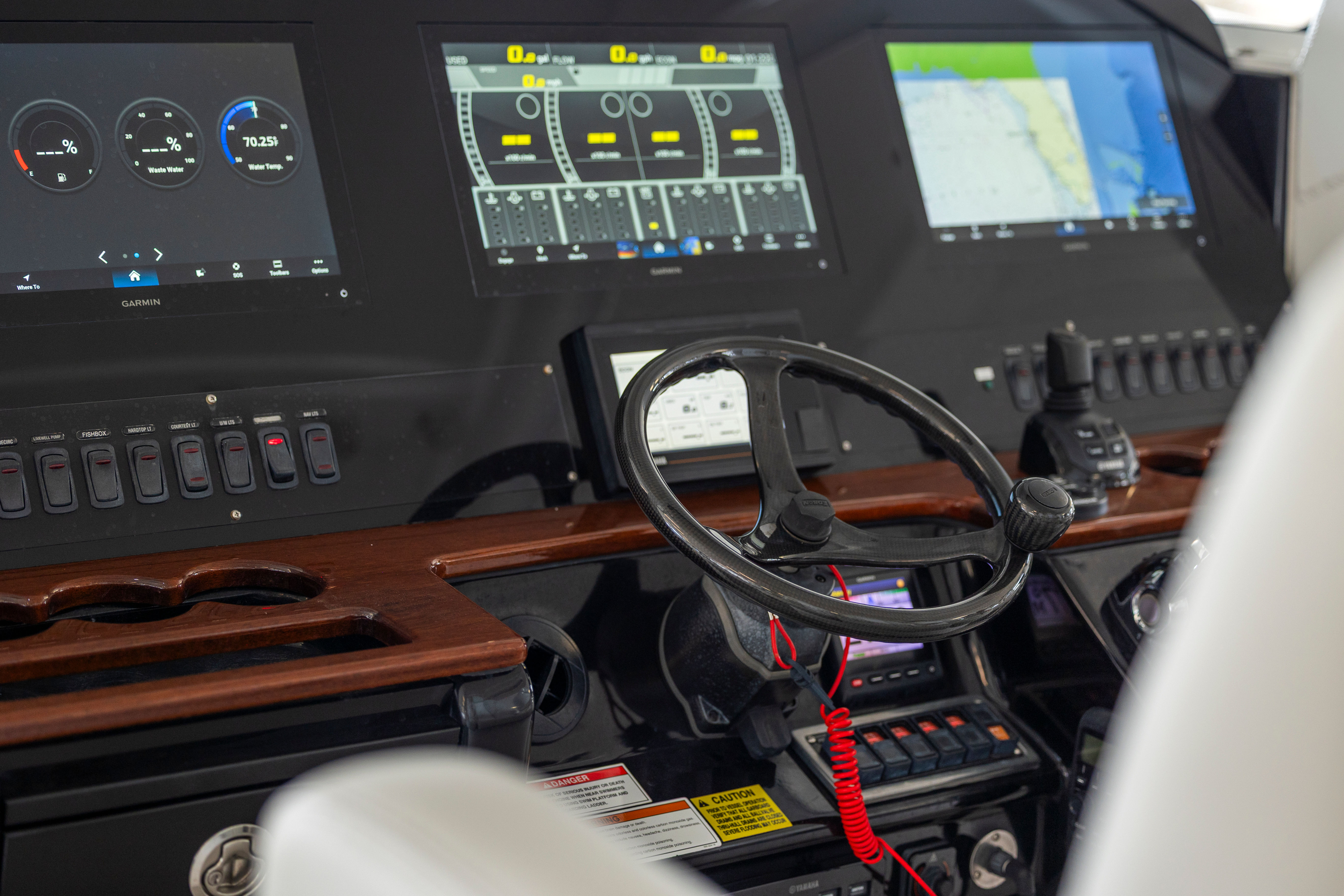 Power and performance are at the heart of the Everglades 435 CC. Equipped with four powerful engines delivering a combined 1,700 horsepower, this Center Console boat is engineered for speed, agility, and reliability. With only 465 engine hours, these engines have plenty of life left, ensuring you can enjoy countless adventures ahead. The quad-engine setup provides exceptional acceleration, smooth cruising, and the confidence to tackle offshore waters with ease. Whether you’re chasing the horizon or cruising along the coast, the 435 CC offers a thrilling ride that will satisfy even the most demanding boating enthusiasts.