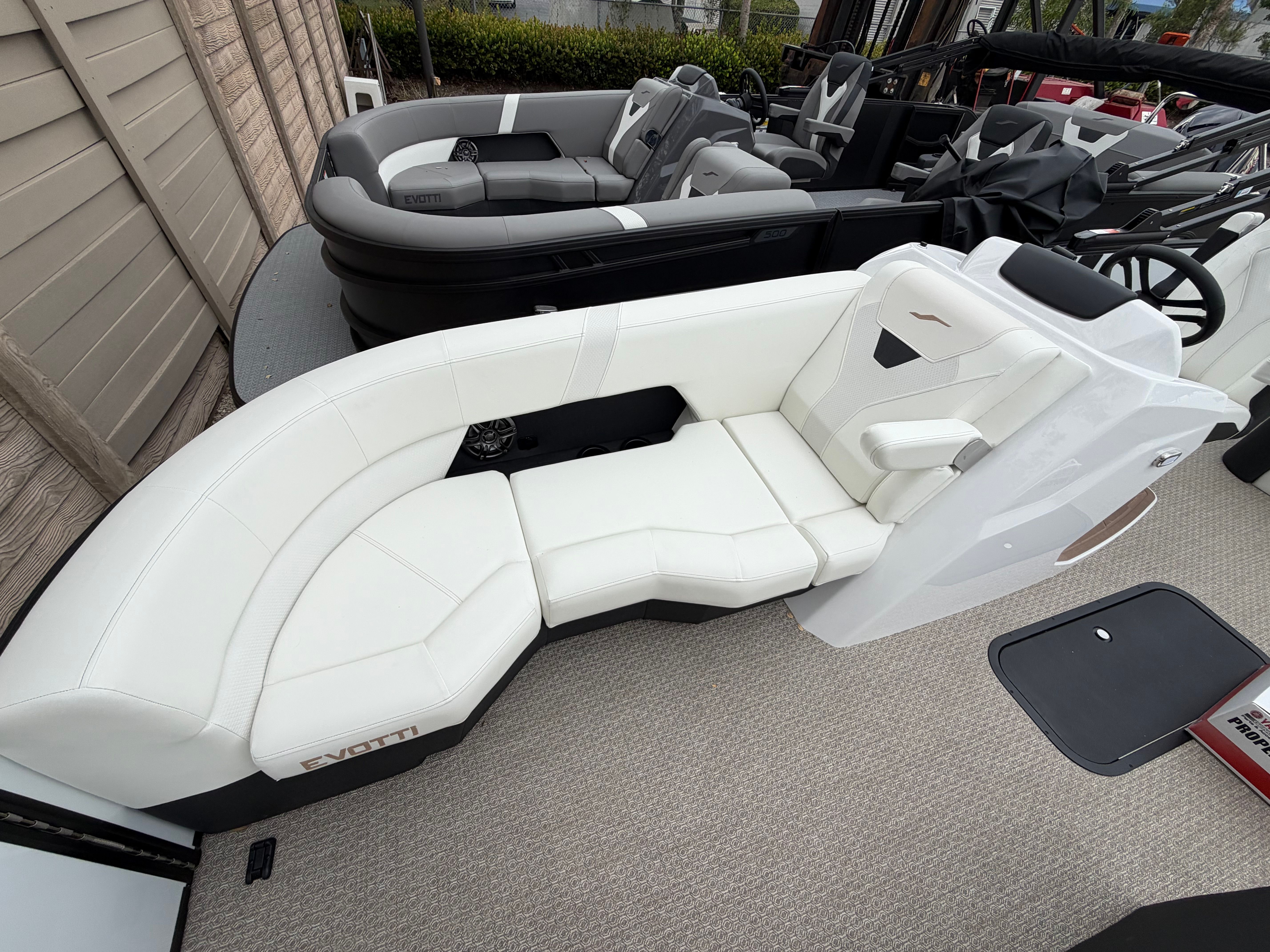 The 2026 Evotti 521 CS Pontoon is more than just a boat – it’s your gateway to a world of excitement, comfort, and connection. With its powerful Yamaha engine, luxurious finishes, and advanced features like the Garmin 5" Echo Map and Clarion head unit, this pontoon boat for sale sets a new standard for recreational boating. The elegant Panel Pearl White Gloss, Canvas Black accents, and Roan Bronze Evolution Flooring create a striking visual impression, while the spacious layout and premium seating ensure every outing is enjoyable.If you’re searching for an Evotti boat for sale that combines style, performance, and versatility, the 521 CS is the perfect choice. Experience the thrill of the open water, the joy of shared moments, and the ease of ownership with this exceptional pontoon. Don’t miss your chance to make the Evotti 521 CS the centerpiece of your boating adventures – contact your local dealer today to learn more and start your journey toward unforgettable memories on the water.
