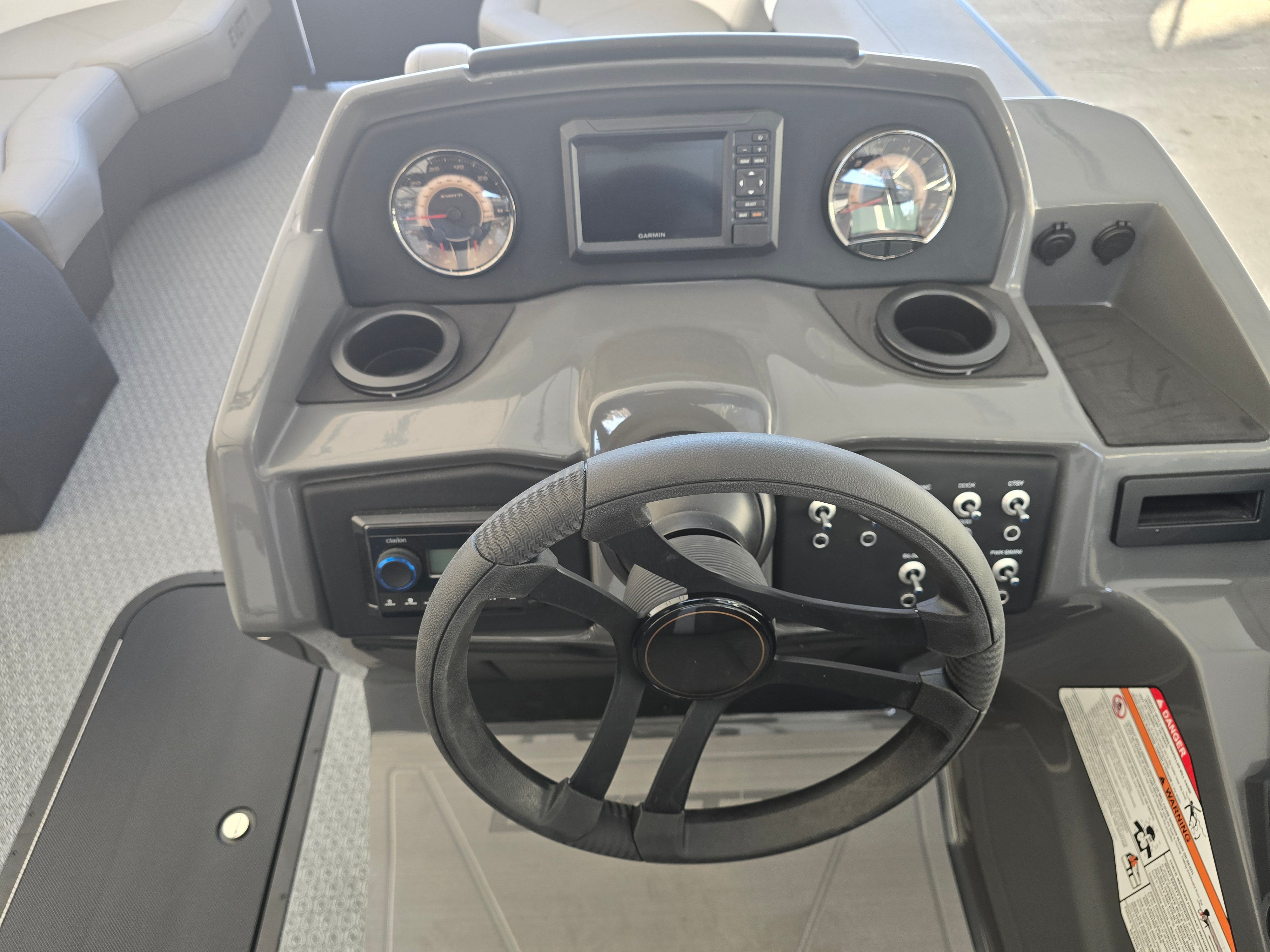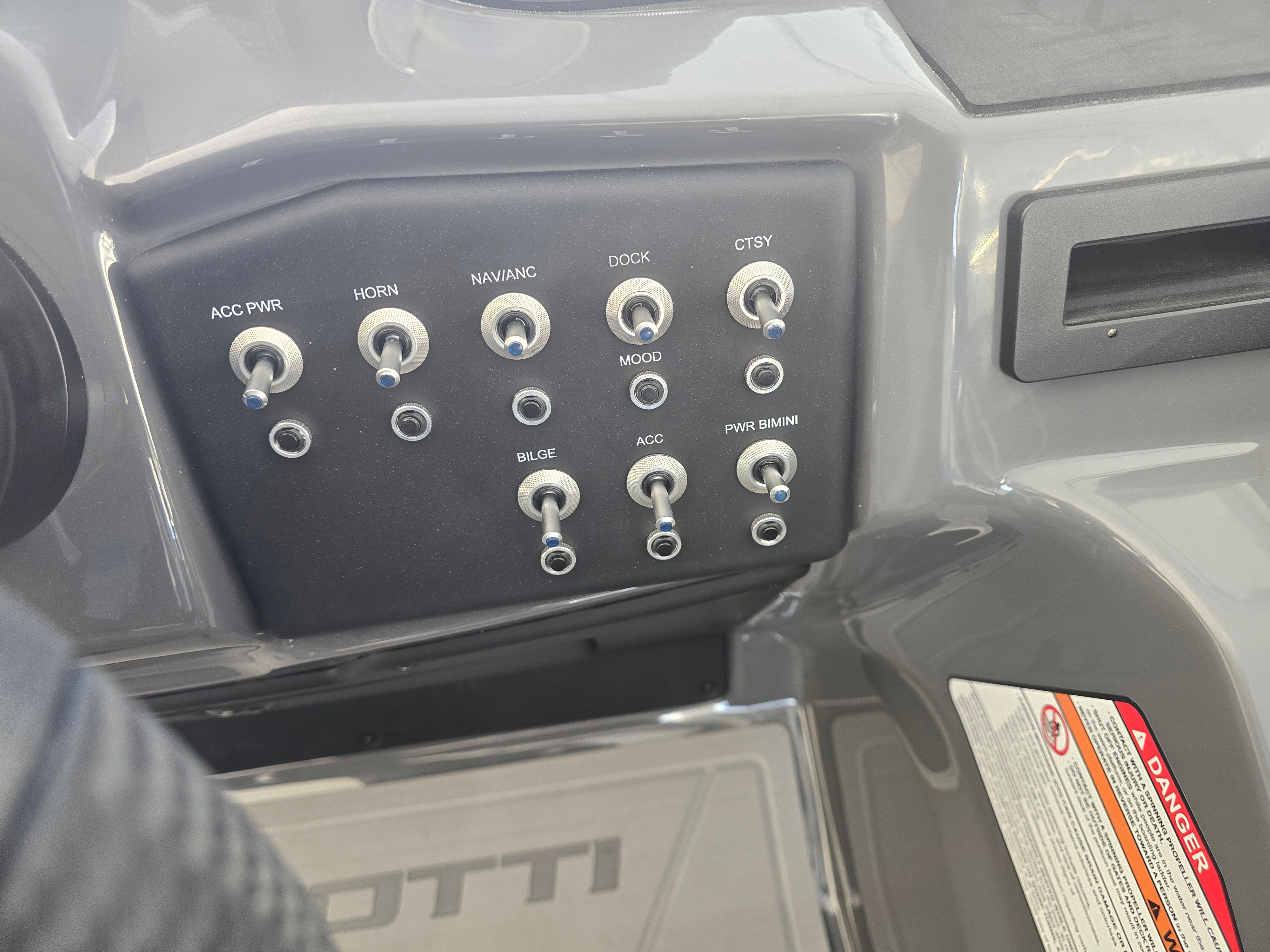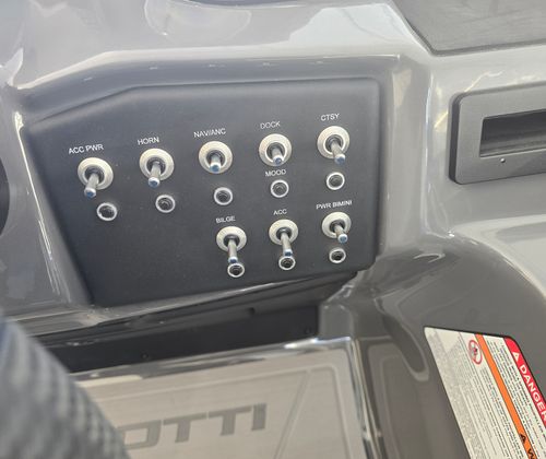 The 2026 Evotti 521 CS is loaded with premium features that enhance both aesthetics and functionality. The exterior boasts a sophisticated Panel Diamond Black Satin finish, complemented by a striking Panel Accent Pearl White Gloss that adds a touch of elegance and modern flair. The Canvas Black provides durable protection from the elements, ensuring your boat remains in top condition throughout the seasons.Step aboard and experience the comfort of the Base Vinyl Steel Gray upholstery, which offers a sleek, contemporary look while providing exceptional durability and easy maintenance. The Steel Gray Evolution Flooring not only adds to the boat’s visual appeal but also delivers a non-slip, comfortable surface that is perfect for barefoot relaxation or active days on the water.Safety is a top priority, and the inclusion of stern safety chains provides added peace of mind for you and your passengers. The battery dual system ensures reliable power for all your onboard electronics and accessories, so you can focus on enjoying your time on the water without worry.
