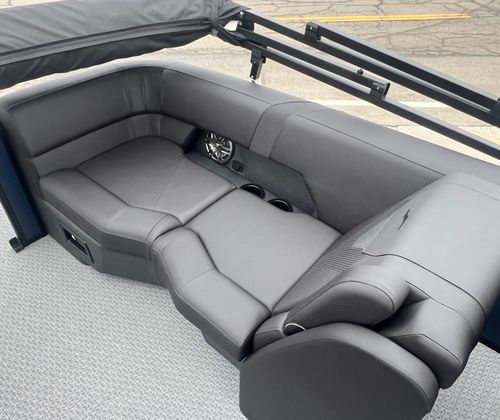 Step aboard the Evotti 521 QL and immerse yourself in a world of luxury and innovation. The Panel Platinum Blue Satin and Panel Accent Diamond Black Satin create a striking visual impression, while the Canvas Black provides both style and protection from the elements. The Base Vinyl Spectra Black upholstery is not only visually appealing but also designed for durability and comfort, ensuring your seating remains pristine season after season.The Steel Gray Evolution Flooring adds a touch of sophistication and is engineered for easy cleaning and long-lasting wear, making it ideal for active families and social gatherings. The dual battery system ensures you have reliable power for all your onboard electronics and accessories, while the Garmin 5" Echo Map with 5" gauges offers advanced navigation and real-time data at your fingertips. Every detail of the Evotti 521 QL is crafted to enhance your boating experience, from the premium finishes to the state-of-the-art technology.