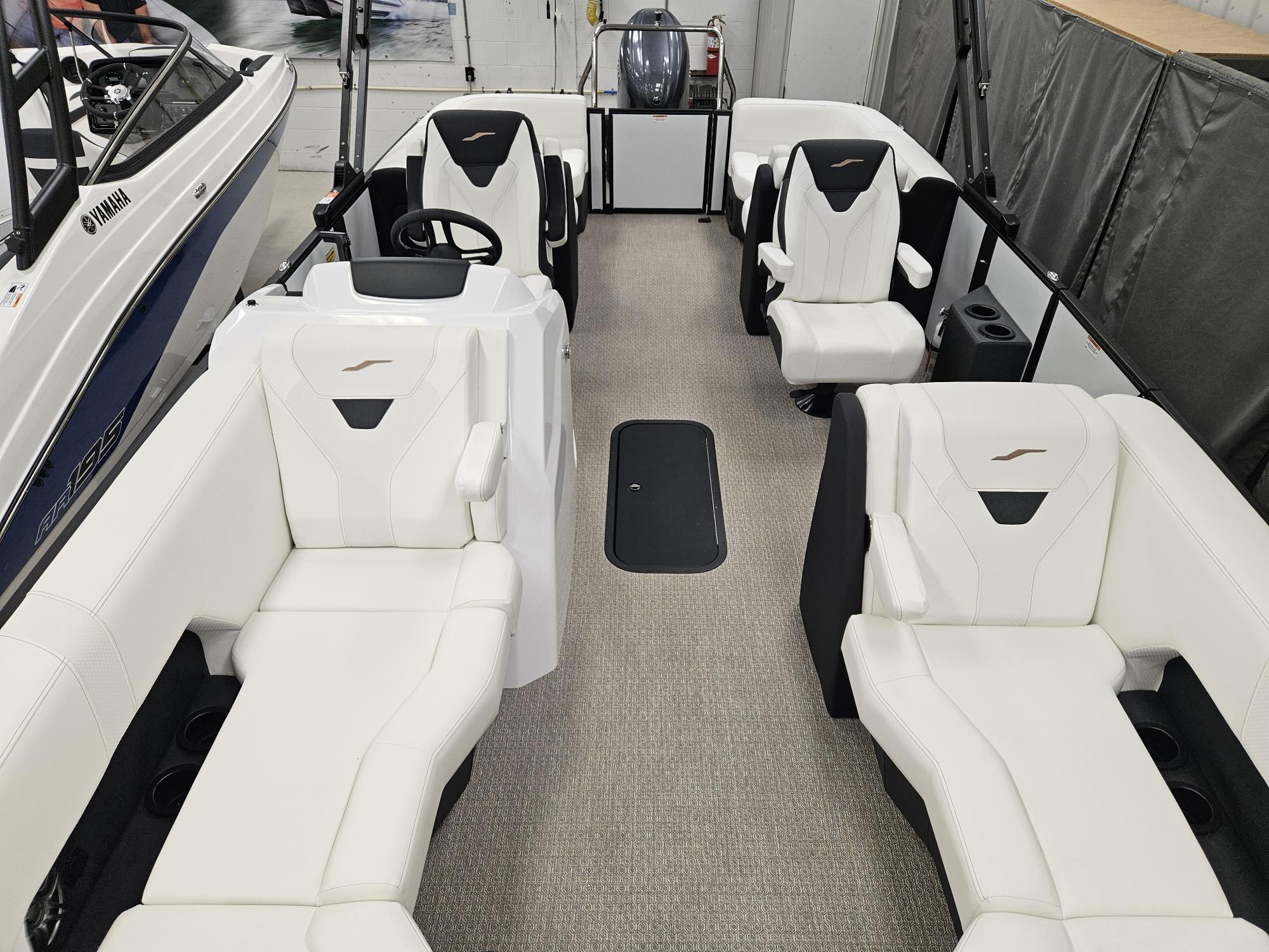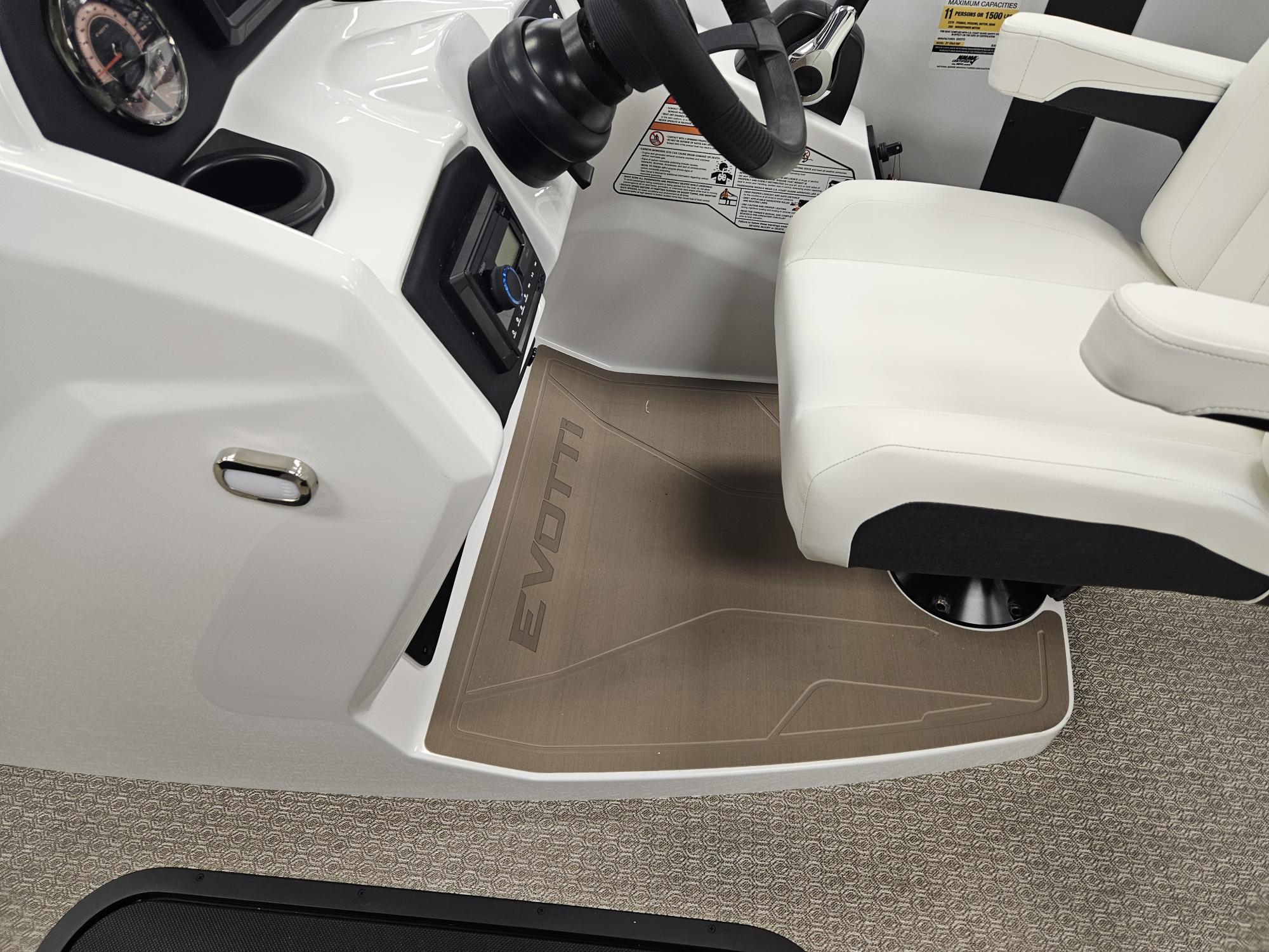 The Evotti 521 QL is designed with practicality in mind, making ownership a breeze. The 23.5-foot length strikes an ideal balance between spaciousness and ease of docking, allowing you to access a variety of marinas and waterfront locations. The efficient Yamaha F150XD engine helps you make the most of your time on the water without worrying about excessive fuel consumption. The durable Roan Bronze Evolution Flooring is easy to clean and maintain, ensuring your pontoon looks great season after season.With its advanced Garmin 5" Echo Map and gauges, navigation is straightforward and stress-free, giving you the confidence to explore new waters. The single battery system is simple to manage, reducing maintenance and maximizing reliability. Every aspect of the Evotti 521 QL is designed to enhance your boating experience, from launch to docking.