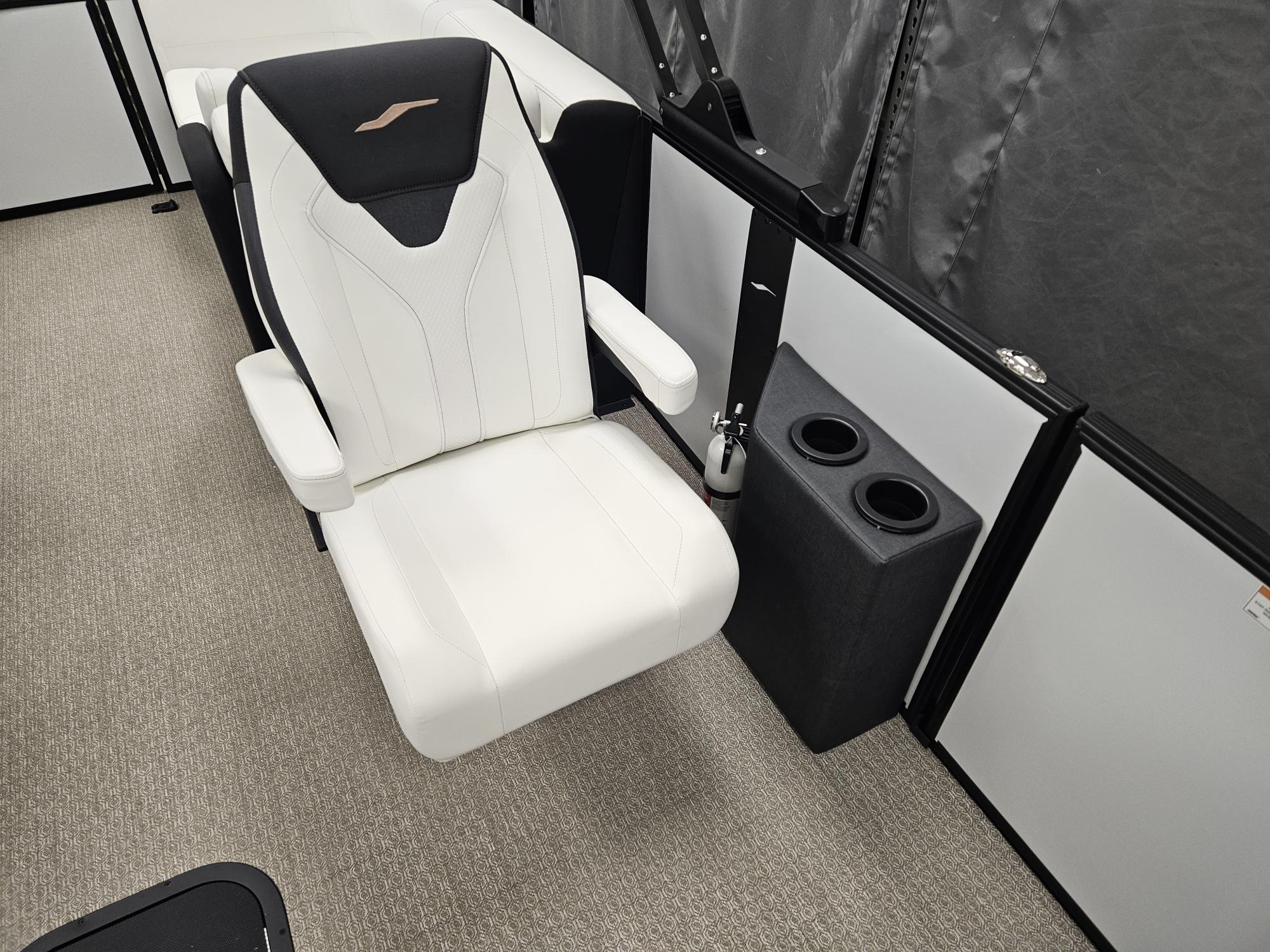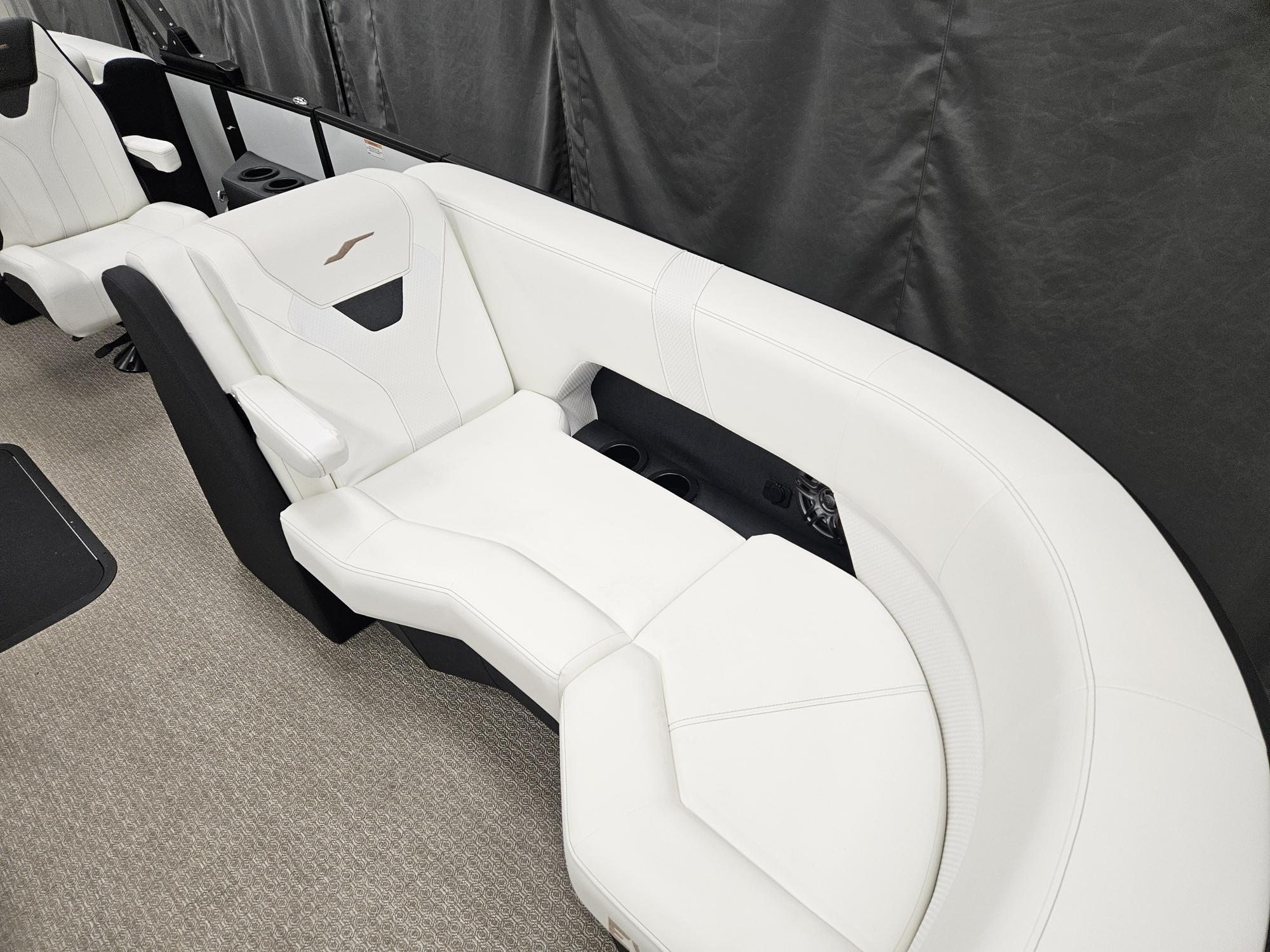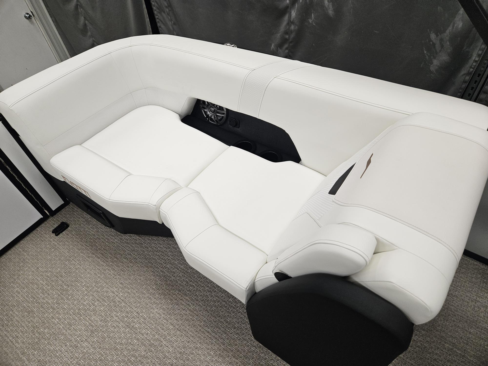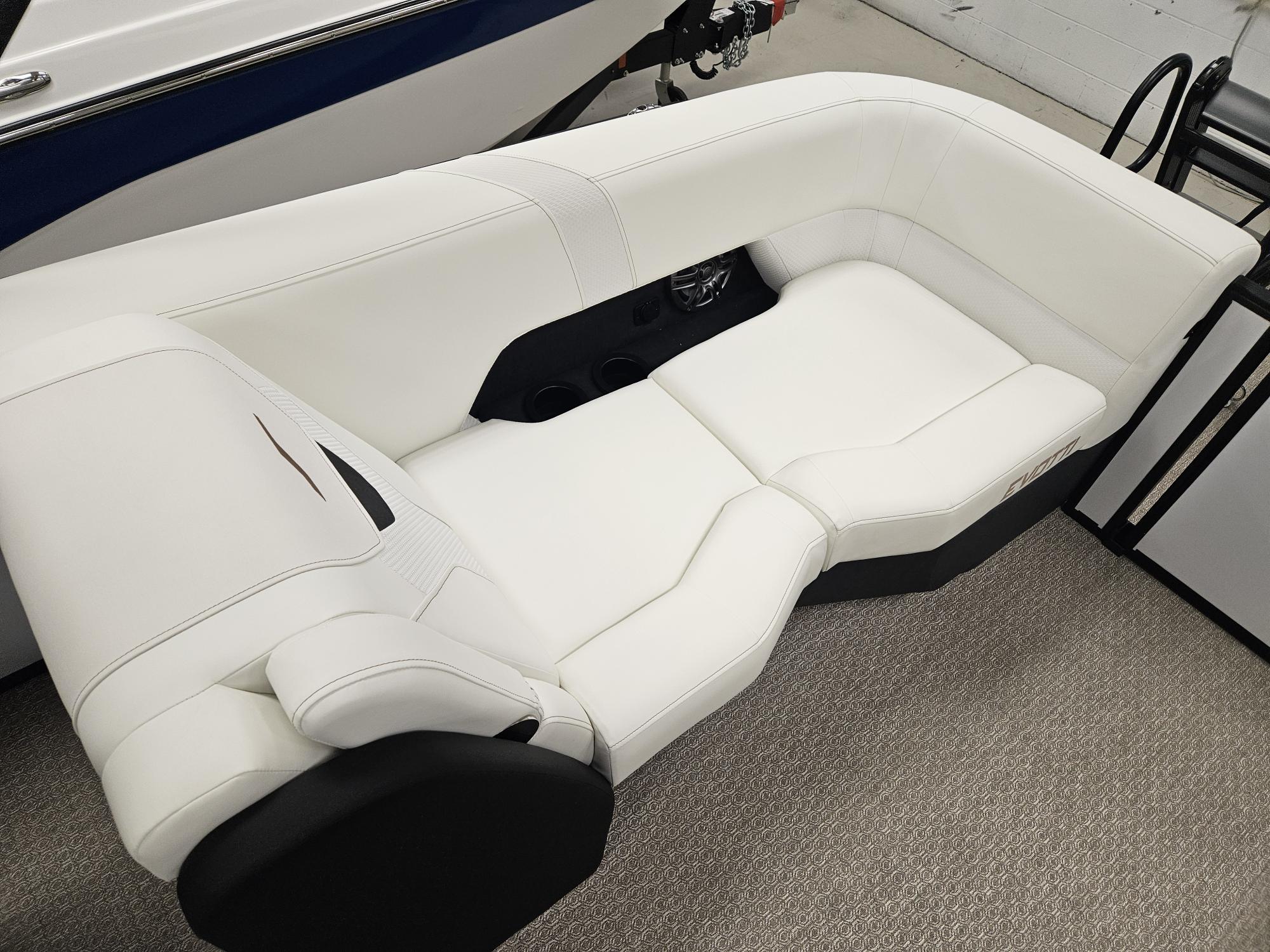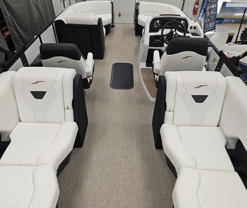 The Evotti 521 QL Pontoon is packed with features that enhance both its visual appeal and functionality. The Panel Pearl White Gloss finish gives the boat a sophisticated, high-end look, while the absence of a panel accent maintains a clean, streamlined appearance. The Canvas Black top provides shade and protection from the elements, allowing you to enjoy your time on the water in comfort. Inside, the Base Vinyl Ghost White upholstery offers a luxurious and inviting seating area, complemented by the Roan Bronze Evolution Flooring, which is both stylish and durable.A single battery setup ensures reliable power for all your onboard systems, while the Garmin 5" Echo Map with 5" gauges keeps you informed and in control with advanced navigation and monitoring capabilities. Every detail of the Evotti 521 QL is thoughtfully designed to maximize your enjoyment and convenience.