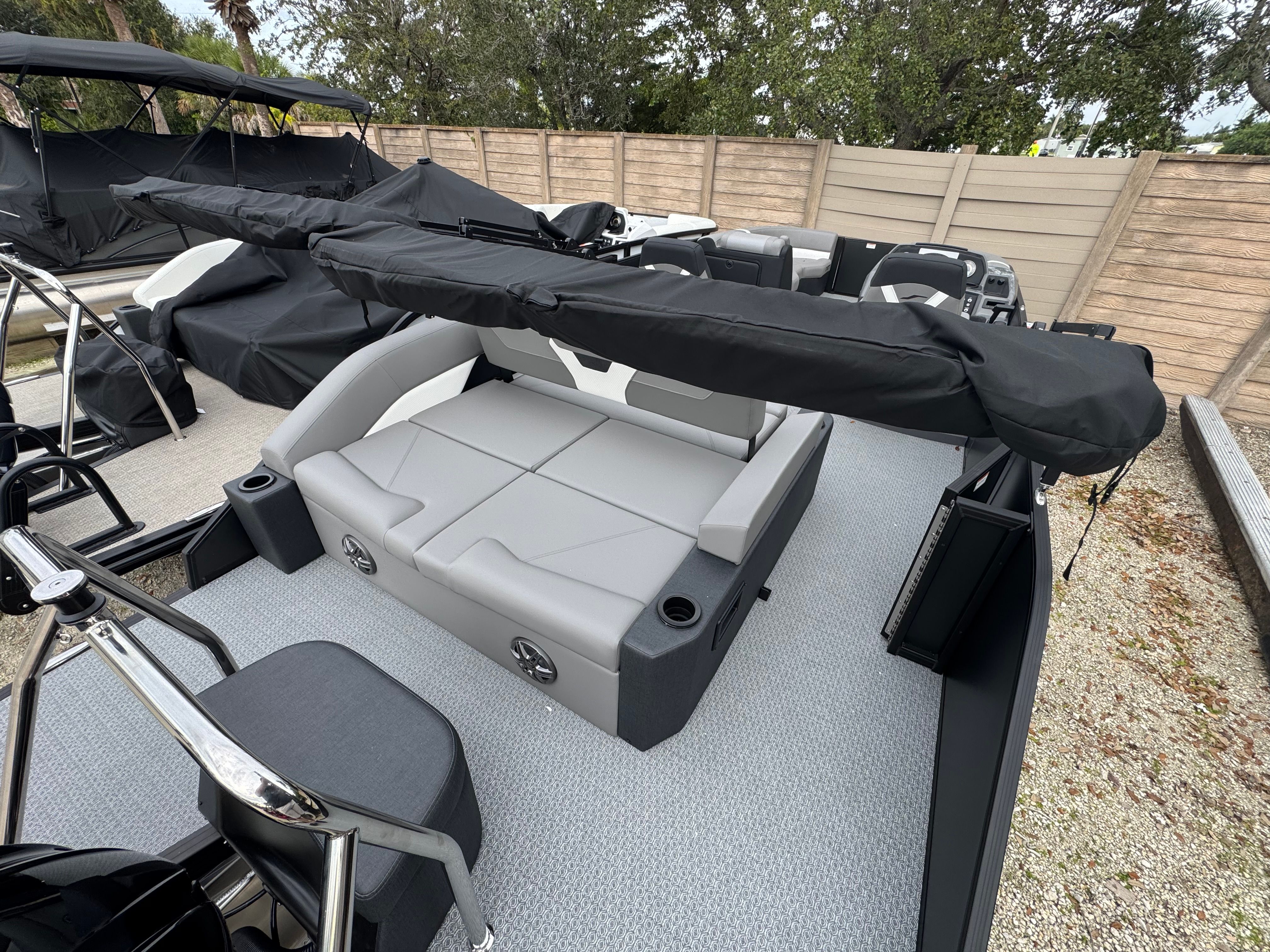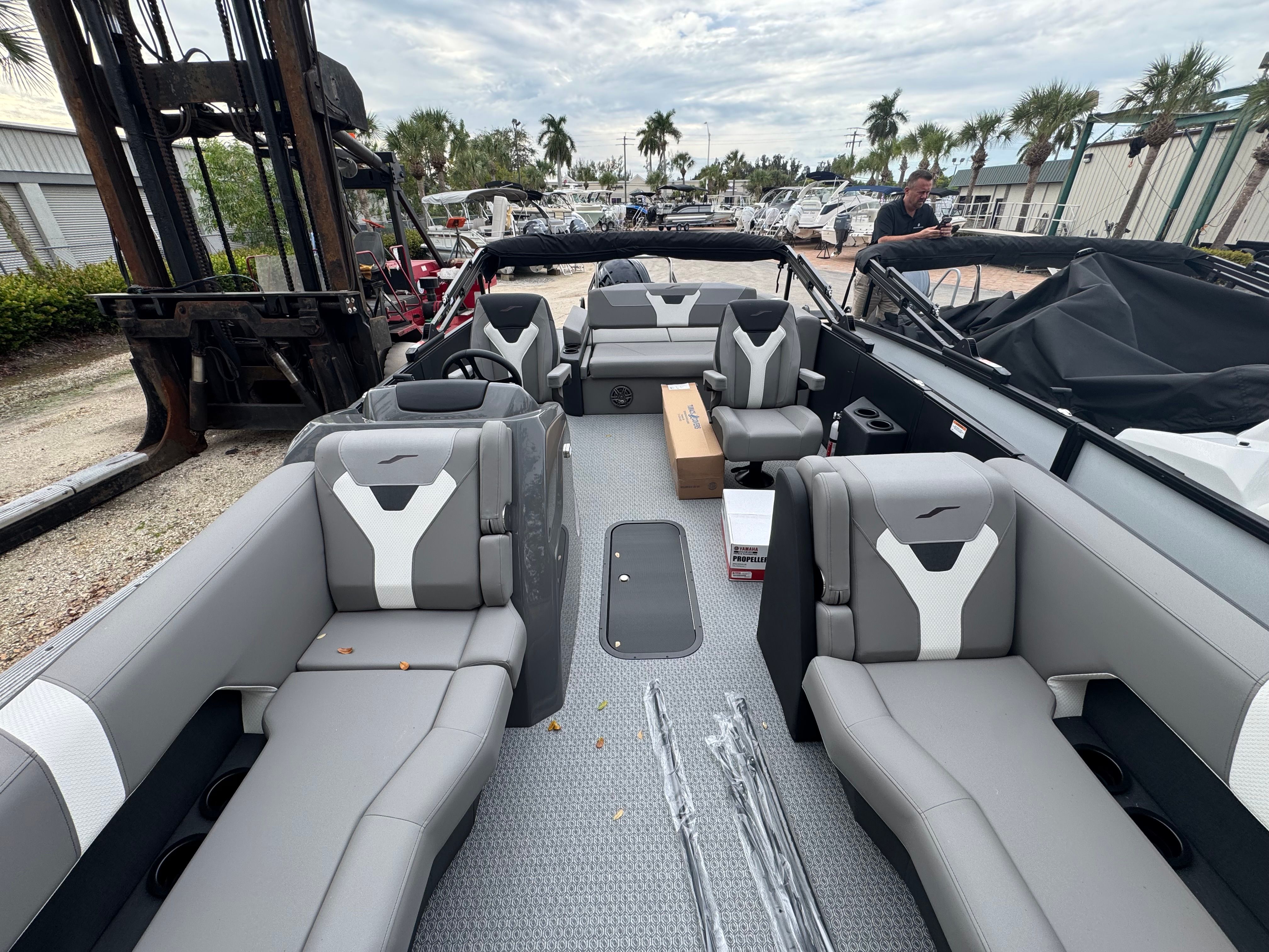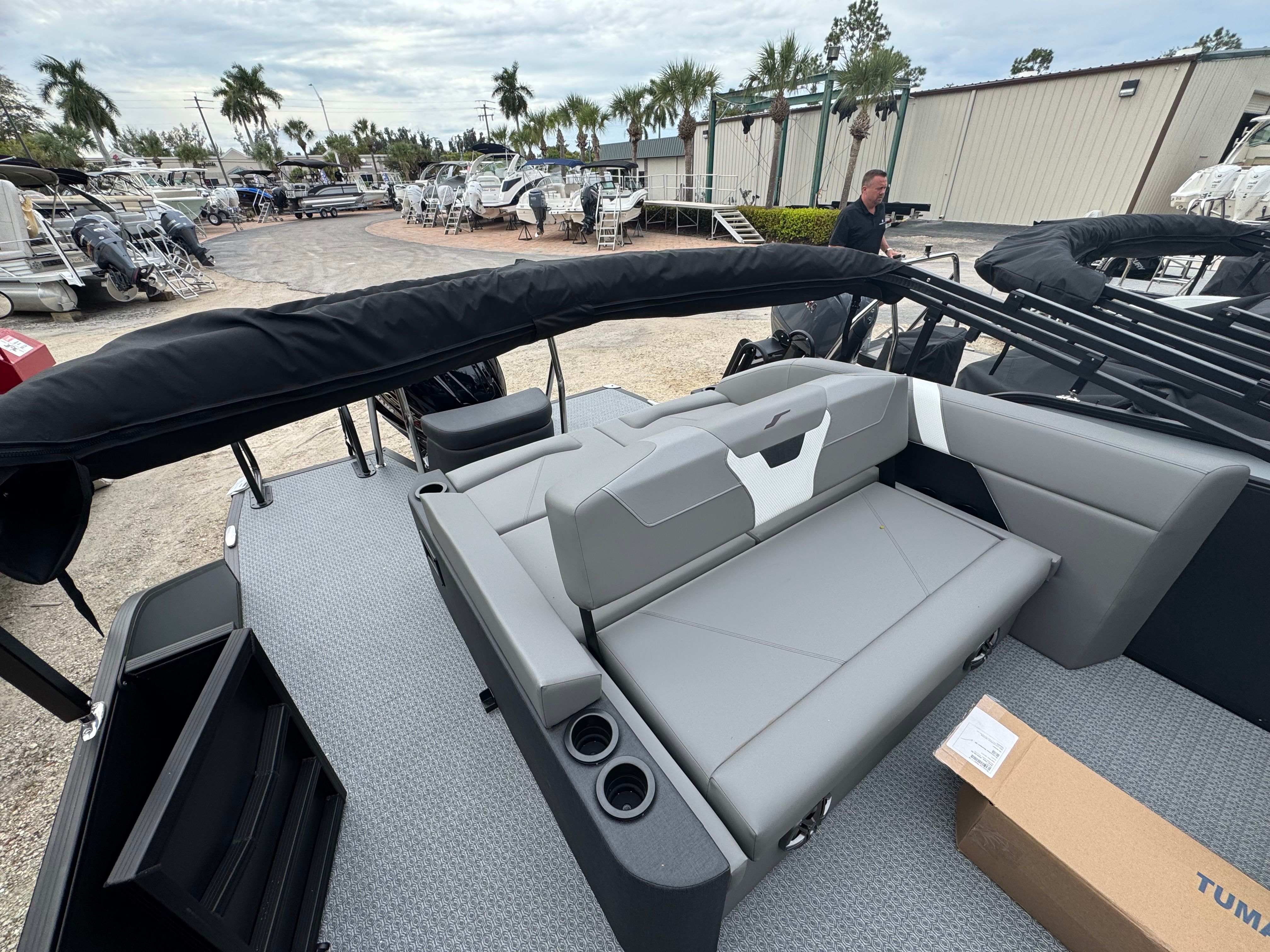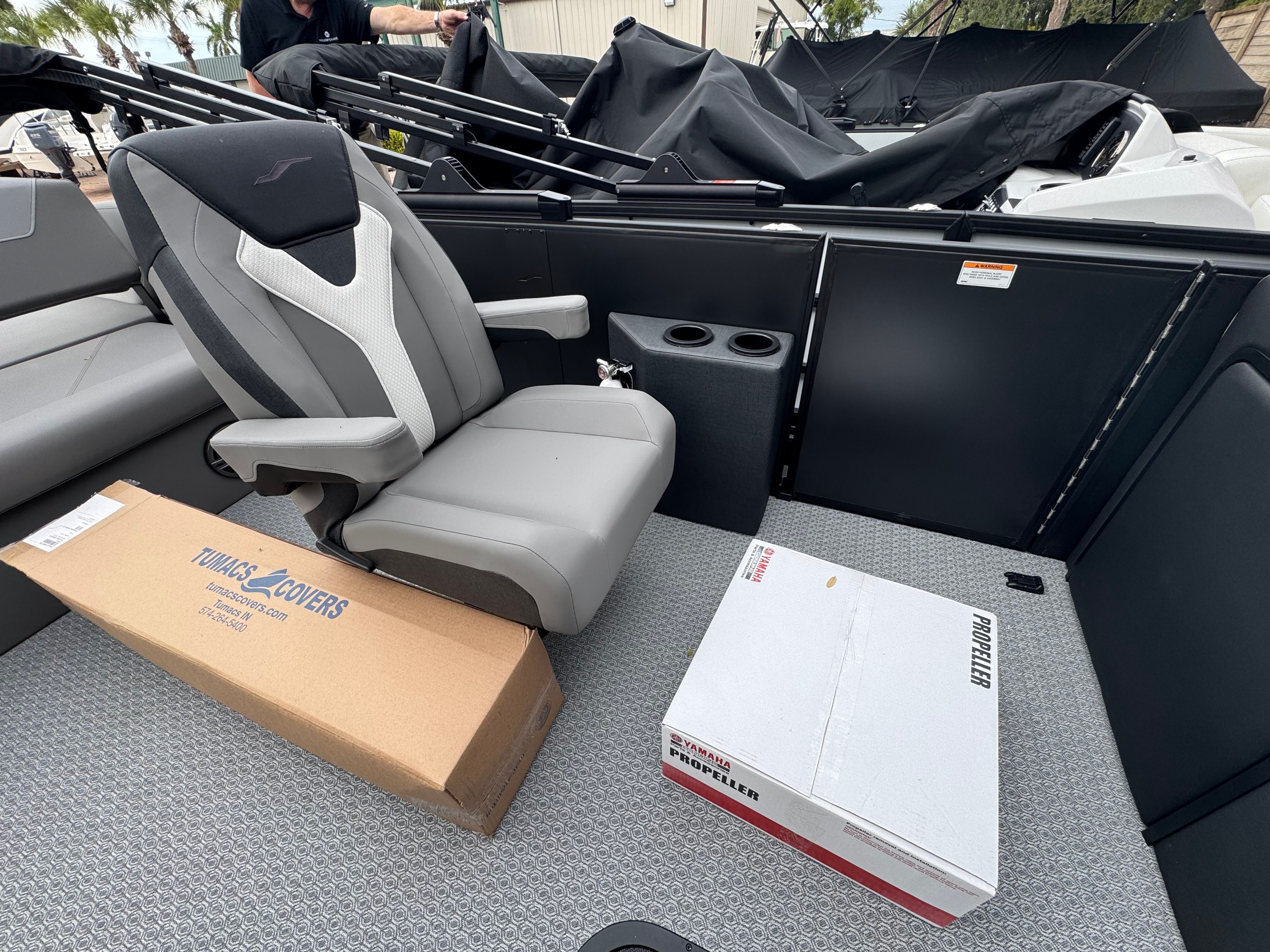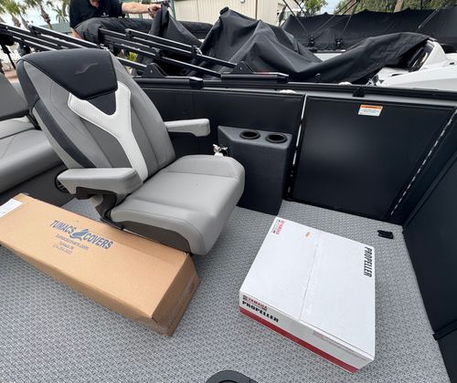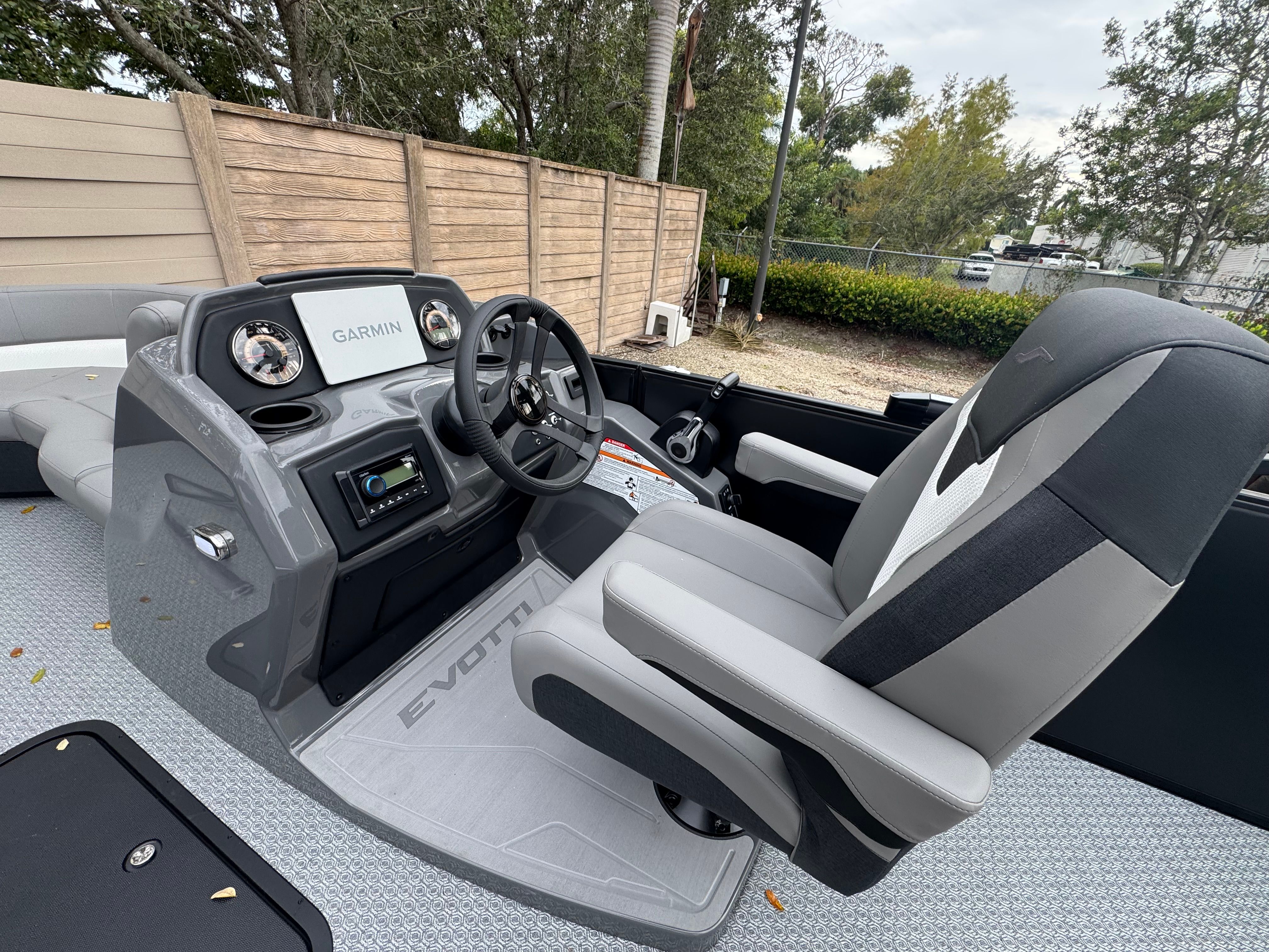 The Evotti 523 CS is loaded with premium features designed to enhance your boating experience. The Panel Diamond Black Satin and Panel Accent Pearl White Gloss create a visually striking exterior, while the Canvas Black offers reliable protection from the elements. Inside, the Base Vinyl Steel Gray upholstery is both stylish and comfortable, providing a welcoming environment for you and your guests. The Steel Gray Evolution Flooring is not only attractive but also easy to clean and maintain, making it ideal for active days on the water.A standout feature of this pontoon is the Battery Dual system, which ensures reliable power for all your onboard electronics and accessories. The Yamaha VF250XB engine, combined with the Prerig Yamaha Mechanical - 500 Series and Single Engine Rigging & Prop, delivers seamless integration and optimal performance. Power Assist Steering further enhances the driving experience, allowing for precise and effortless control at any speed.