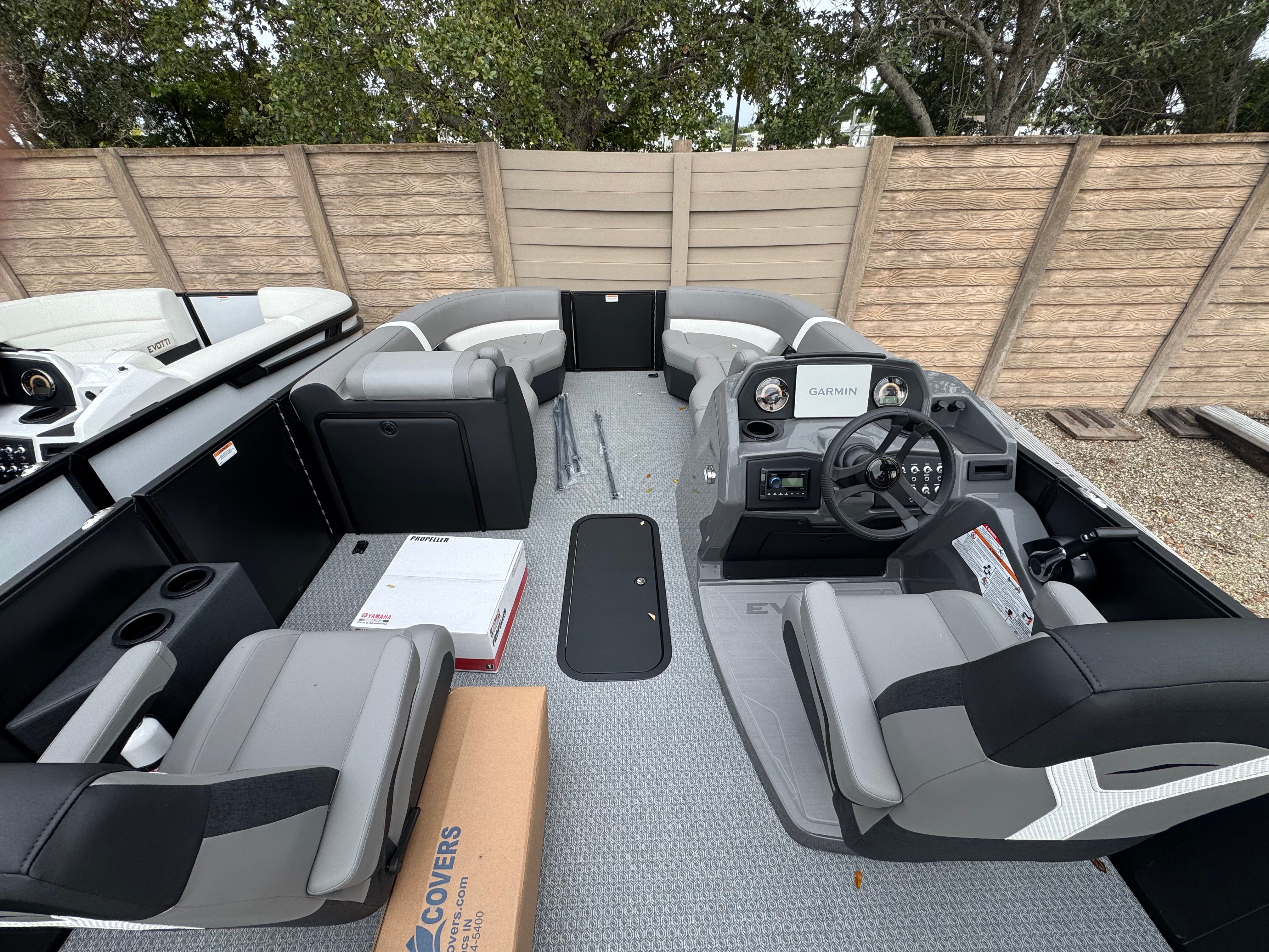 The 2026 Evotti 523 CS pontoon boat is a remarkable choice for anyone seeking a new pontoon boat for sale that combines luxury, performance, and practicality. With its eye-catching design, powerful Yamaha VF250XB engine, and premium features like Panel Diamond Black Satin, Panel Accent Pearl White Gloss, Canvas Black, Base Vinyl Steel Gray, Steel Gray Evolution Flooring, Battery Dual, Prerig Yamaha Mechanical - 500 Series, Single Engine Rigging & Prop, and Power Assist Steering, this boat is ready to deliver endless fun and relaxation on the water.If you are ready to elevate your boating experience and make lasting memories with family and friends, the Evotti 523 CS is the perfect vessel. Don’t miss the opportunity to own this exceptional Evotti boat for sale—contact your local dealer today to learn more and schedule a viewing.