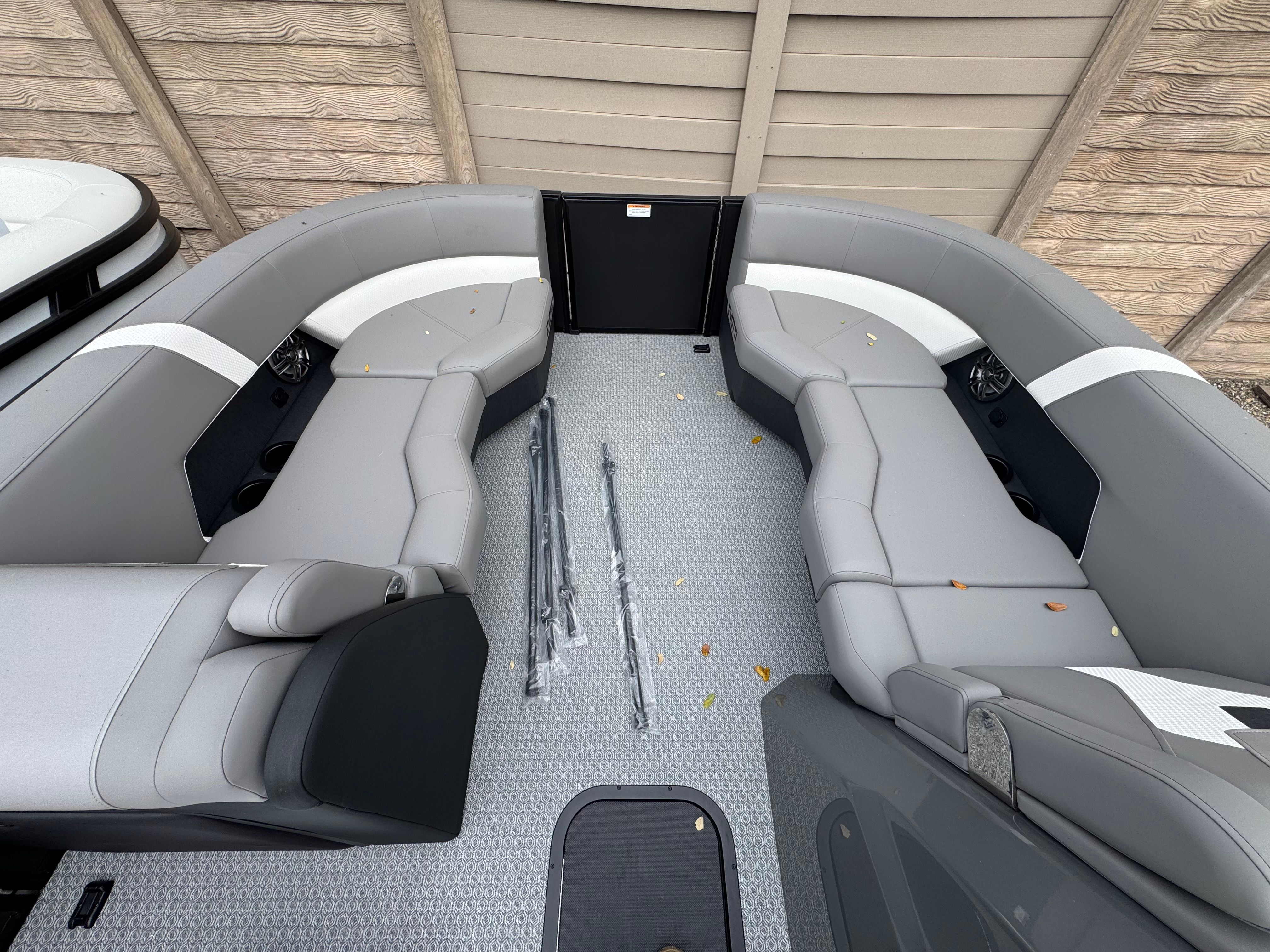 Owning the Evotti 523 CS pontoon boat opens up a world of fun and relaxation. The spacious 25.5-foot deck provides plenty of room for family gatherings, parties, or simply lounging in the sun. The comfortable seating and high-quality vinyl create an inviting atmosphere, perfect for socializing or unwinding after a swim. The modern flooring and stylish color scheme ensure that your pontoon is as beautiful as it is functional, making every outing feel like a special occasion.With its powerful Yamaha engine, this pontoon is built for excitement. Whether you are towing water toys, exploring new coves, or enjoying a sunset cruise, the Evotti 523 CS delivers smooth, reliable performance every time. The advanced steering system and thoughtful rigging make it easy for both new and experienced boaters to enjoy the thrill of the open water with confidence.