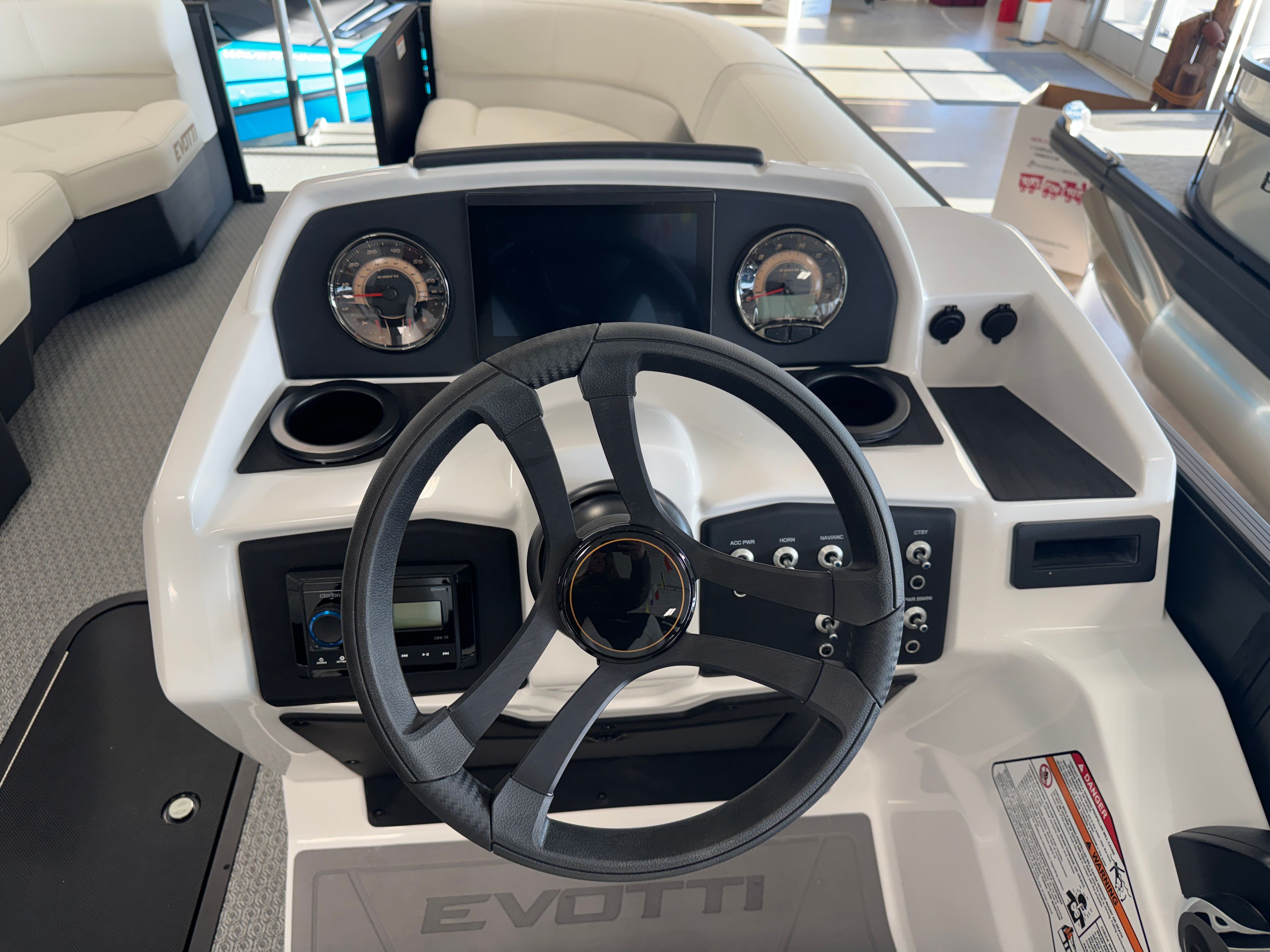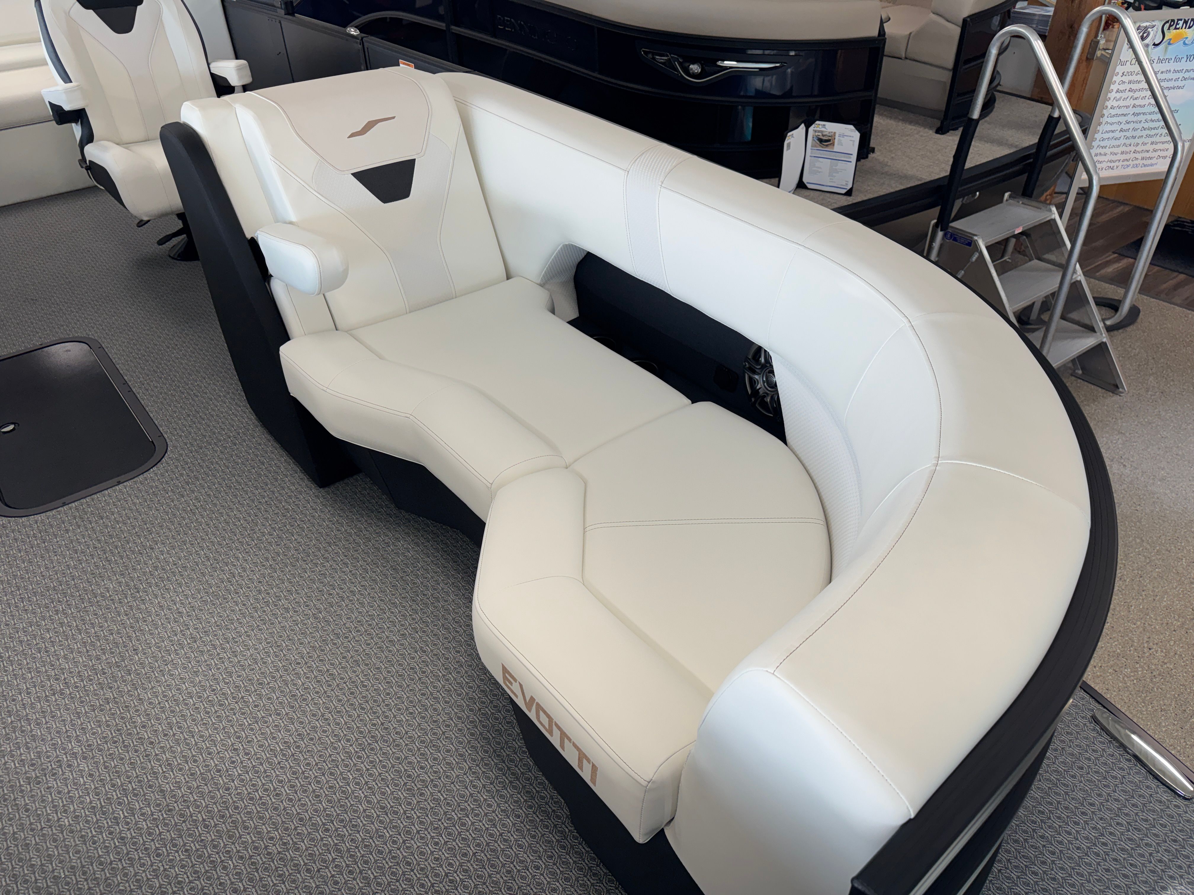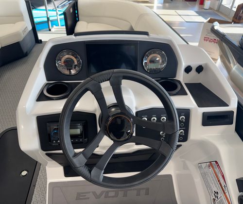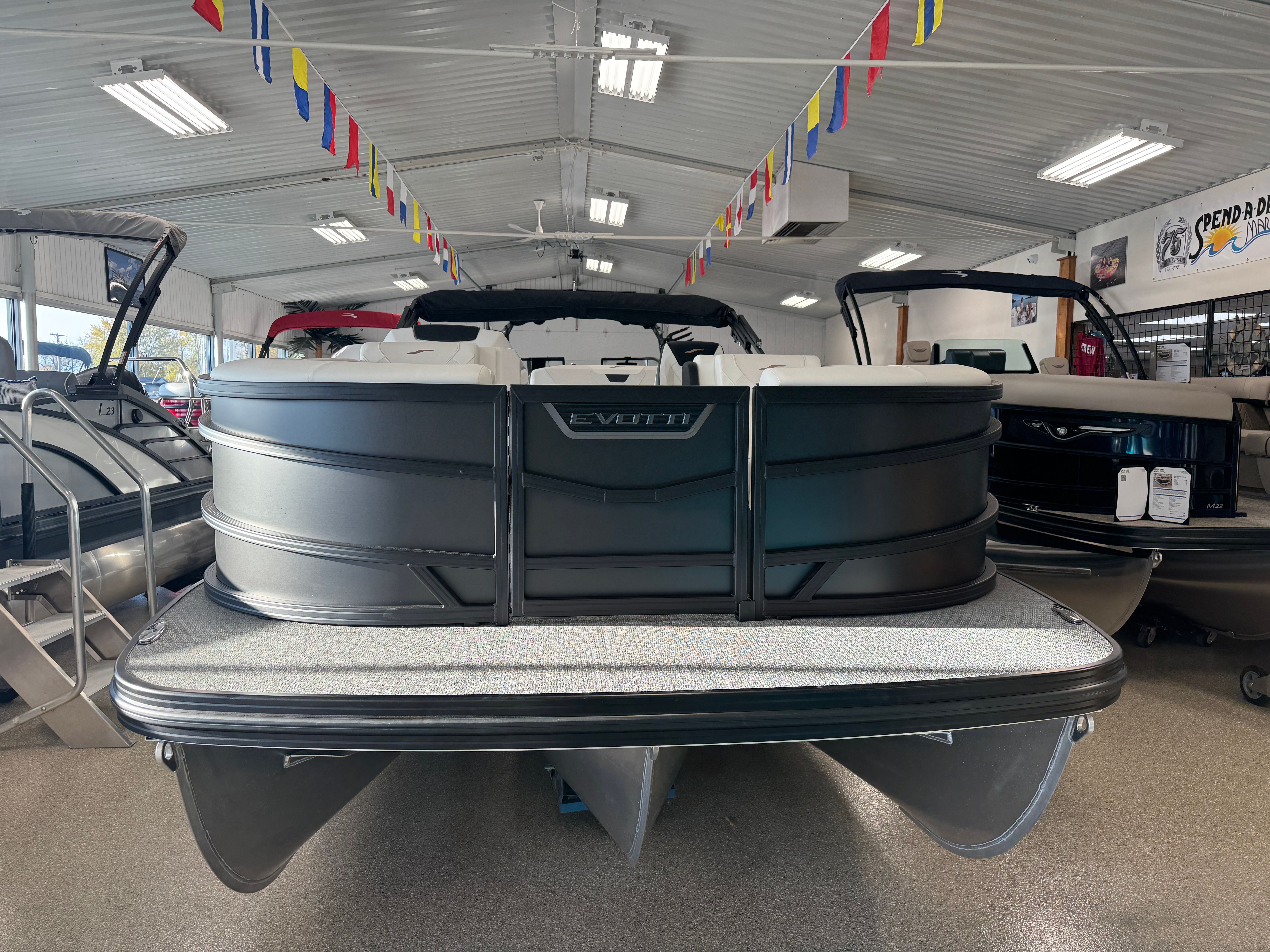 The 2026 Evotti 523 CS pontoon boat is a remarkable combination of style, performance, and versatility. With its eye-catching design, powerful Yamaha engine, and thoughtfully selected features such as the Panel Diamond Black Satin, Panel Accent Pearl White Gloss, Canvas Black, Base Vinyl Ghost White, Steel Gray Evolution Flooring, stern safety chains, and advanced rigging, this Evotti boat for sale stands out as a top choice for boating enthusiasts. Whether you are looking to entertain, relax, or explore, the Evotti 523 CS offers everything you need for an exceptional on-water experience. Don’t miss your chance to own this incredible pontoon—contact the dealer today to learn more and start your next adventure.