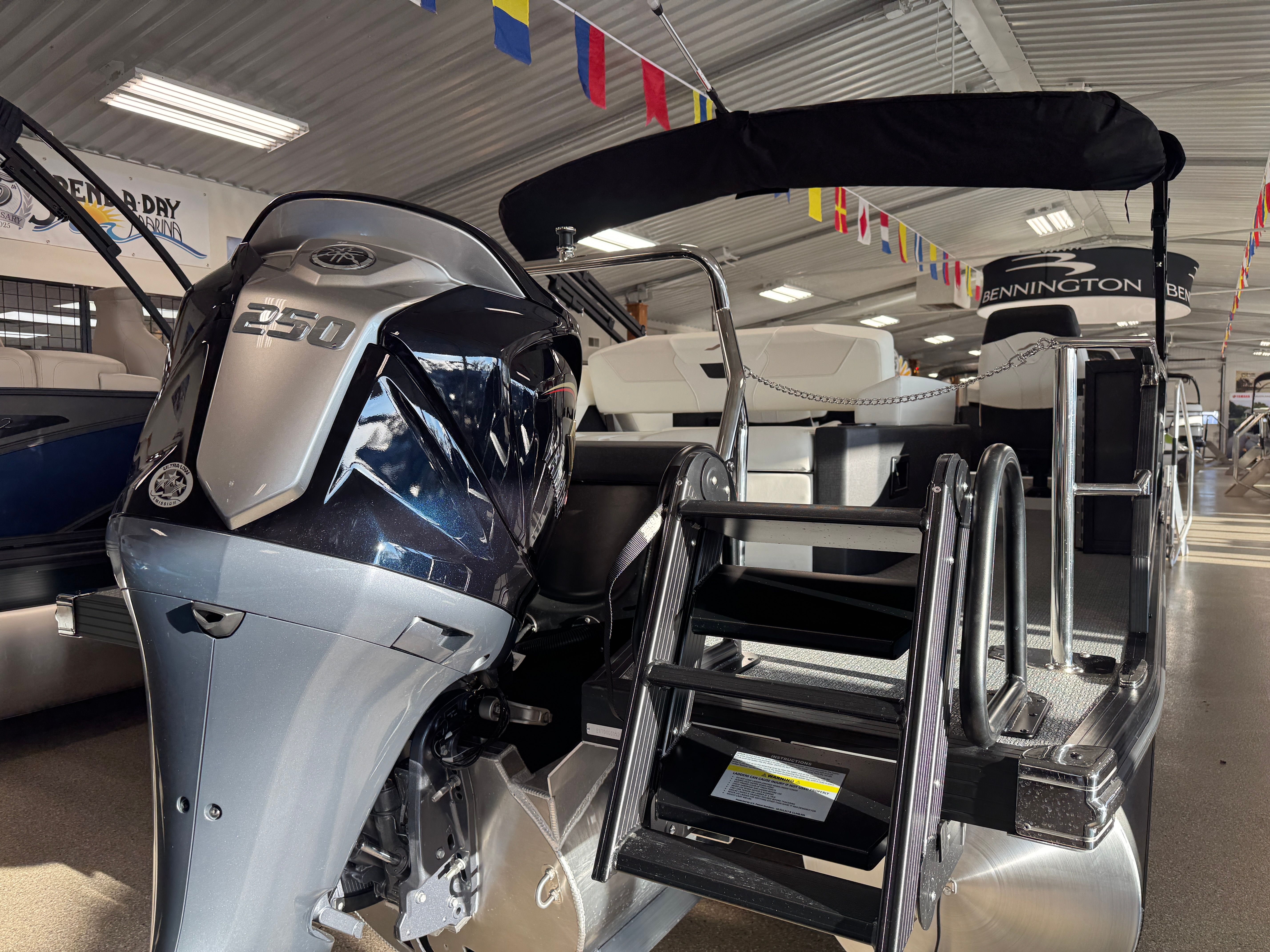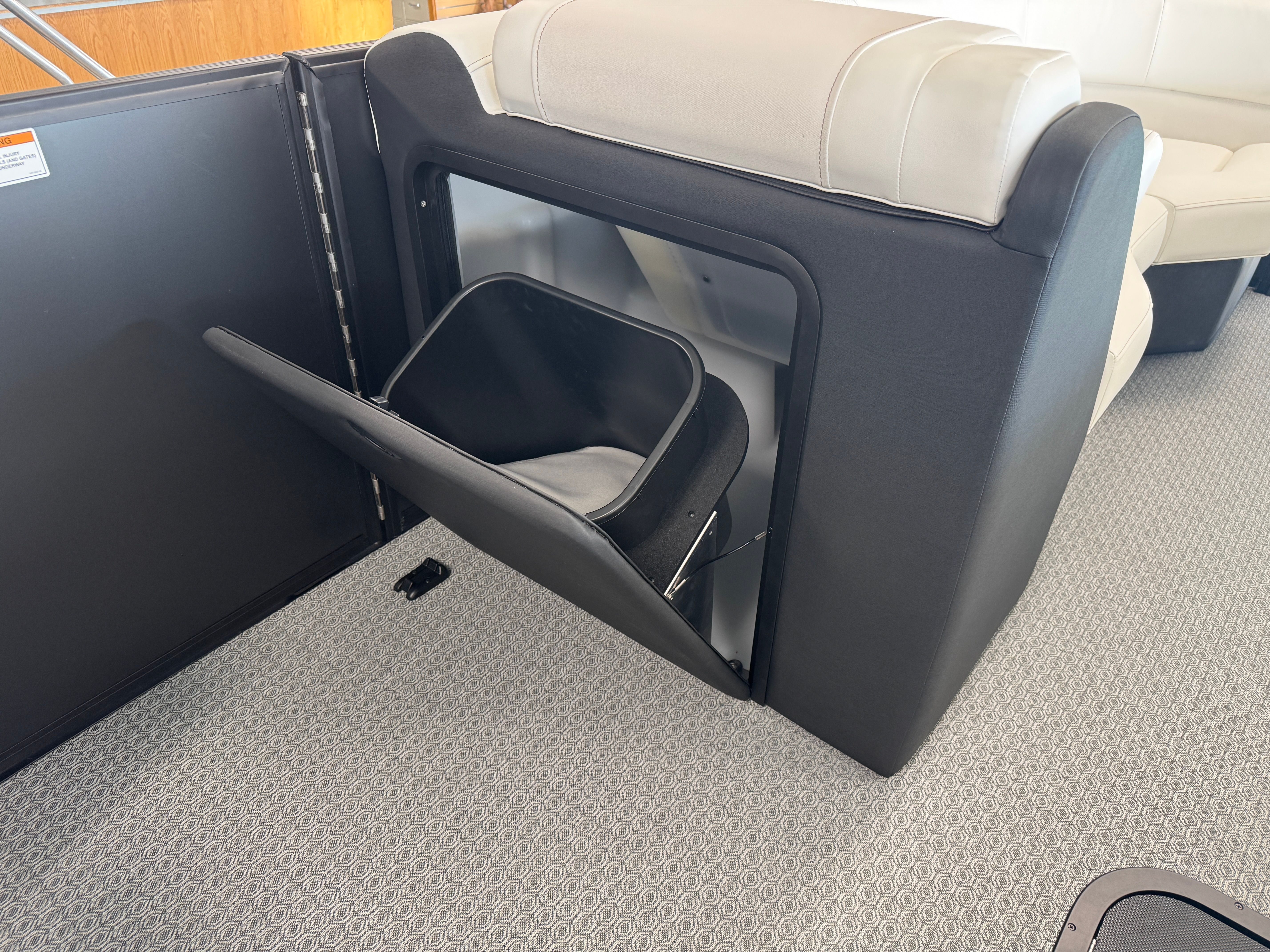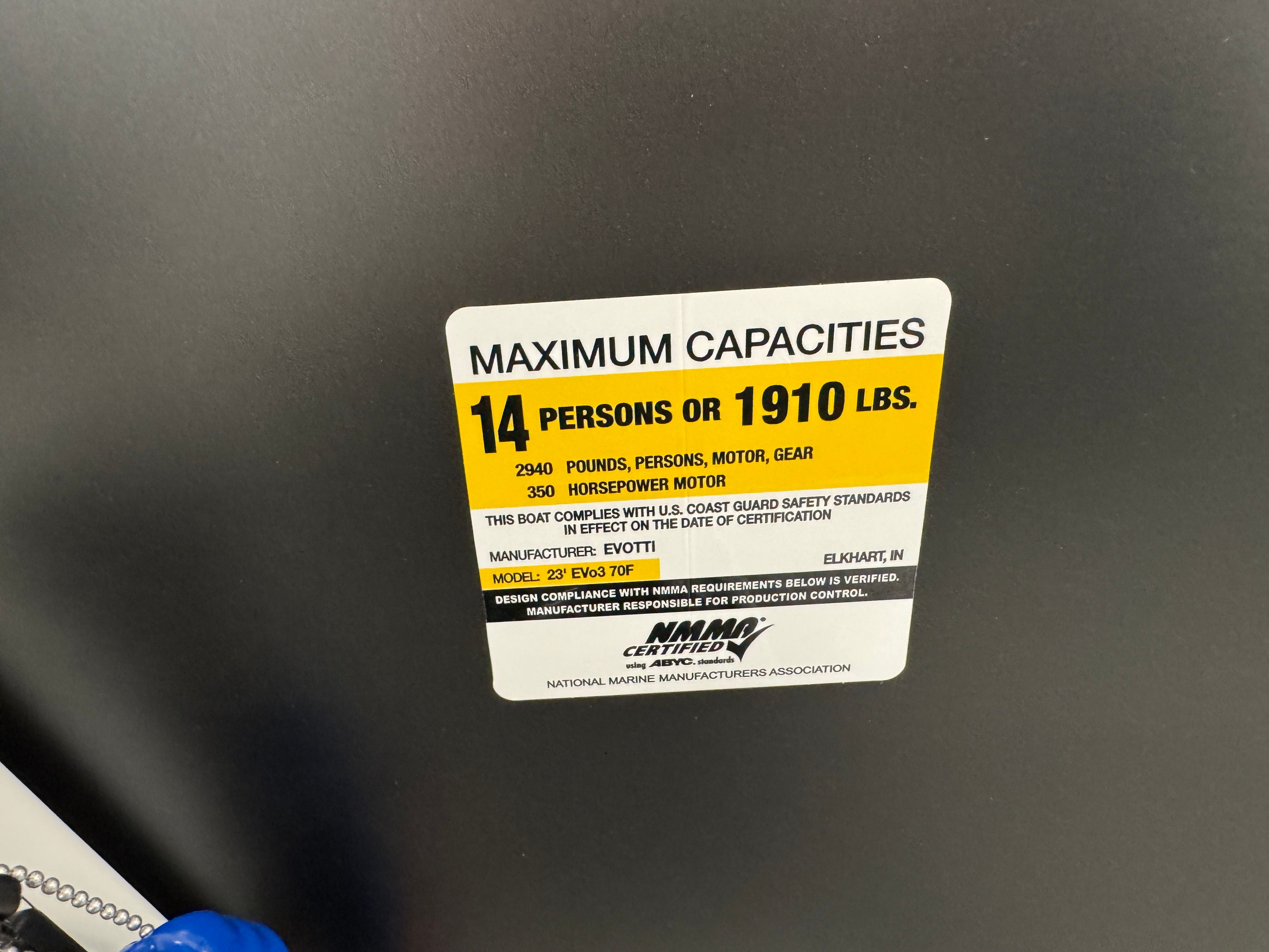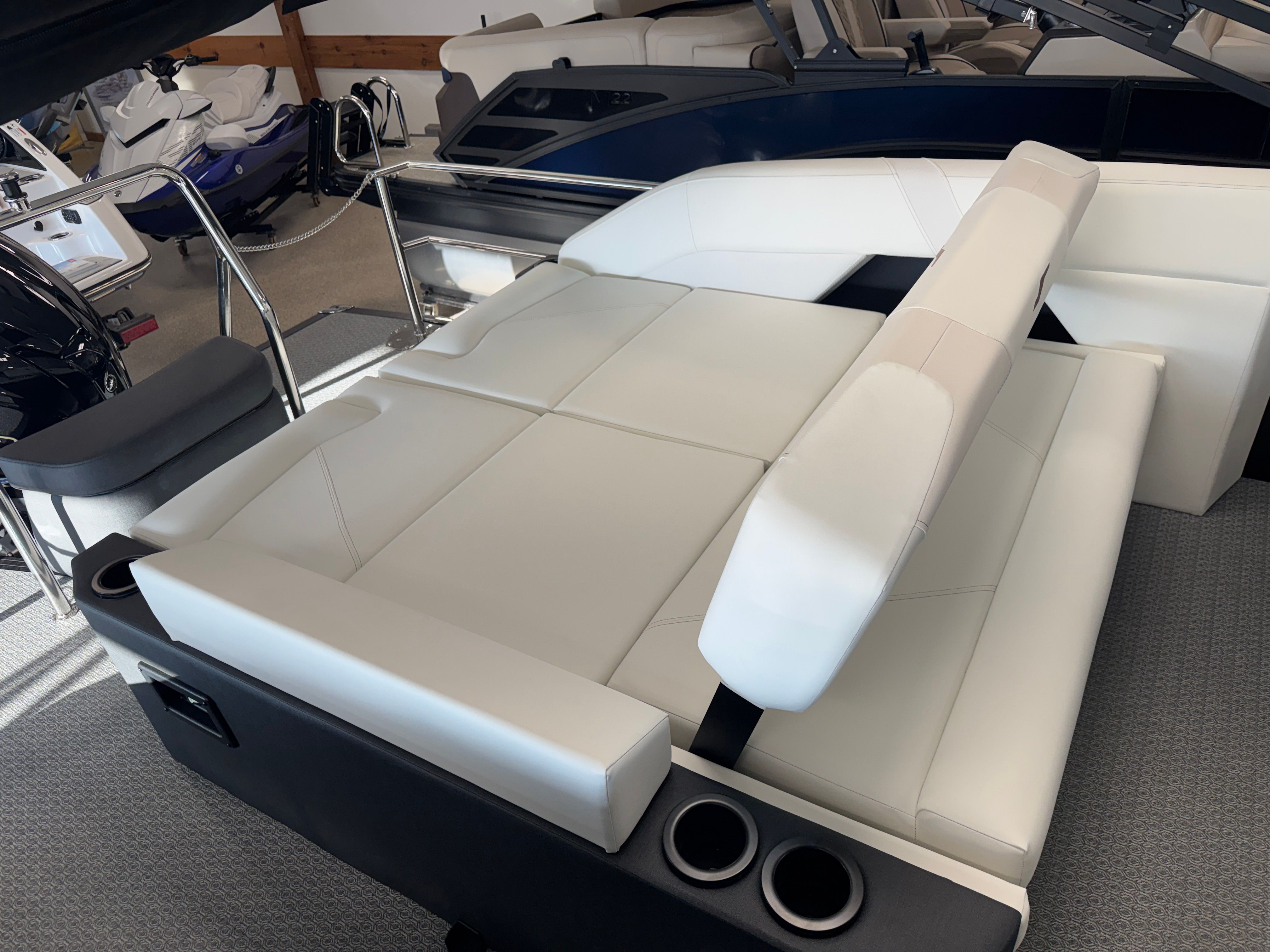 The Evotti 523 CS is designed with practicality in mind, making ownership as enjoyable as the time spent on the water. The 23-foot length strikes the perfect balance between spaciousness and maneuverability, allowing for easy docking and storage. The efficient Yamaha VF250XB V Max Sho Black engine is engineered for optimal fuel efficiency, helping you spend more time on the water and less time at the pump. The durable flooring and high-quality vinyl are easy to clean, so you can keep your pontoon looking its best with minimal effort. Stern safety chains add an extra layer of security when mooring or trailering your boat, giving you peace of mind wherever your adventures take you.