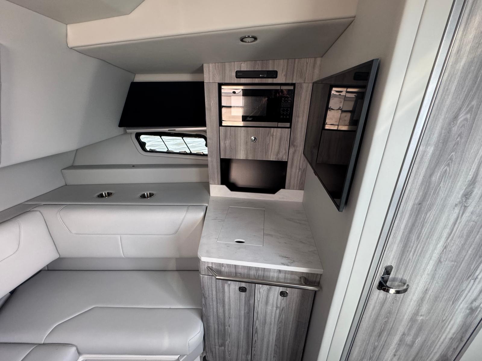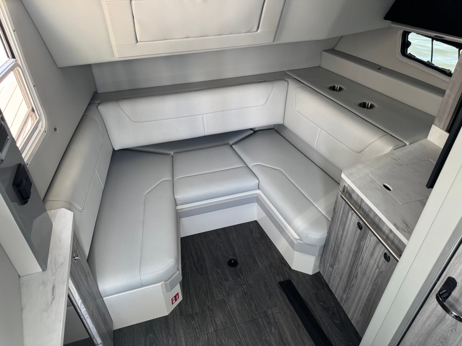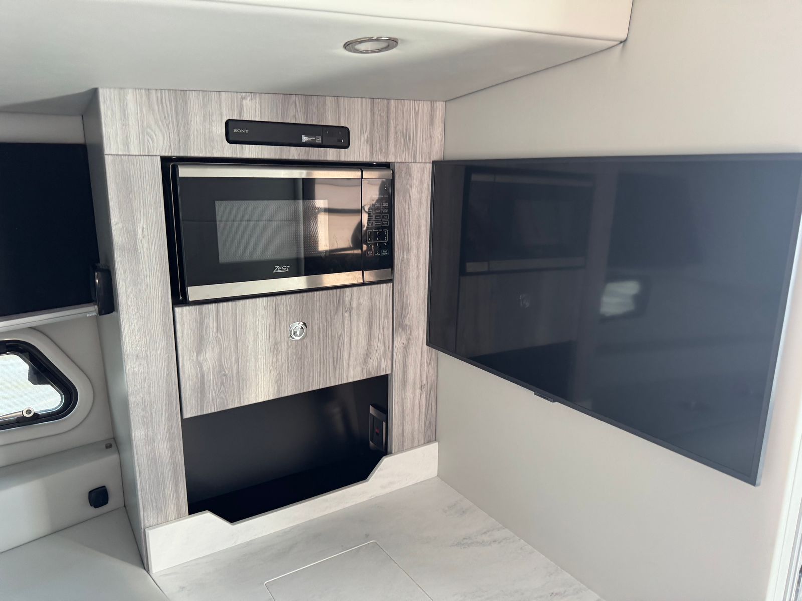 The Formula 380 SSC is loaded with features that elevate every moment on the water. Its spacious layout is designed for both relaxation and entertainment, offering plenty of room for family and friends. The cockpit is thoughtfully arranged to maximize comfort and functionality, with premium seating, ample lounging areas, and intuitive controls that put everything you need within easy reach. The attention to detail in the design ensures that every outing is enjoyable, whether you are hosting a sunset gathering or embarking on a weekend getaway.This cruiser’s innovative design also provides excellent storage solutions, making it easy to stow gear, water toys, and essentials for extended trips. The high-quality materials and finishes throughout the boat reflect Formula’s commitment to luxury and durability, ensuring your investment stands the test of time.