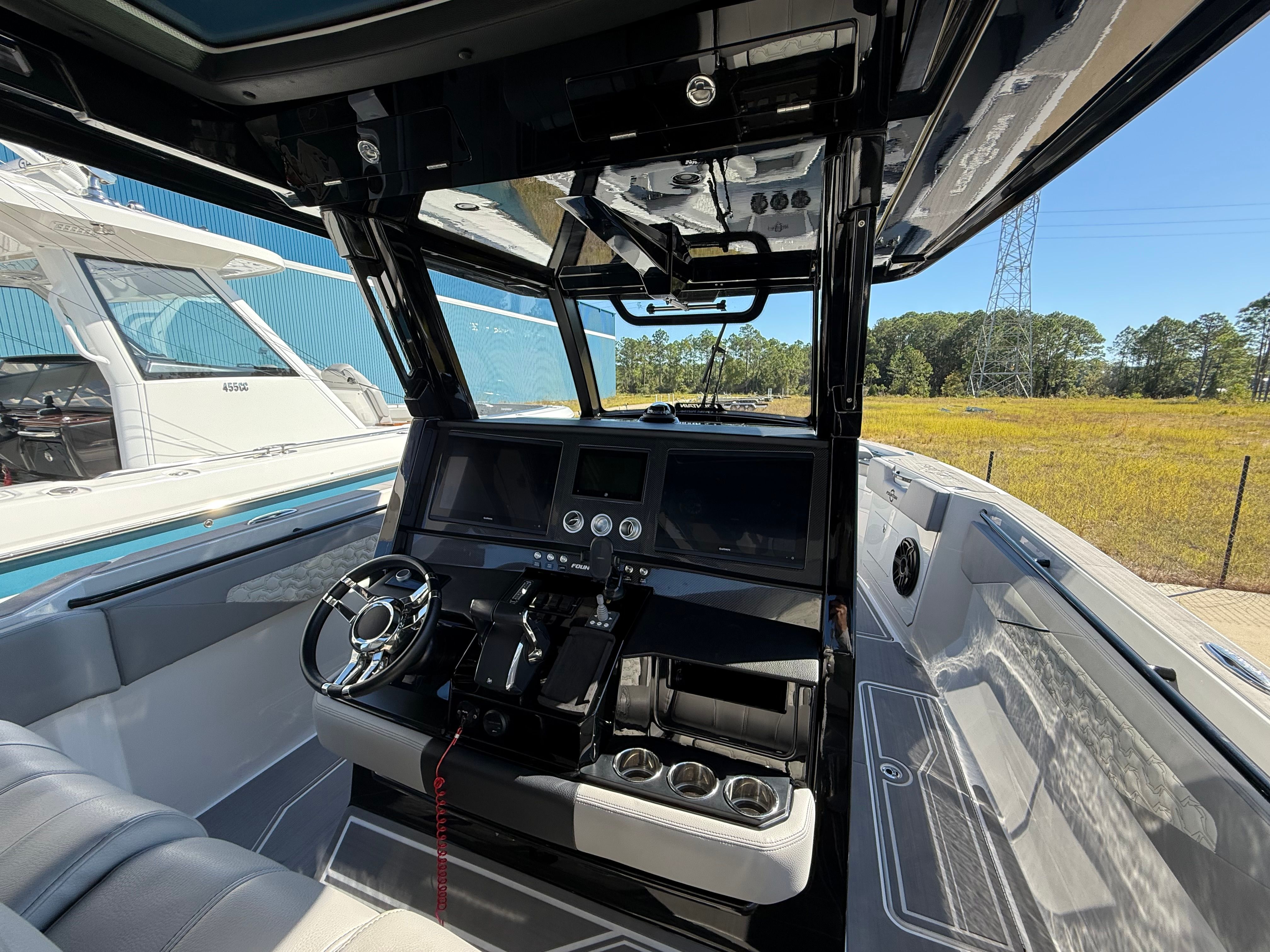 At the heart of the Fountain 38 SCX lies a powerful trio of engines, delivering a combined 1350 horsepower. With only 146 engine hours, these motors are primed for many more seasons of exhilarating performance. The triple-engine configuration ensures rapid acceleration, impressive top speeds, and smooth handling even in challenging conditions. Whether you’re navigating choppy waters or cruising at high speeds, the Fountain 38 SCX responds with precision and agility. This Center Console boat for sale is built for those who demand superior performance and reliability, making it ideal for both seasoned boaters and newcomers alike.