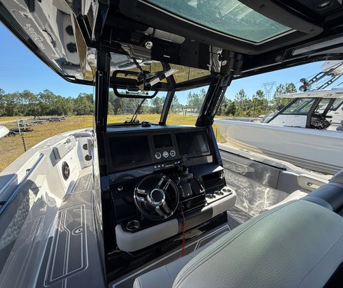 The 2023 Fountain 38 SCX is a 38-foot Center Console boat that embodies the legendary Fountain commitment to innovation and quality. This model is designed to impress, whether you’re cruising along the coastline, heading offshore for a fishing expedition, or enjoying a day of watersports with family and friends. Its striking profile and modern lines make it an eye-catching vessel at any marina, while its robust construction ensures durability and reliability for years to come. As a used Fountain boat for sale, this 38 SCX offers the perfect balance of value and high-end features, making it an attractive option for discerning boaters.