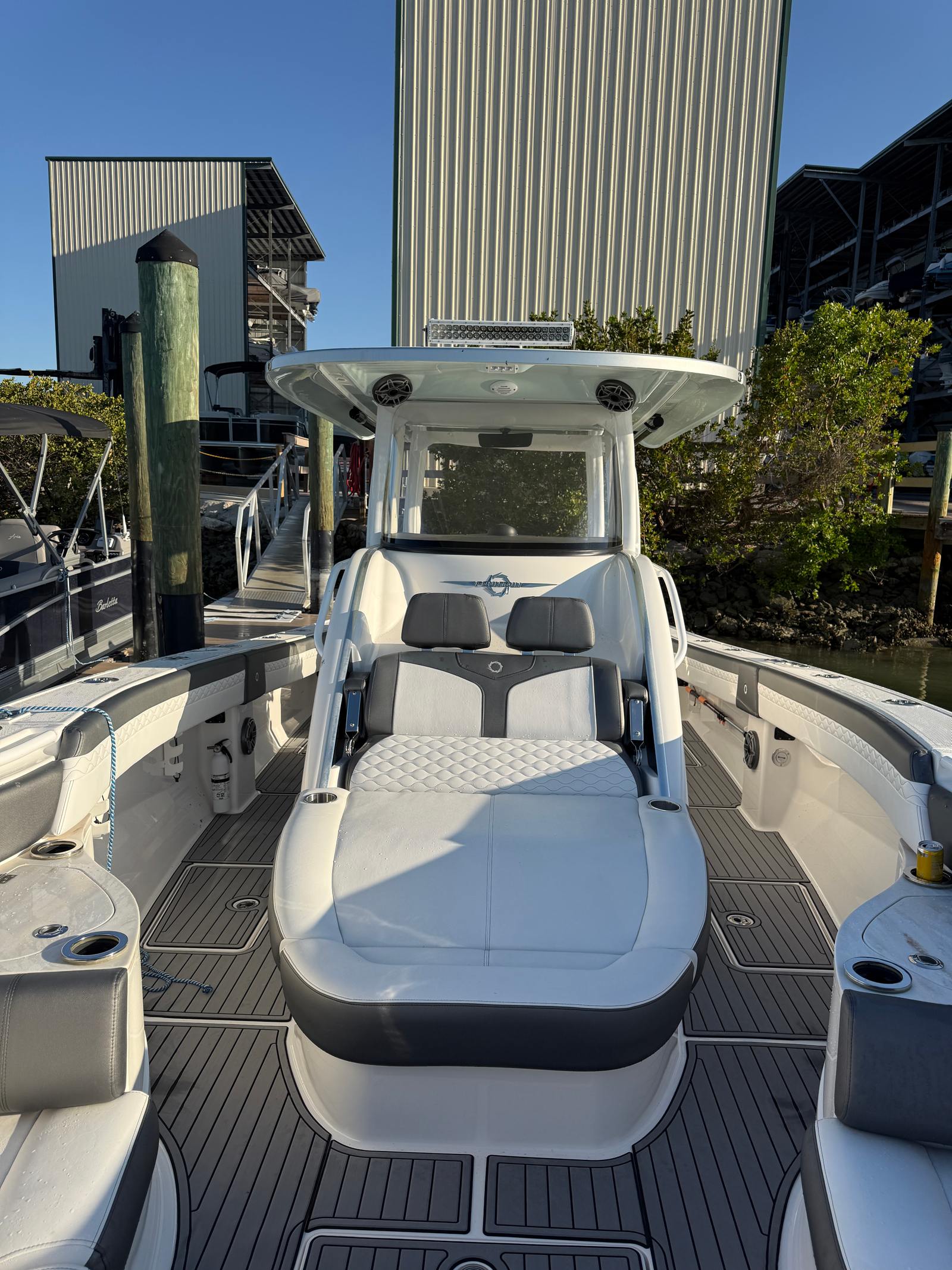 Power and precision define the performance of this Fountain 39 NX. Equipped with three powerful engines delivering a combined 1200 horsepower, this center console boat is engineered for speed, agility, and smooth handling. With only 370 engine hours, these engines have plenty of life left, ensuring reliable performance for years to come. The triple-engine setup allows for rapid acceleration, impressive top speeds, and confident navigation through various water conditions. Whether you are chasing the horizon or cruising along the coastline, the Fountain 39 NX delivers an exhilarating ride that boating enthusiasts crave.